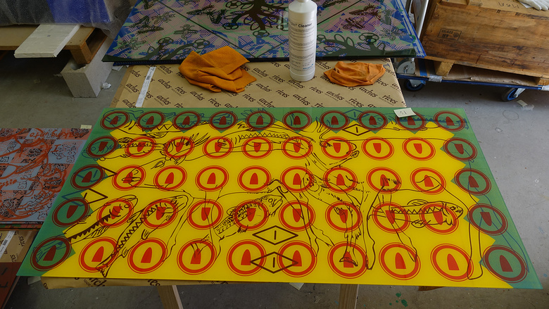 Cet art myriadique et multifacette, se déploie dans mes rêves, mes pensées et mes réalités comme un art nomade et saltimbanque, immense puzzle indéfini et pourtant à reconstruire lors de chaque nouvelle exposition. S'installant, se présentant et se diffusant comme art mural somptueux, non dissociant, donc reliant… Afin de me et de nous réintégrer dans un monde généreux, matriciel et cosmique. Le monde du premier rêve originel, créateur et orgiaque de la nuit des temps. Et surtout pour régénérer et annihiler définitivement la mort avec ses cortèges d'insupportables absences induites.