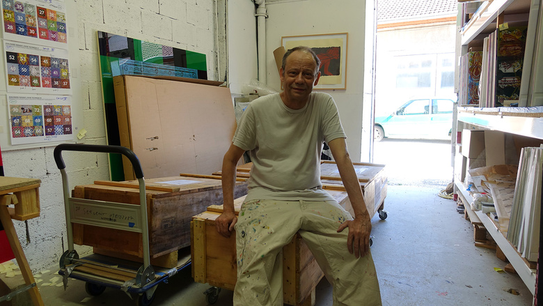 Merci beaucoup Nicolas, bonsoir à tous ! C'est vraiment un plaisir de vous voir tous ici réunis pour cette belle exposition ! Cela fait très longtemps que je vis ici à Besançon (15 ans) et j'ai connu auparavant deux conservateurs et conservatrice et j'ai toujours essayé de faire que ce musée s'ouvre à l'art contemporain. Et enfin, il s'y ouvre, grâce à toi Nicolas ! Je pense que c'est une bonne nouvelle pour tous les artistes présents ici ce soir. Parce que je trouve, étant new yorkais et franc-comtois ; je trouve que la France ne s'ouvre pas assez à l'art contemporain. Et même si il y a des lieux qui lui sont consacrés, ils sont assez peu fréquentés. Je vais dire deux mots sur mon installation murale : c'est un travail qui est issu de la série des Suites Entropiques (2010-2015), que j'ai réalisé dans mon atelier de Besançon, au cours des cinq dernières années. J'ai choisi soixante douze œuvres parmi un stock de près de deux cents peintures. Et je veux parler ici, dans ce musée, des Quatre piliers du ciel, c'est à dire que dans toute société "primitive" (ou société première), il y a toujours un lieu qui s'appelle l'axis mundi, où les gens peuvent communiquer avec ce qu'on appelle les dieux ou les esprits et en fait, c'est un peu cette volonté là que j'ai ici : de communiquer avec peut-être les chers disparus, ou avec l'art qui me plaît et qui disparait tous les jours ! Parce qu'on parle beaucoup et souvent de la disparition de la biodiversité ! Mais tellement de cultures humaines disparaissent aussi aujourd'hui devant nous, que ça m'empêche souvent de dormir… Vraiment ! Et ayant eu la chance de voyager au Mexique et au Guatemala et ayant été marié avec mon amie Olga (qui est d'origine colombienne) et à New York ayant eu la chance de rencontrer tellement d'amis venant de diverses cultures, je veux un peu leur rendre hommage ici ce soir. À toutes ces belles cultures qui utilisent les couleurs comme je les utilise maintenant. C'est un peu un vol ou une appropriation, mais c'est un peu grâce à mon amie Claudie, qui expose aussi ici et qui était ma professeure de couleur à l'école des Beaux-Arts de Besançon, que j'ai pu appréhender cette beauté de la couleur. Bien sûr dans mon travail, je parle aussi d'énergies, j'en ai discuté tout à l'heure avec des amis, je pense que la beauté est une énergie ! Et les Indiens Navajos le disent dans leur Chant de la nuit (Dans la beauté, je marche...). Voilà, je voulais remercier bien sûr toutes les équipes du musée, tous les techniciens en particulier, qui ont travaillé pratiquement trois semaines à un mois pour que l'on puisse installer ces belles peintures dans ce musée. Et j'ai quelques pensées bien sûr pour ma famille, qui malheureusement n'a pas pu venir ce soir et pour mon papa et mon grand-père qui sont partis (pour le grand voyage). Je vois aussi mon ami Pierre-Louis Brechat, qui m'a fait réaliser ma première sérigraphie et qui me dit toujours avec fierté : "C'est moi qui t'ai fait réaliser ta première sérigraphie" et c'est vrai ! Même si je ne suis pas resté très longtemps à l'école des Beaux-Arts, j'ai cependant apprécié ce passage et je suis très heureux et très honoré d'être avec vous ici ce soir. Encore merci à tous et bonne soirée.