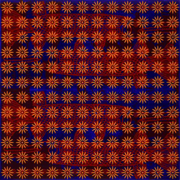 EXPOSITION : "Mayan Diary 24" est un travail ludique d'assemblage modulaire de carrés accrochés sur le mur de manière aléatoire. Les images itératives et sérielles sont sérigraphiées au dos de panneaux de Plexiglas. Technique de peinture utilisant la récupération, l'appropriation et l'accumulation iconographique. Les principaux thèmes de ces "fusion paintings" sont largement inspirés des cultures tribales, du chamanisme, des Mangas, du Kundalini, des cycles de vie et du "momentum" cosmique. Le langage pictural se présente comme un lieu de rencontre iconographique d'éléments transtemporels et transculturels d'archétypes puisés dans l'inconscient et l'imaginaire collectifs.