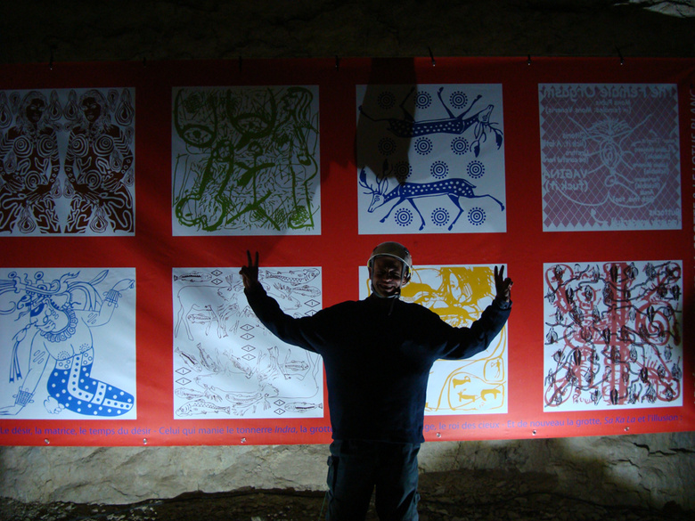 Cette mise en scène inattendue invitera ainsi le spectateur à mettre en éveil tous ses sens et ses acquis : visuels, olfactifs, culturels et mémoriels, ceci grâce à cette confrontation provoquée entre une œuvre contemporaine : urbaine, brutale, forte, colorée ; avec ce lieu sacré, naturel, harmonieux, plus serein mais qui est à la fois attirant et repoussant, séducteur et effrayant ! Ce déclic, ce choc visuel fort, peut entraîner l'inconscient du spectateur vers des réminiscences, des souvenirs du monde de l'enfance et des mondes originels perdus et refoulés par les contraintes rationnelles, religieuses ou athées imposées par nos sociétés marchandes contemporaines désacralisées ou trop dogmatiques. Car si il est un constat que nous devons faire aujourd'hui, c'est bien celui du désenchantement du Monde, de la Nature et de nos relations humaines. Ores, se replonger, se ressourcer, se régénérer dans l'Origine, dans la grotte, dans la matrice du monde sensible, nous permet de réactiver notre esprit créatif, démiurge et joyeux. En effet, les Faunes, les Elfes, les Dieux, les Esprits et l'Art sont originellement et géographiquement intimement liés à l'enfouissement de l'humain dans la caverne, dans le gouffre, dans le vagin, dans le trou... dans tous ces mystérieux lieux de recueillement, de solitude, de souffrance, de plaisir et de création. Et c'est là aussi, où les premiers hommes se sont sentis en sécurité pour réfléchir et philosopher (anachorètes, Diogène, Platon etc...) et créer les premières fresques magnifiques de l'histoire de l'art, d'Altamira à Lascaux en passant par les grottes peintes d'Australie et du Zimbabwe...