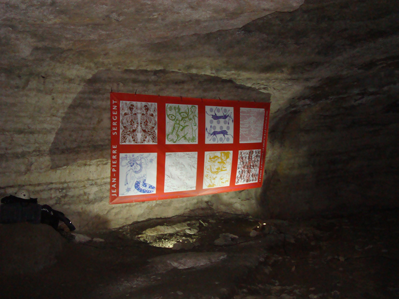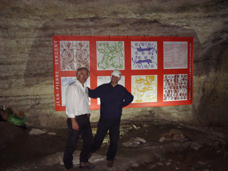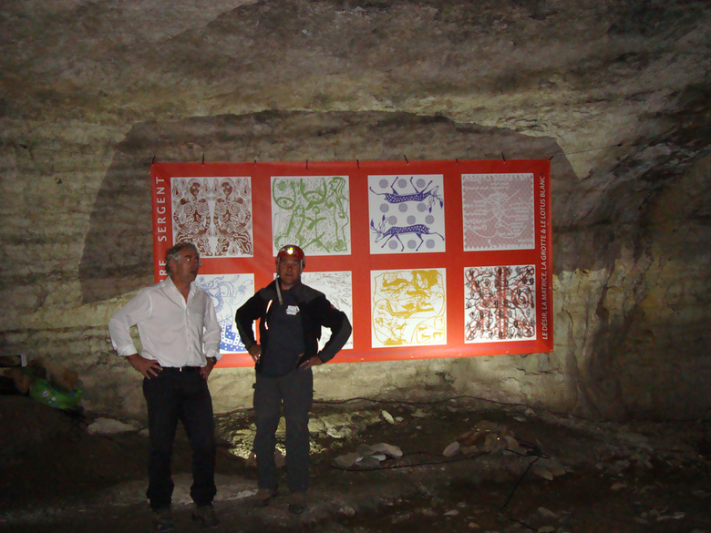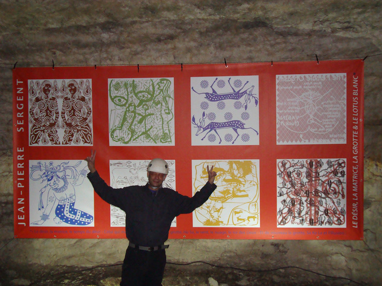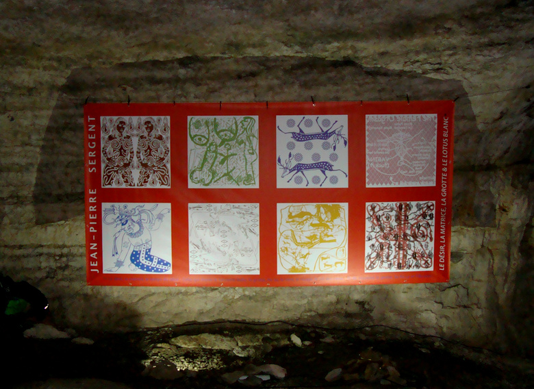 - Le désir, la matrice, la grotte et le lotus blanc, 2 bâches installées dans la Grotte de Plaisir-Fontaine, France