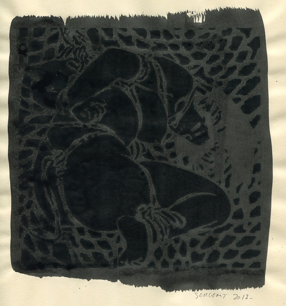 It is a work from the artist’s maturity. Free of dithering, detours and regrets. It delve right into the heart of human trueness and world soul. With its rigours, its boldness, its colours, it takes the artist himself, then the viewer by rebound, into states of full power, full freedom, full consciousness, full enlightenment! At the core of Life with its main primary preoccupations and interrogations like: presence, sex, death, desire, body, memory. It’s an art of experience and testimony. Sergent is revealing to people that we can exist within joy, being demiurges and masters of its own life, into sexuality, danse, spirituality and ecstasies. As he deeply stated in this text: