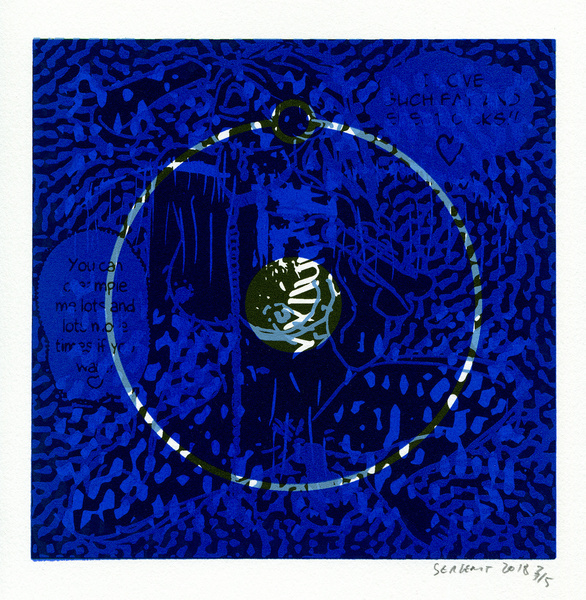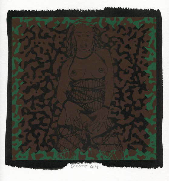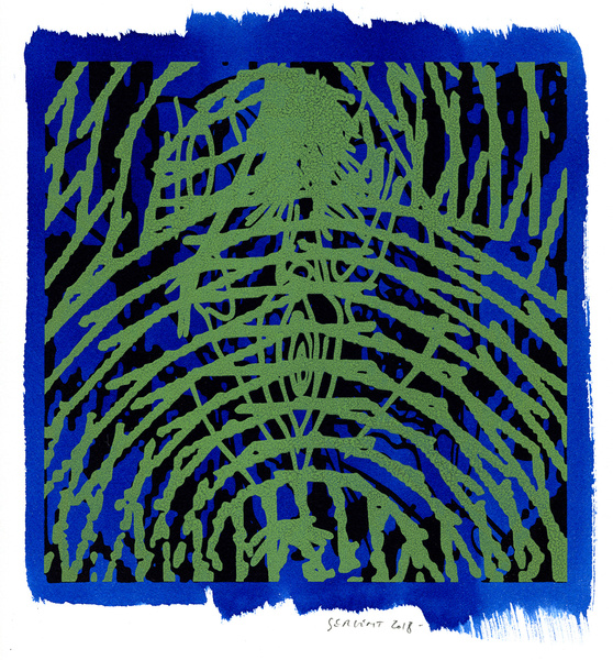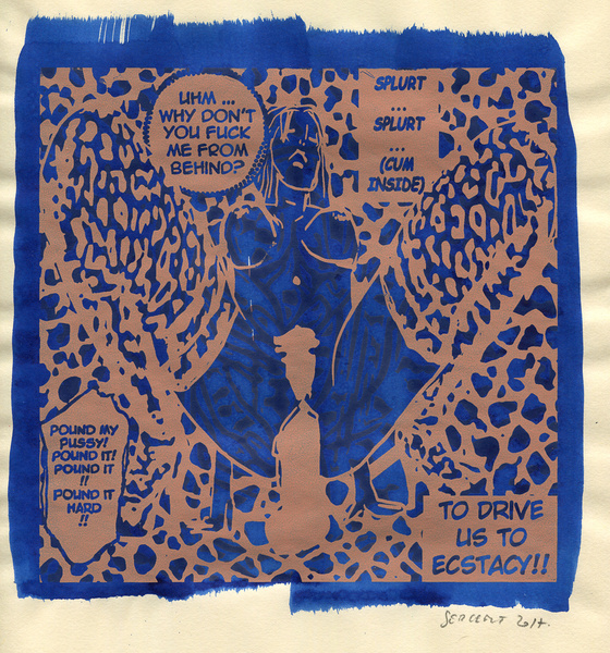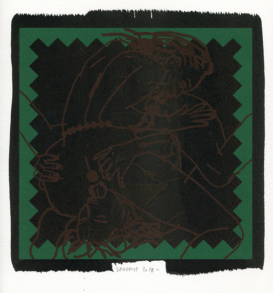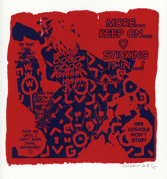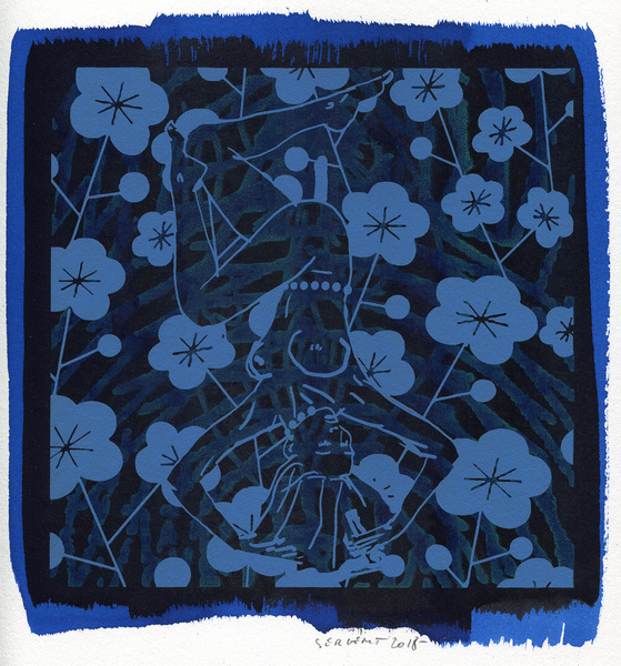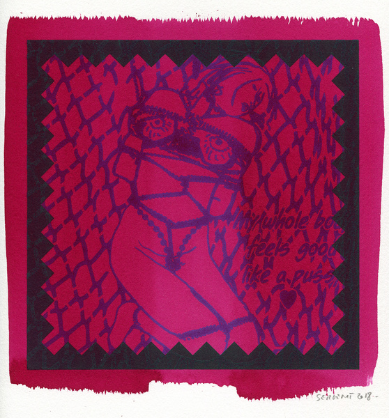 - 26, 46, Shakti-Yoni, Ecstatic Cosmic Dances, acrylic hand silk-screened and Indian ink on white B.F.K. Rives paper 250g, 25 x 25.5 cm, 2018.
