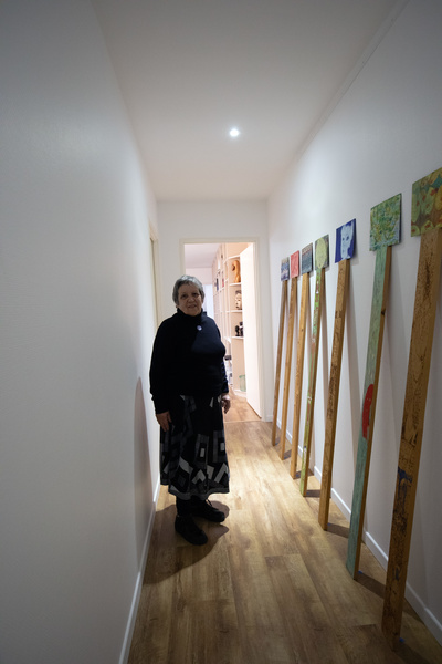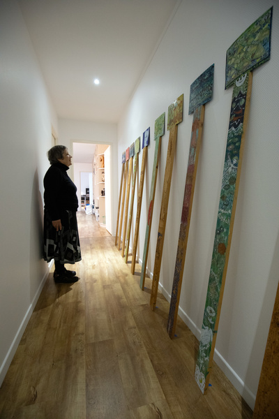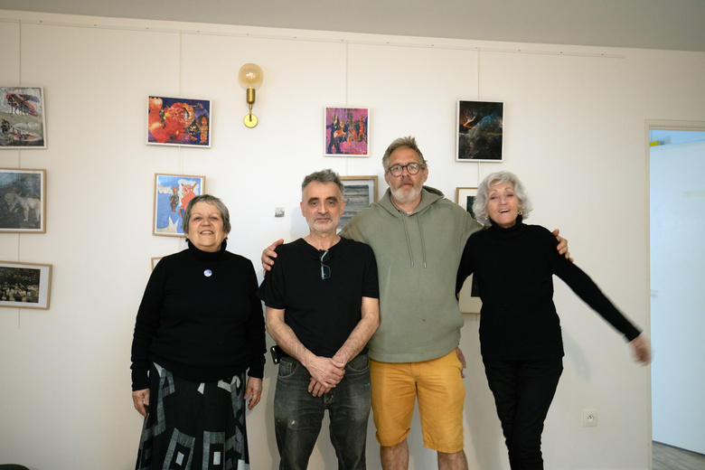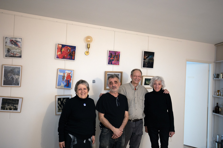 - 1, 2, Claudie Floutier & Heidi Suter, lors du choix des œuvres à exposer, atelier de l'artiste, Besançon le 31 janvier 2025.