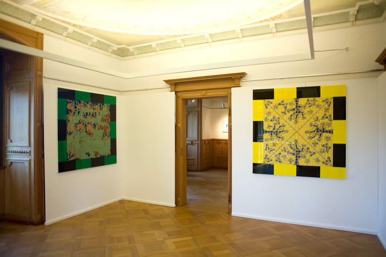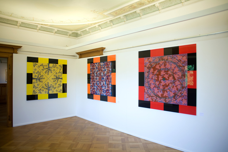 - x 7 Paining on Plexiglas, painting & acrylic hand silkscreened on Plexiglas, 1,40 x 1,40 m, 2009-2011