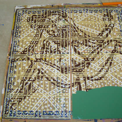 - 1, 3, Suites entropiques, mixed technics on Plexiglas, 1.40 x 1.40 m, 2015 - 2, Suites entropiques, mixed technics on Plexiglas, 1.40 x 1.40 m, 2011 - 4, Large Paper, acrylic hand silkscreened on B.F.K. Rives paper, 1.30 x 1.20 cm, 2011, 2015 - 5 - 7, Bones & Flowers: The Metamorphosis Of Life, acrylic hand silkscreened on B.F.K. Rives paper, 90 x 70 cm - 8 > 20, Small Paper, acrylic hand silkscreened on B.F.K. Rives paper, 0.43 x 0.42 m, 2014