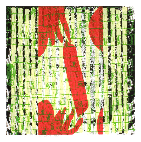 Acrylic silkscreened on Rives BFK paper, 38 x 56 cm.