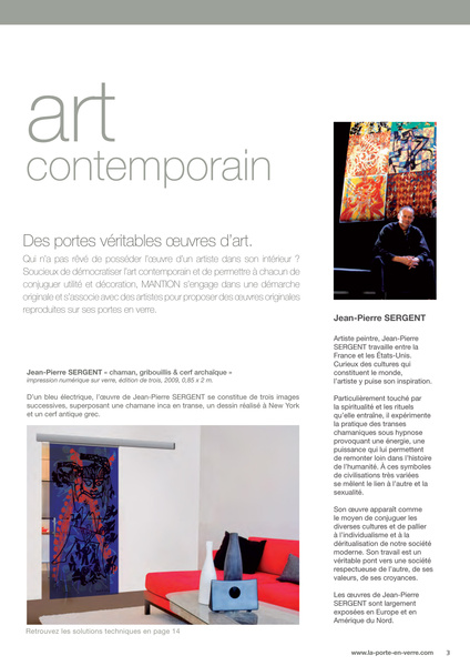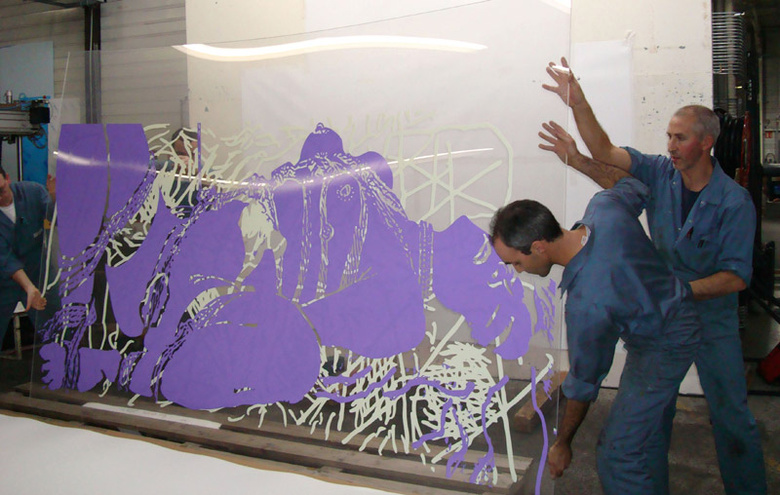 During summer 2009, Jean-Pierre Sergent realized with the international industrial group MANTION a limited edition of 3 glass doors using a new digital printing process.