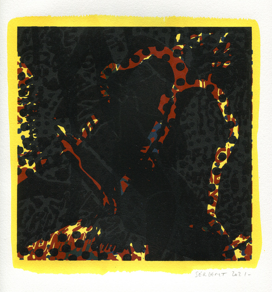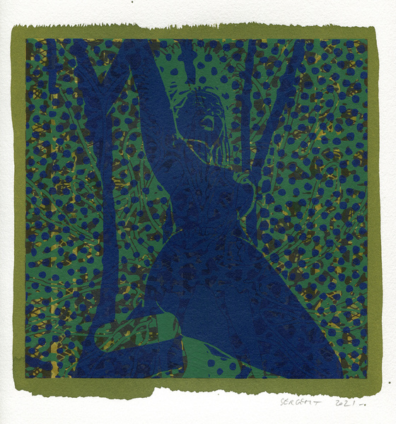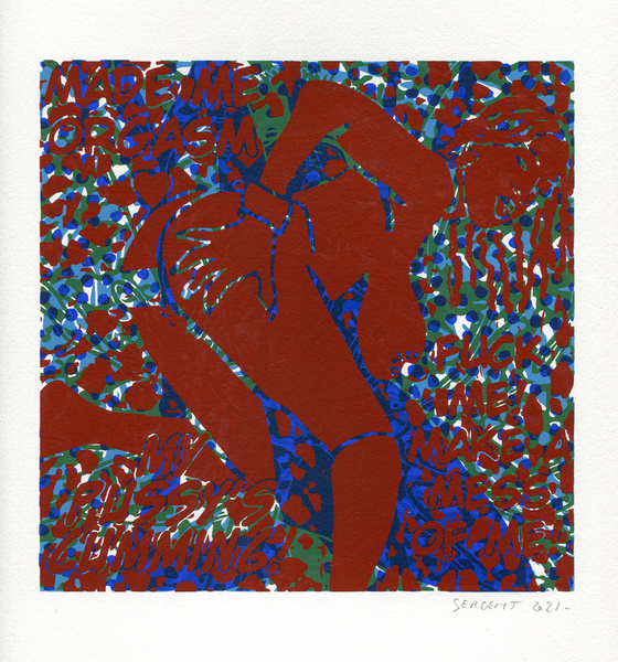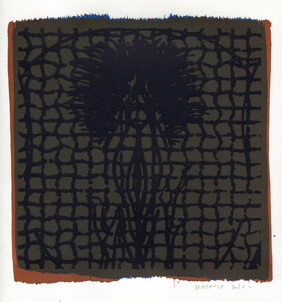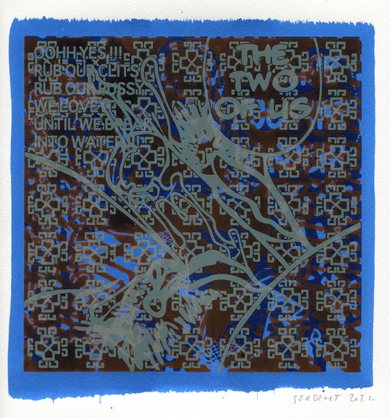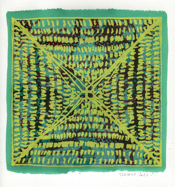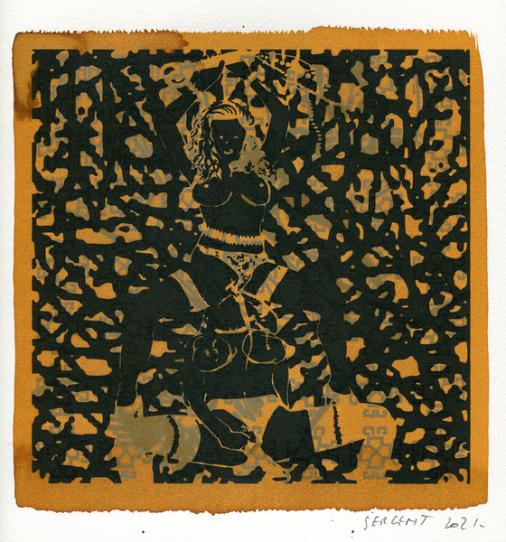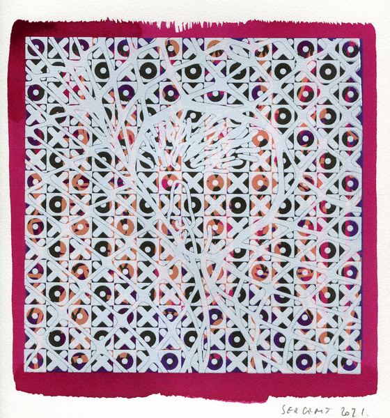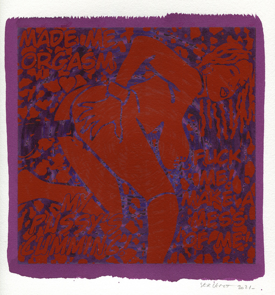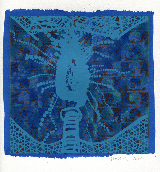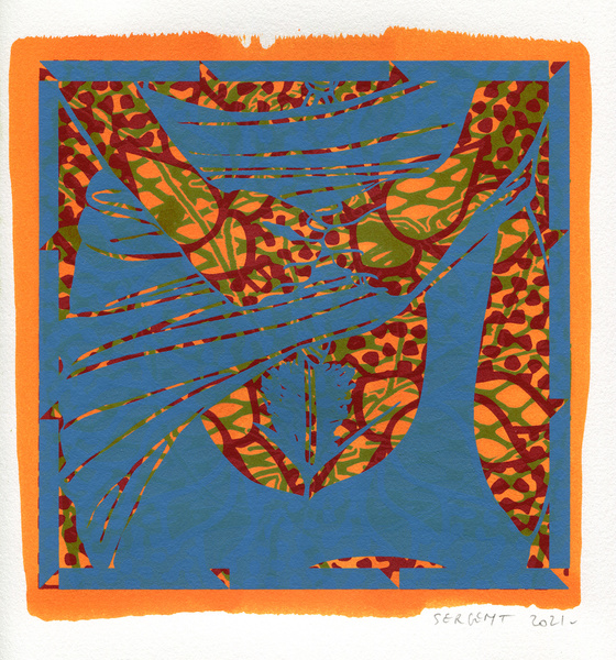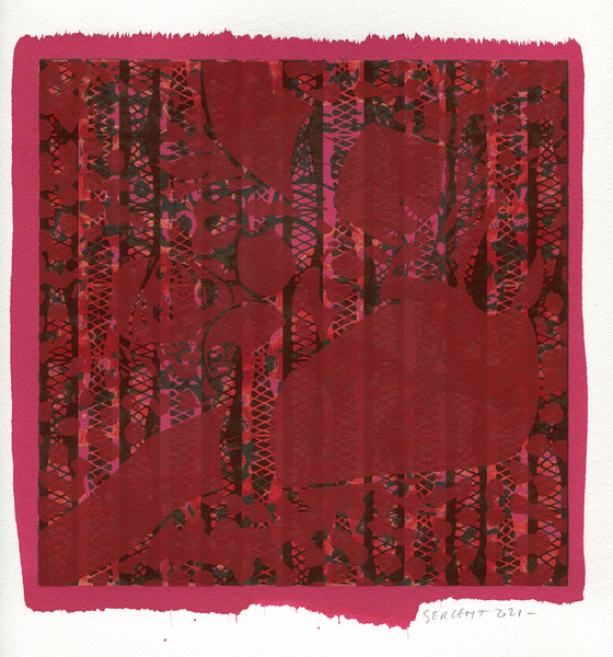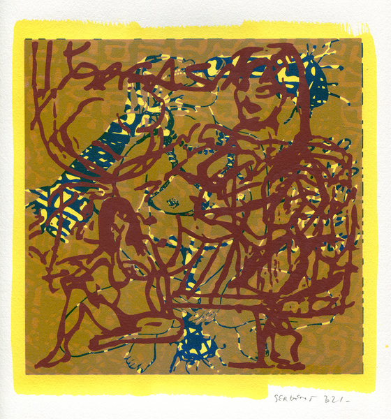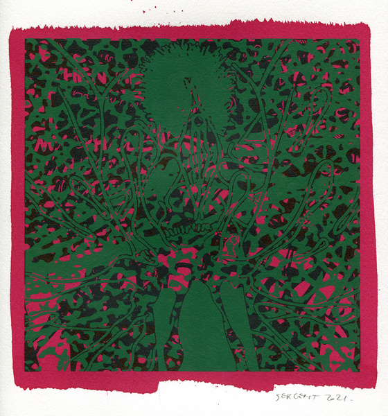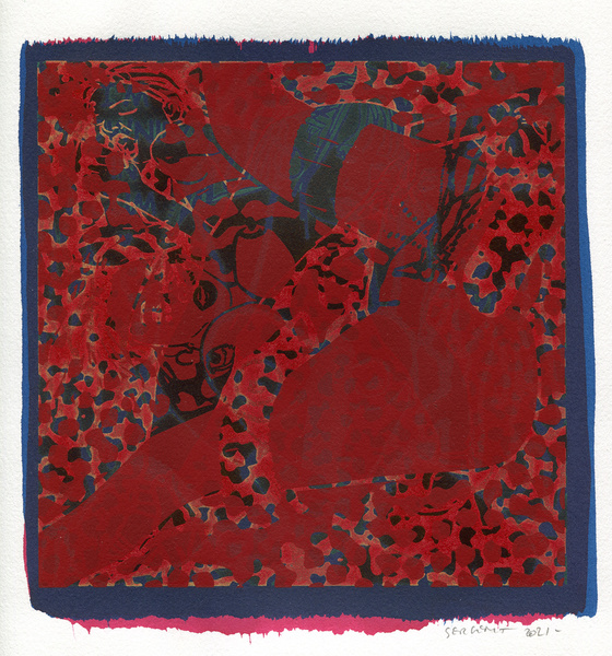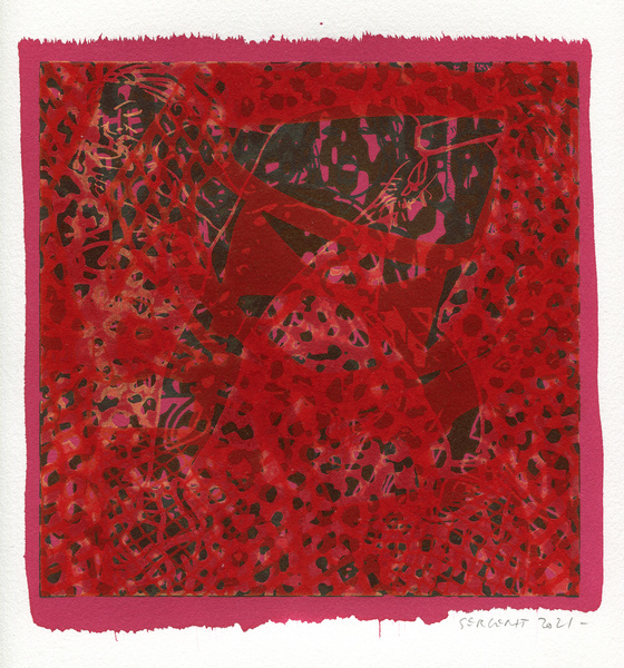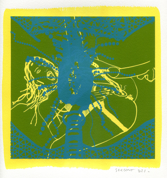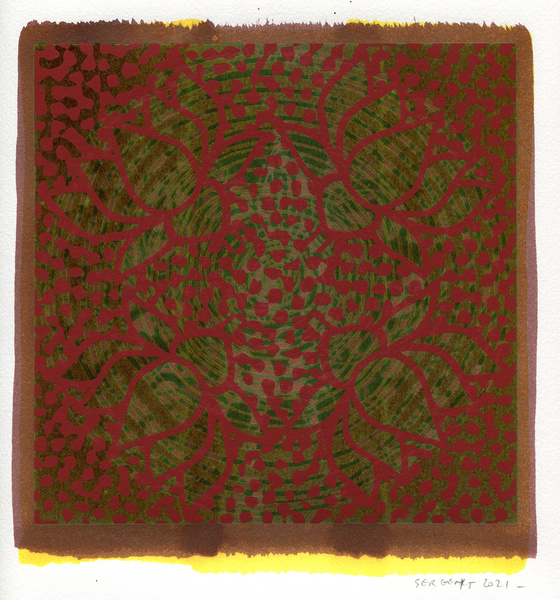 "Shakti-Yoni, Ecstatic Cosmic Dances", acrylic hand silk-screened and Indian ink on rives BFK paper 250g, unique print, 25,5 x 25,5 cm, 2021