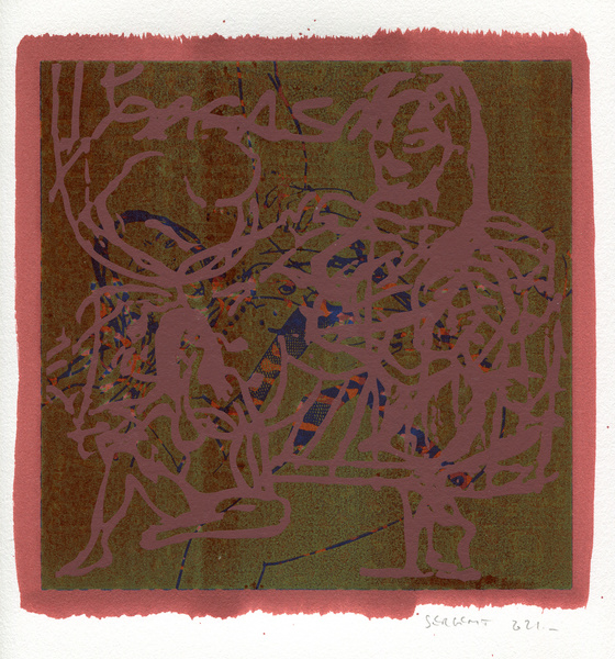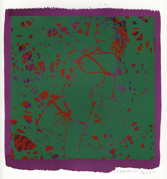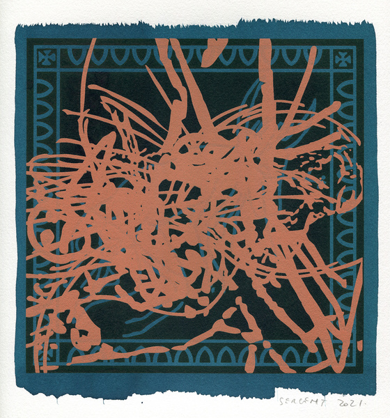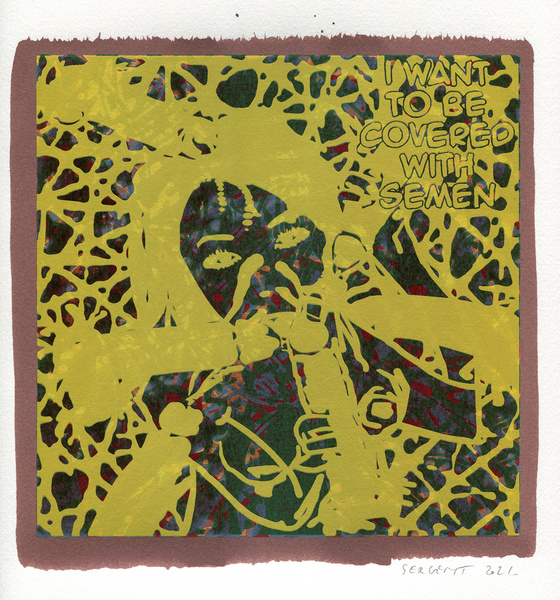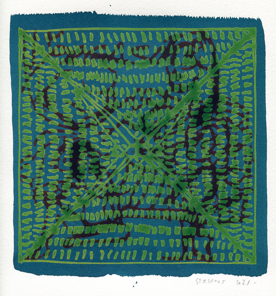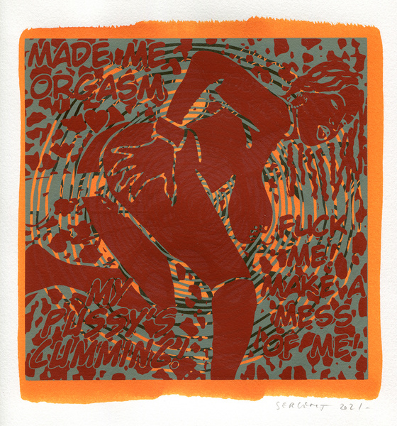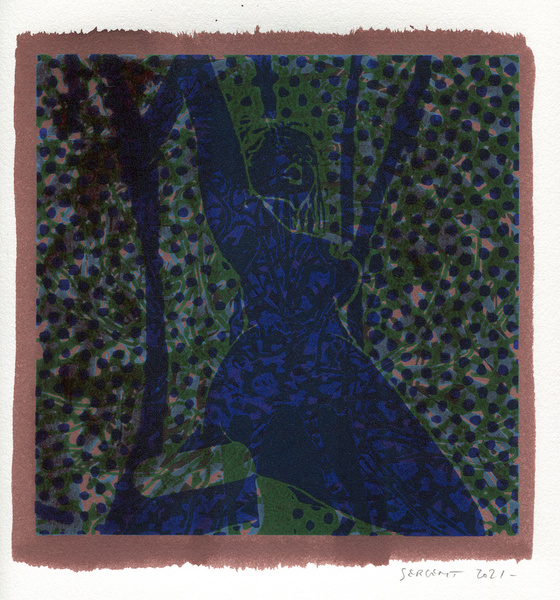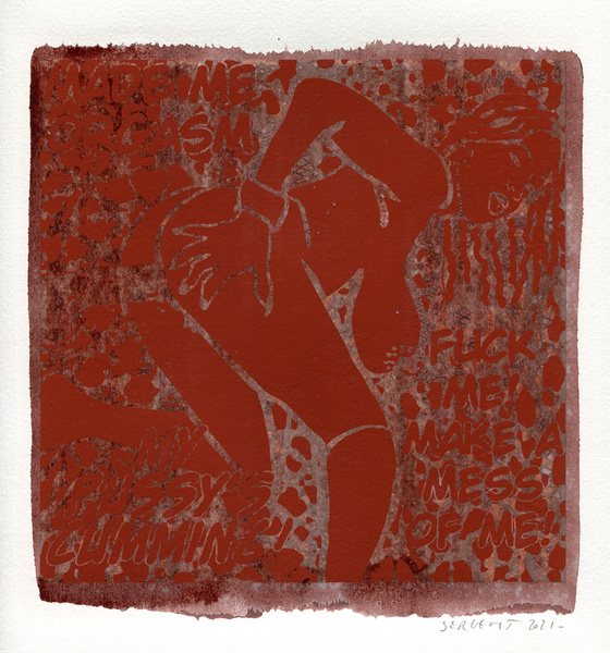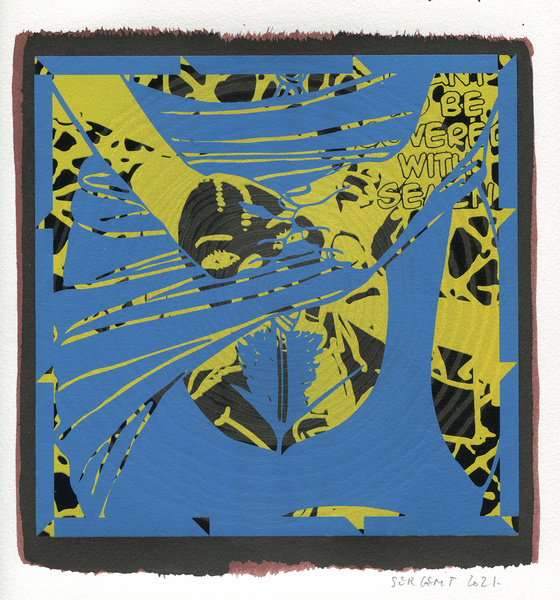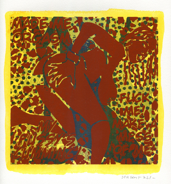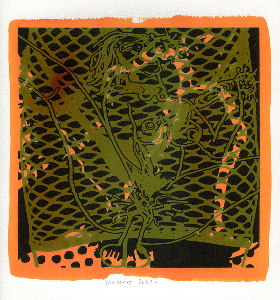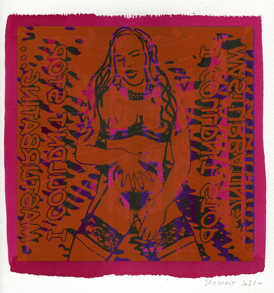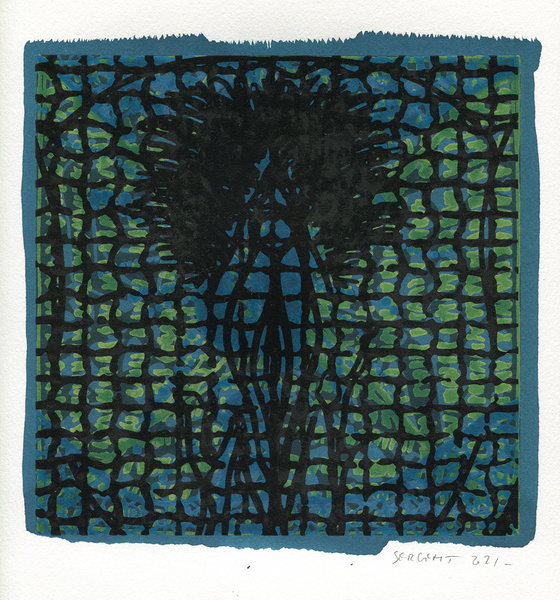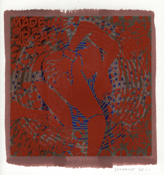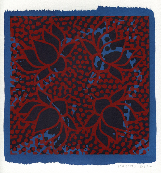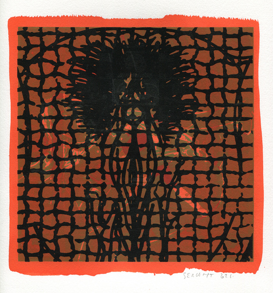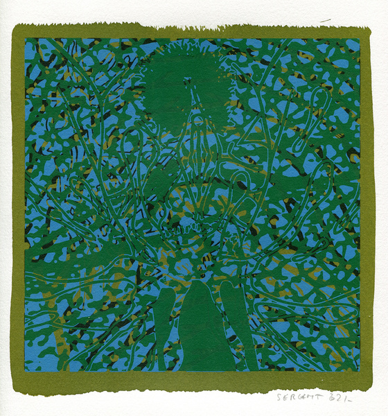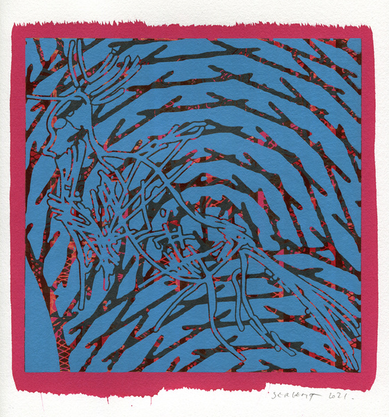 "Shakti-Yoni, Ecstatic Cosmic Dances", acrylic hand silk-screened and Indian ink on rives BFK paper 250g, unique print, 25,5 x 25,5 cm, 2021