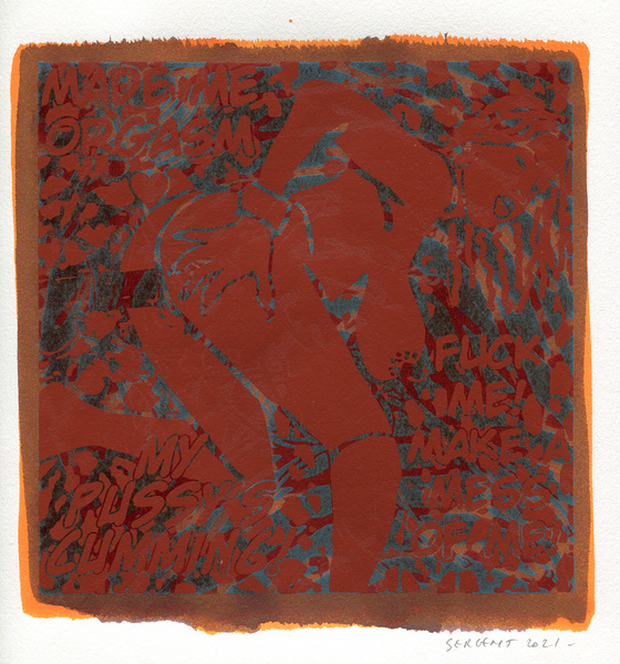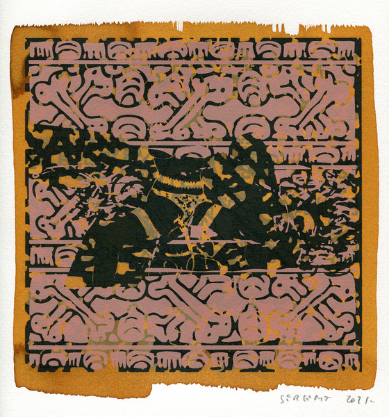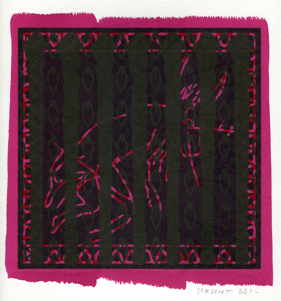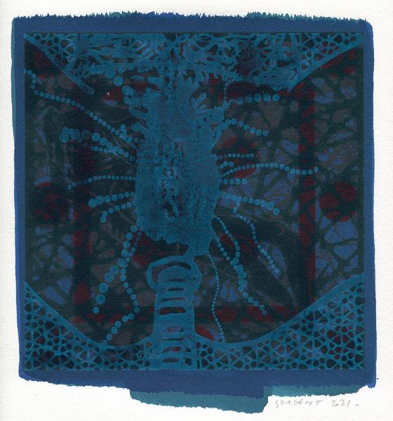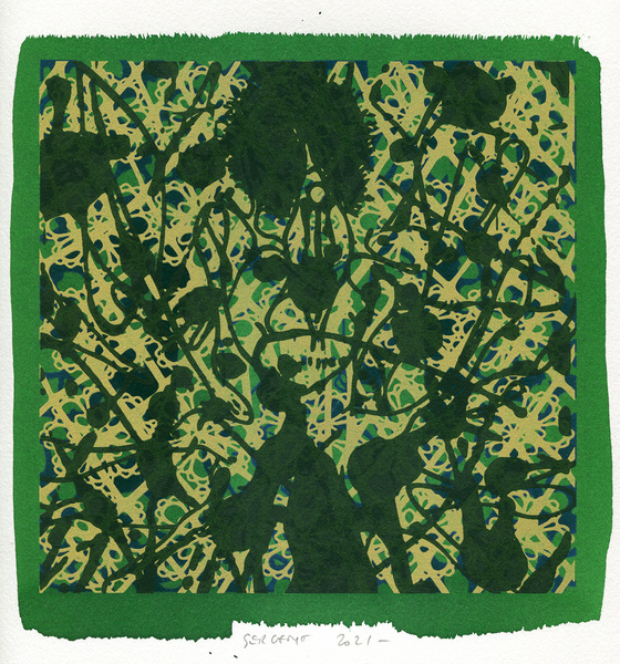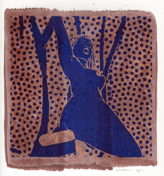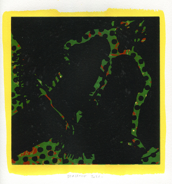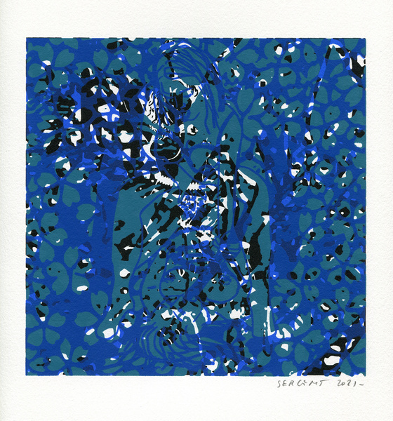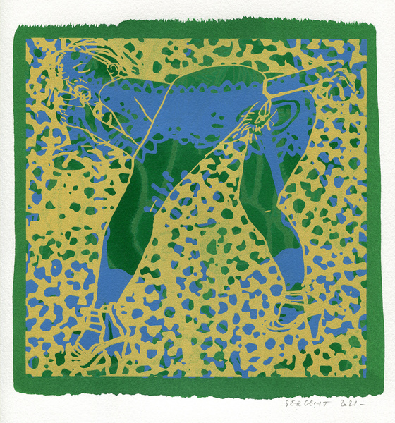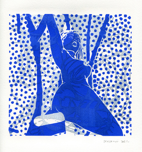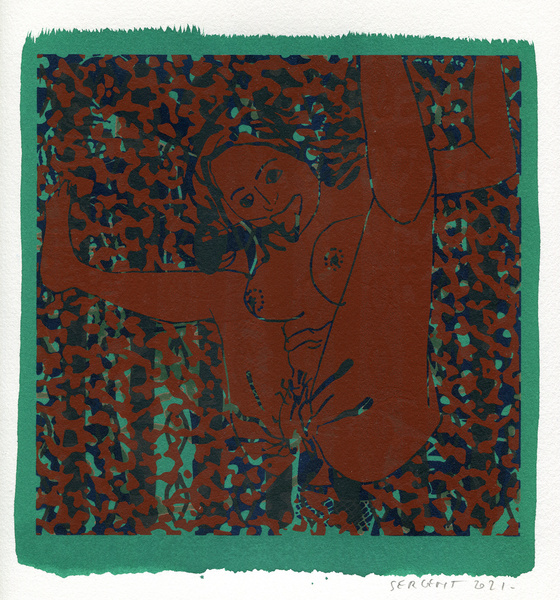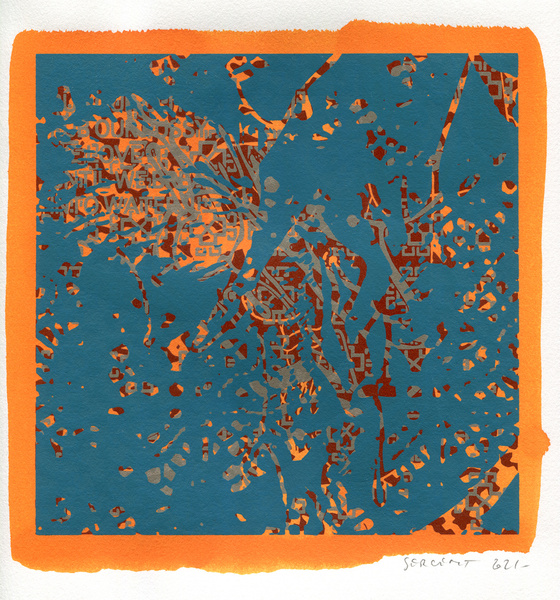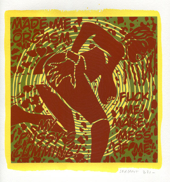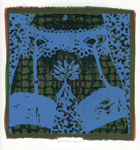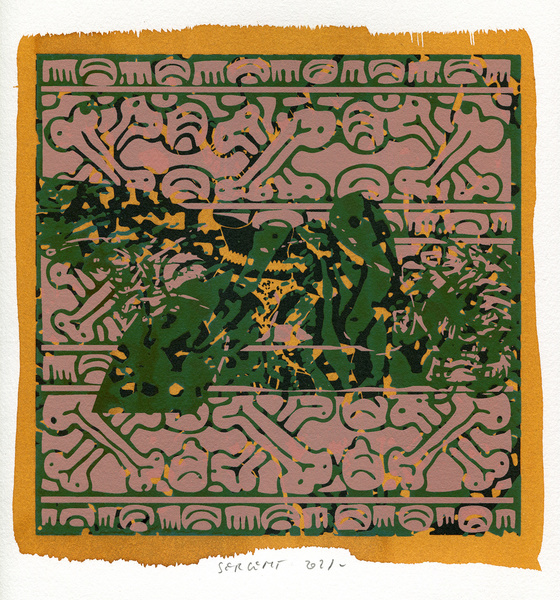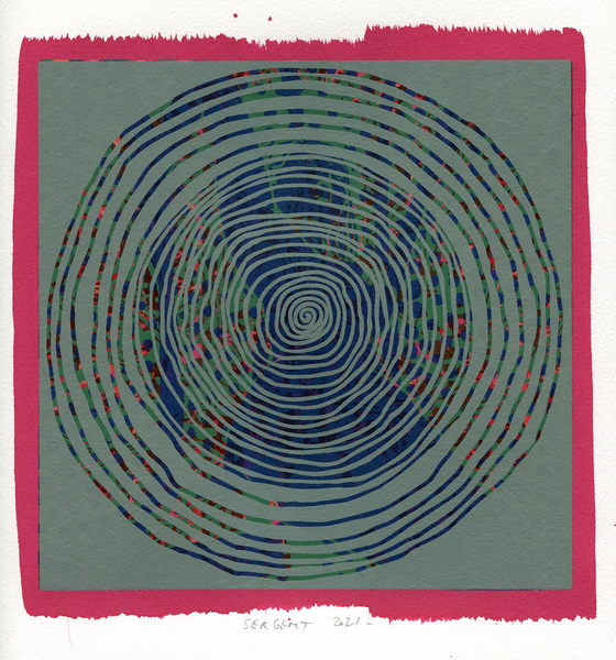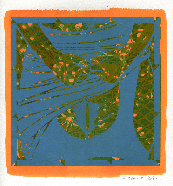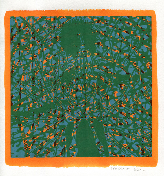 "Shakti-Yoni, Ecstatic Cosmic Dances", acrylic hand silk-screened and Indian ink on rives BFK paper 250g, unique print, 25,5 x 25,5 cm, 2021