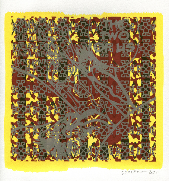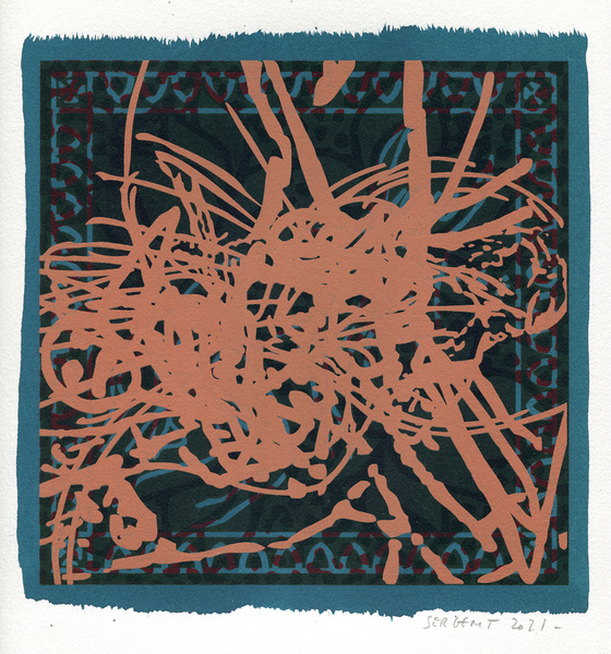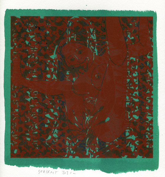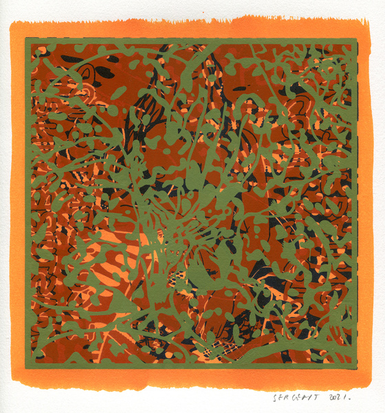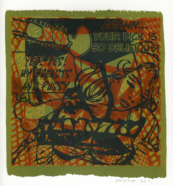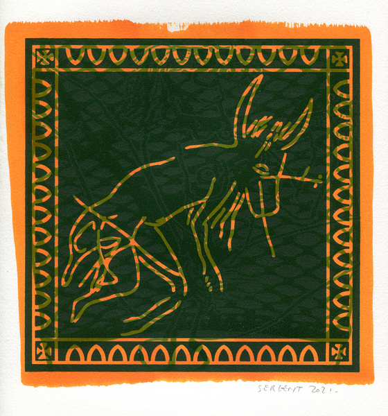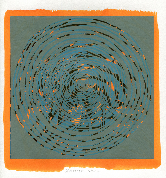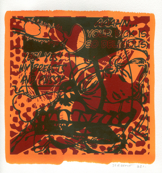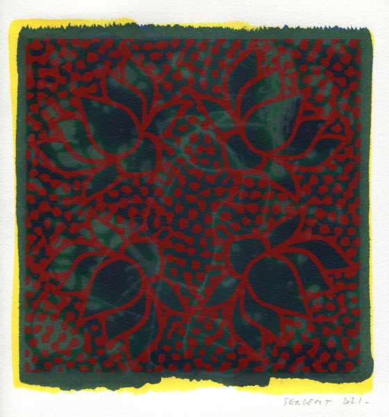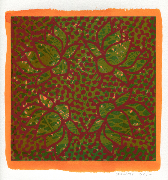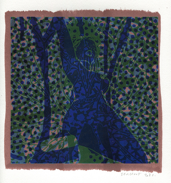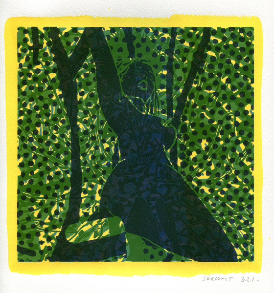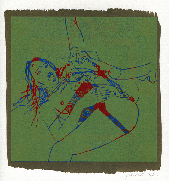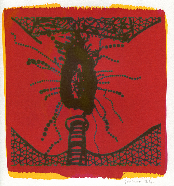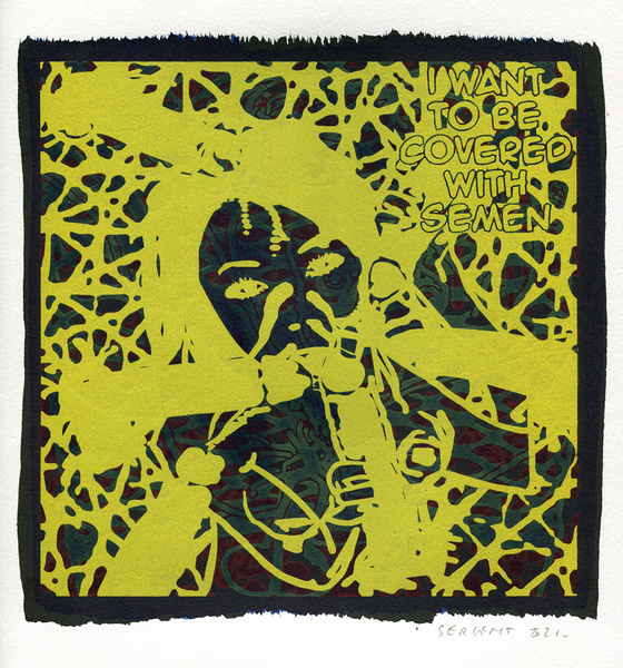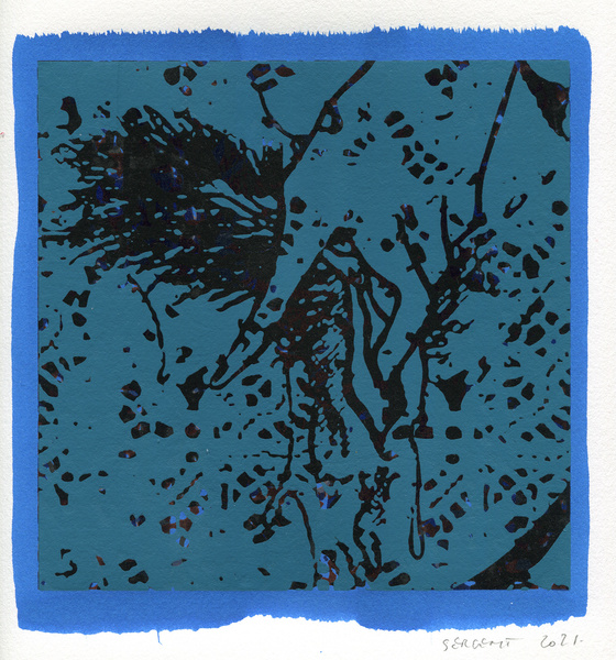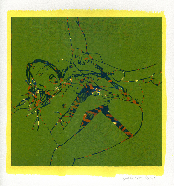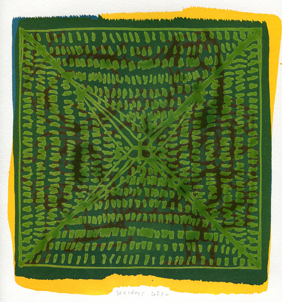 "Shakti-Yoni, Ecstatic Cosmic Dances", acrylic hand silk-screened and Indian ink on rives BFK paper 250g, unique print, 25,5 x 25,5 cm, 2021