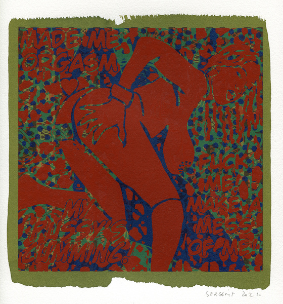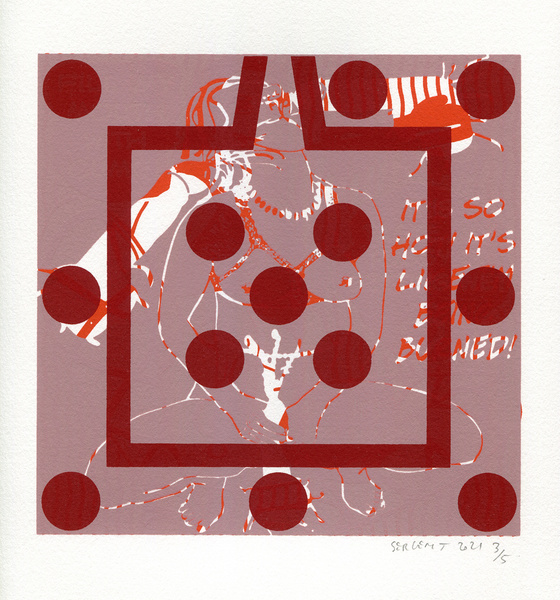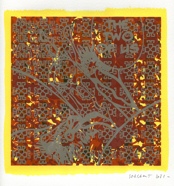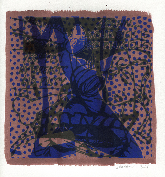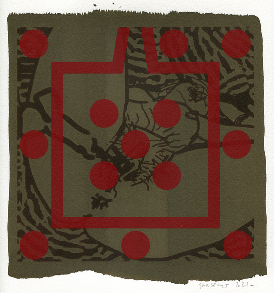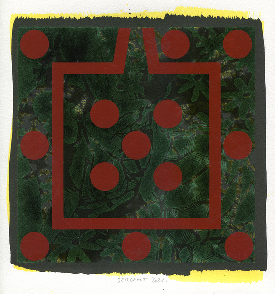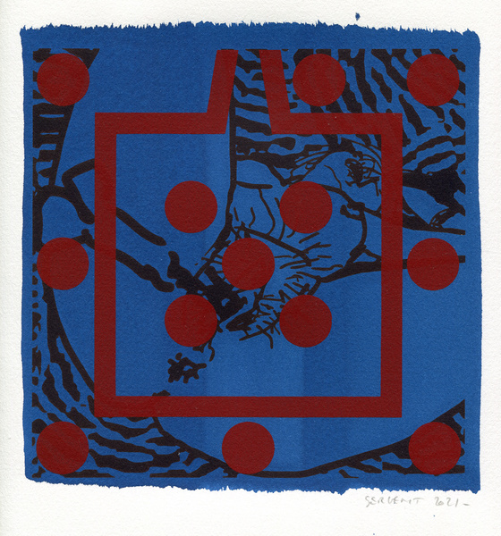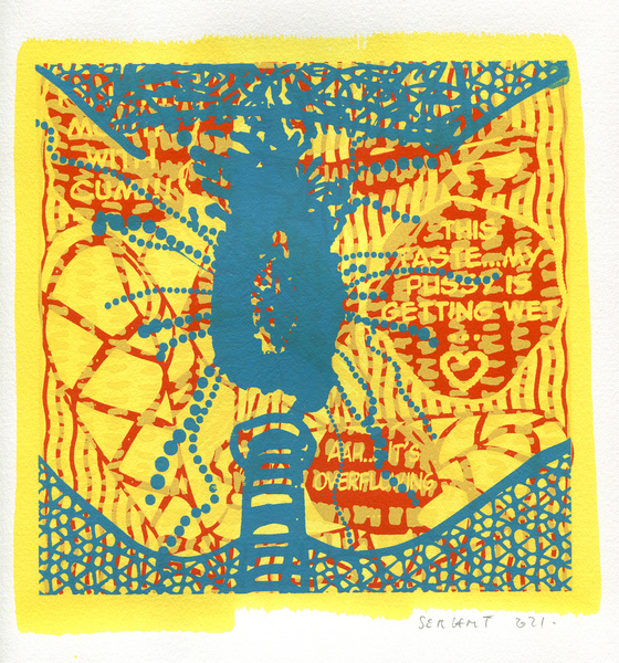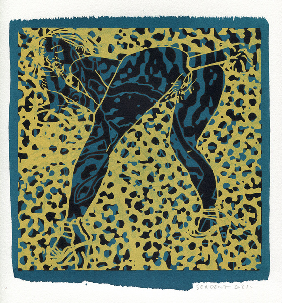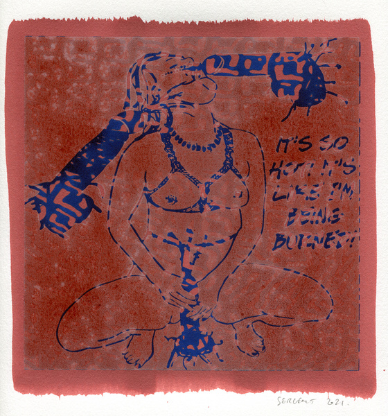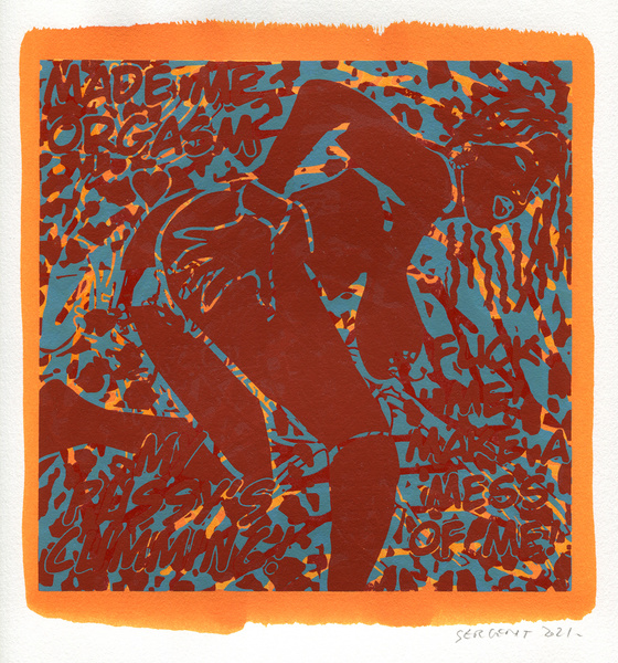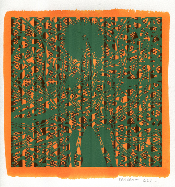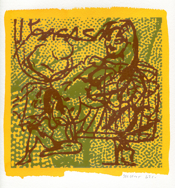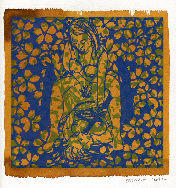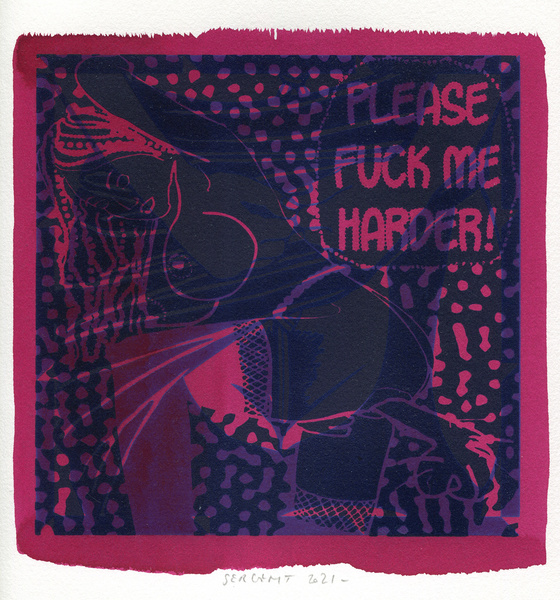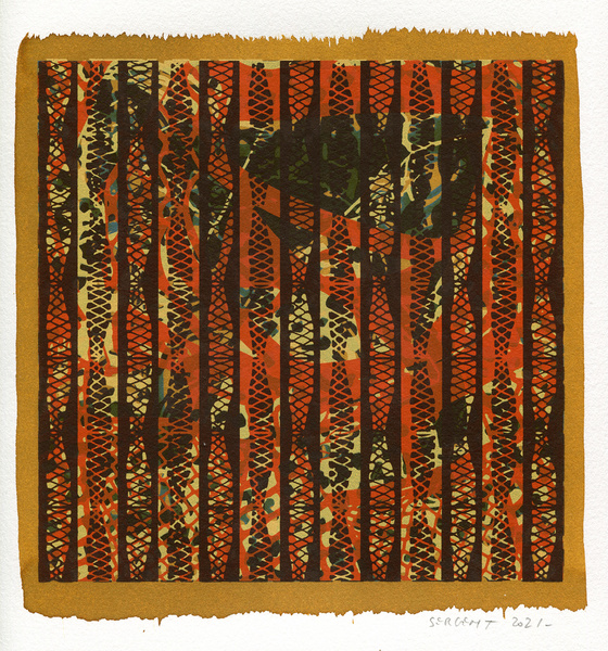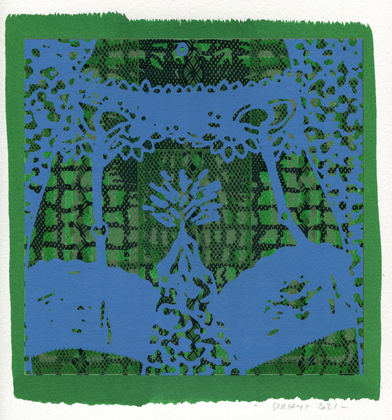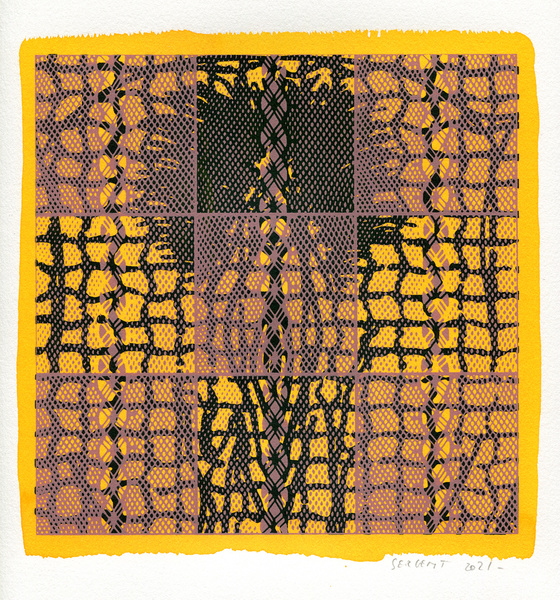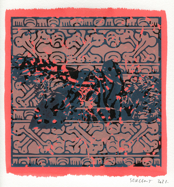 "Shakti-Yoni, Ecstatic Cosmic Dances", acrylic hand silk-screened and Indian ink on rives BFK paper 250g, unique print, 25,5 x 25,5 cm, 2021