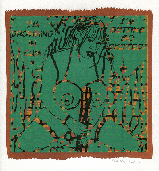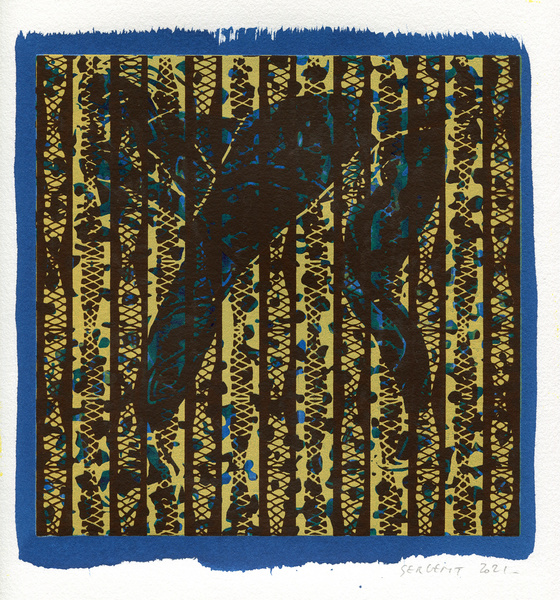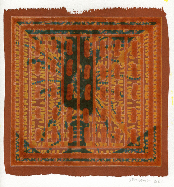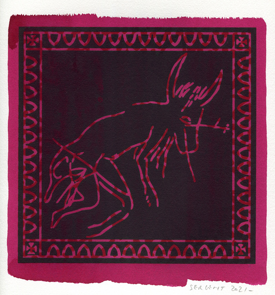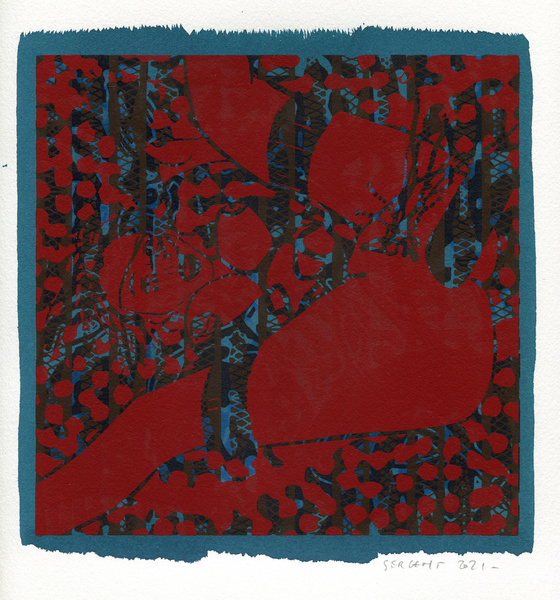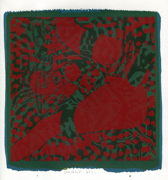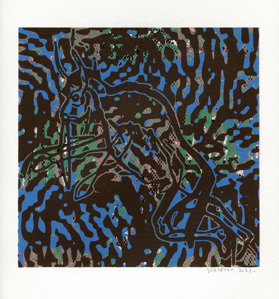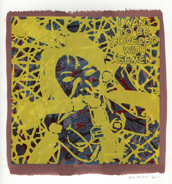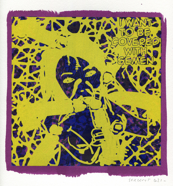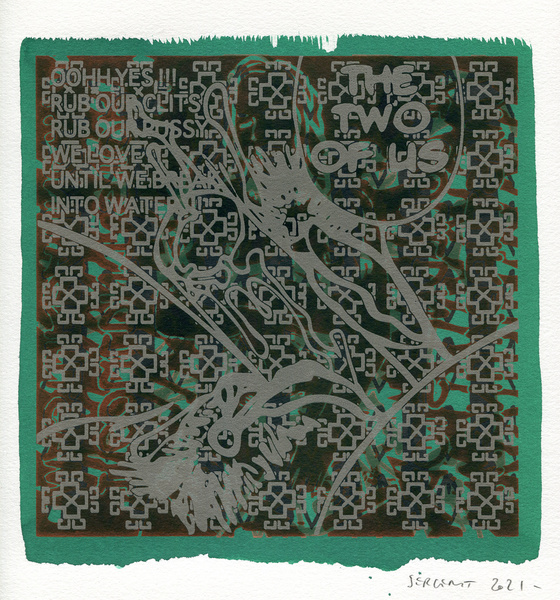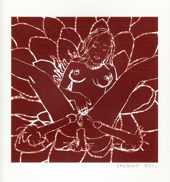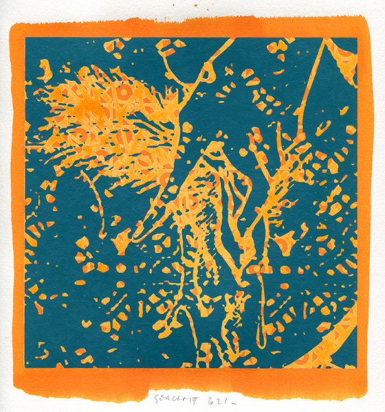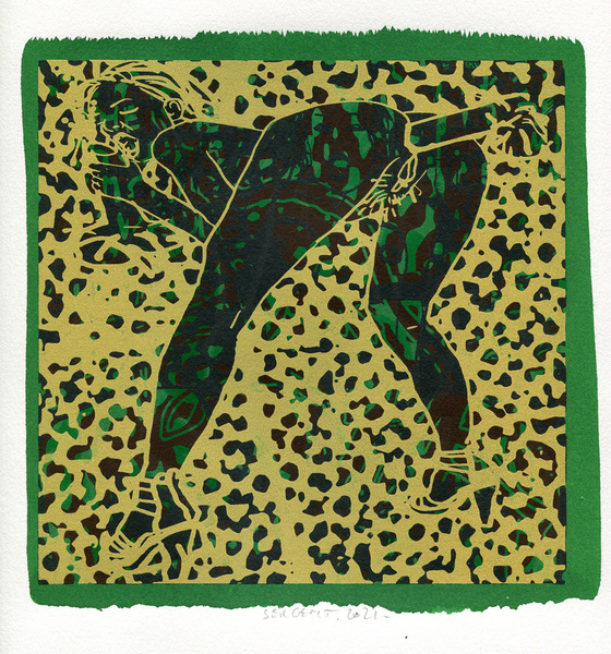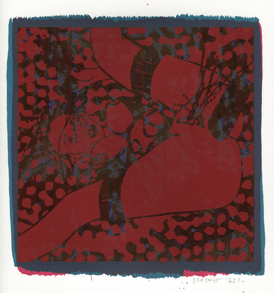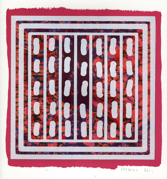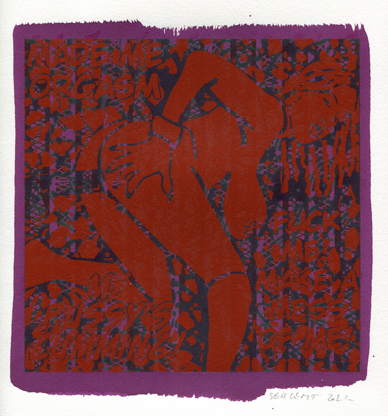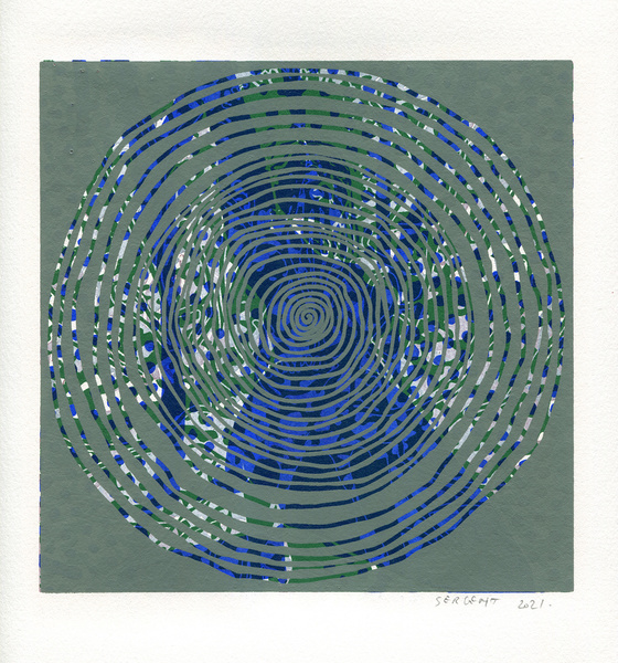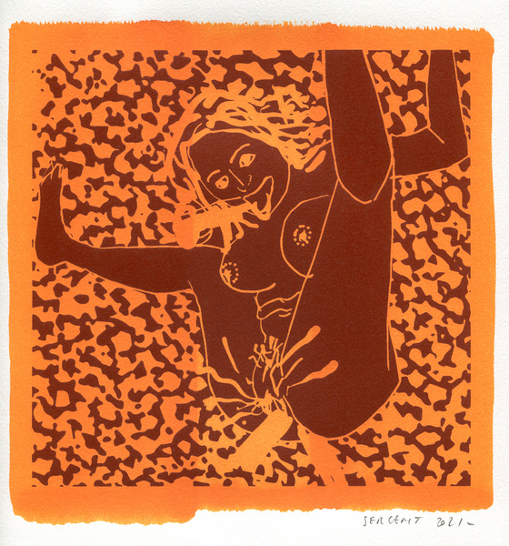 "Shakti-Yoni, Ecstatic Cosmic Dances", acrylic hand silk-screened and Indian ink on rives BFK paper 250g, unique print, 25,5 x 25,5 cm, 2021