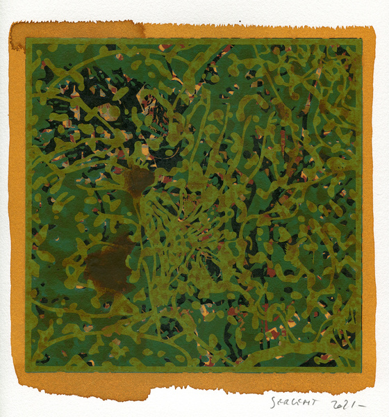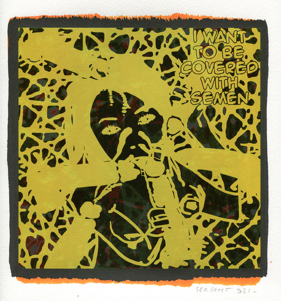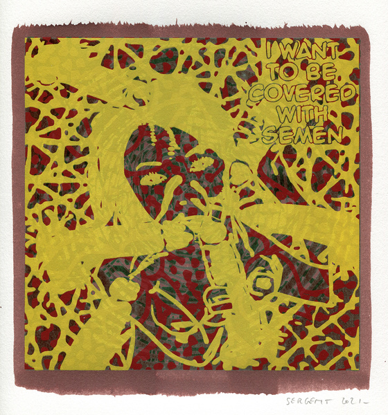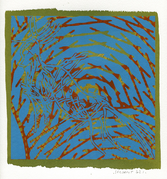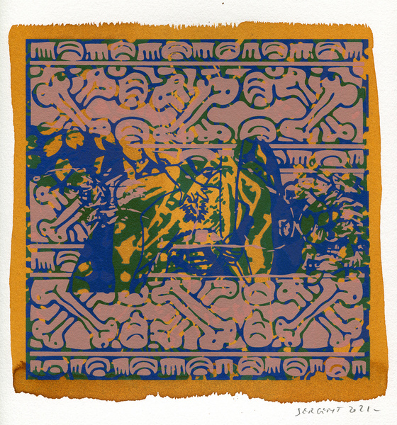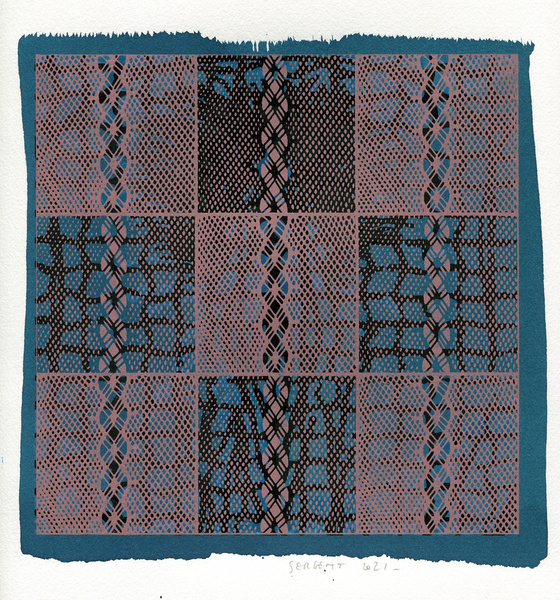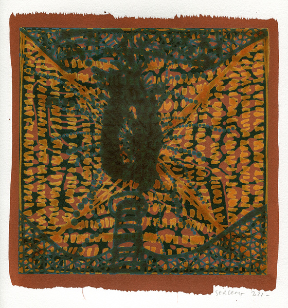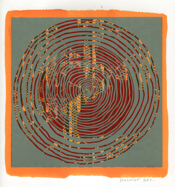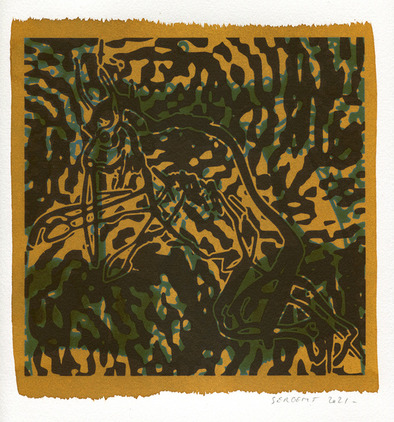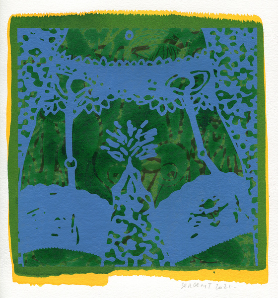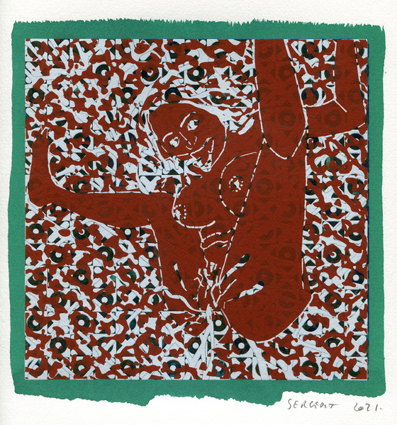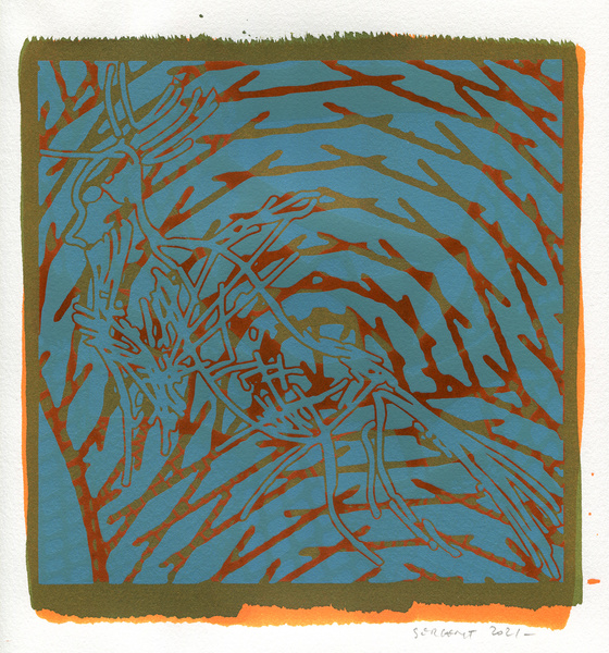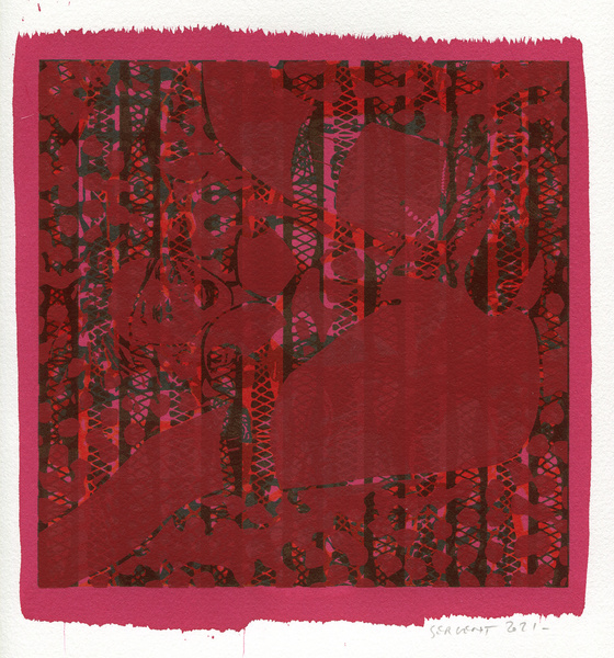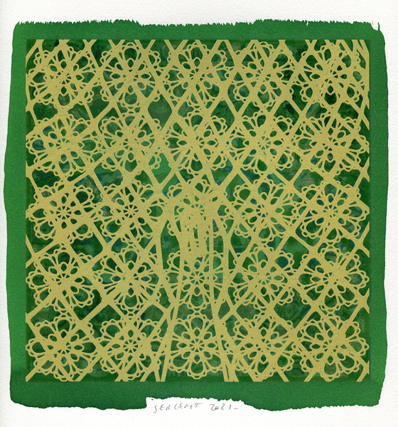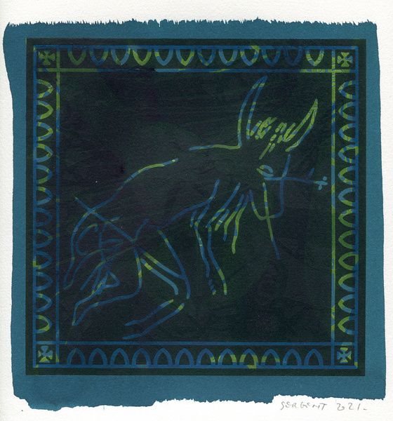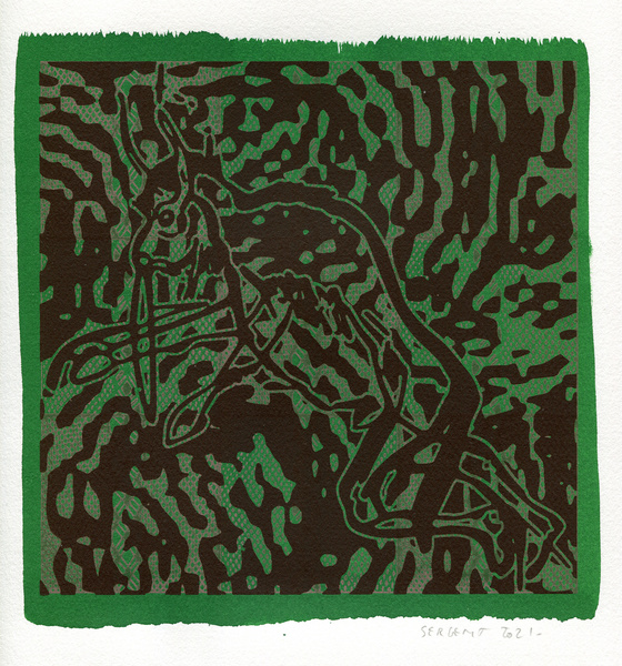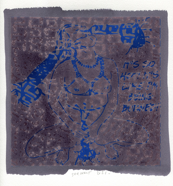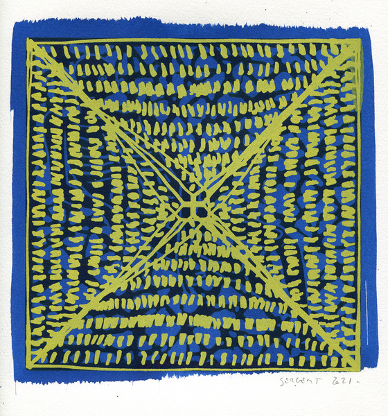 "Shakti-Yoni, Ecstatic Cosmic Dances", acrylic hand silk-screened and Indian ink on rives BFK paper 250g, unique print, 25,5 x 25,5 cm, 2021