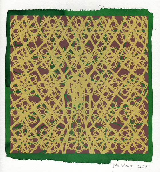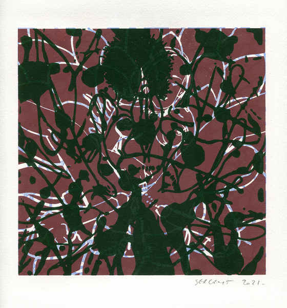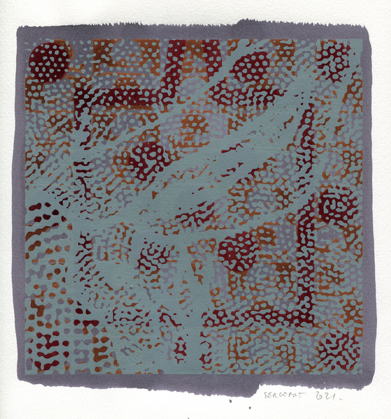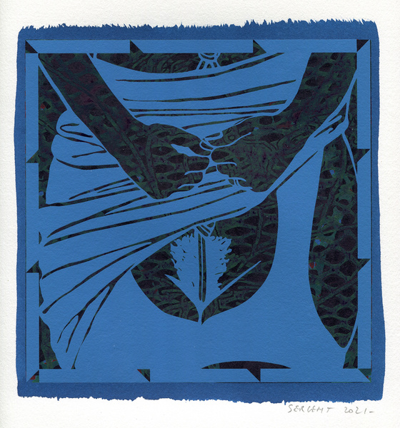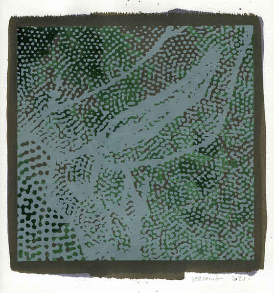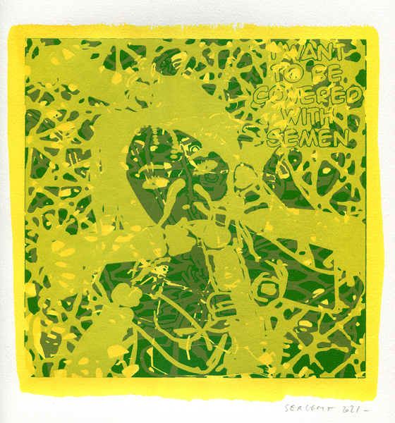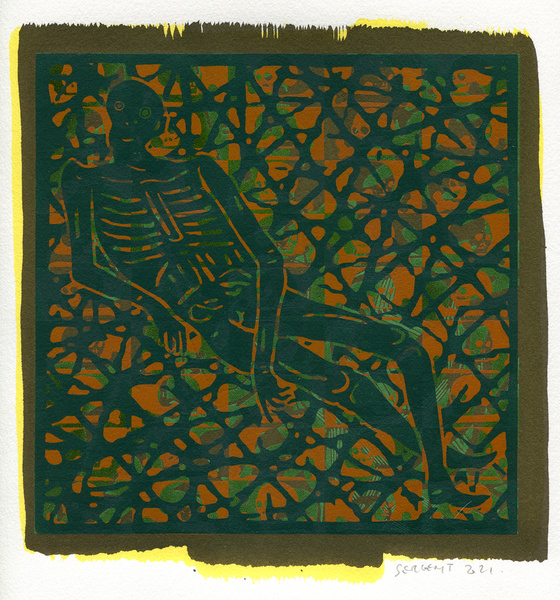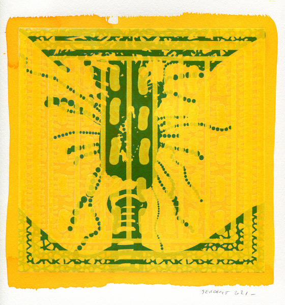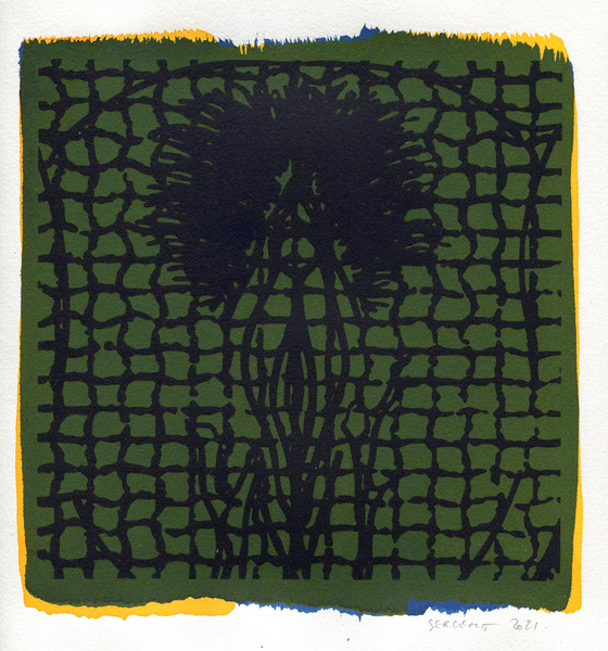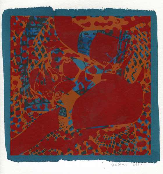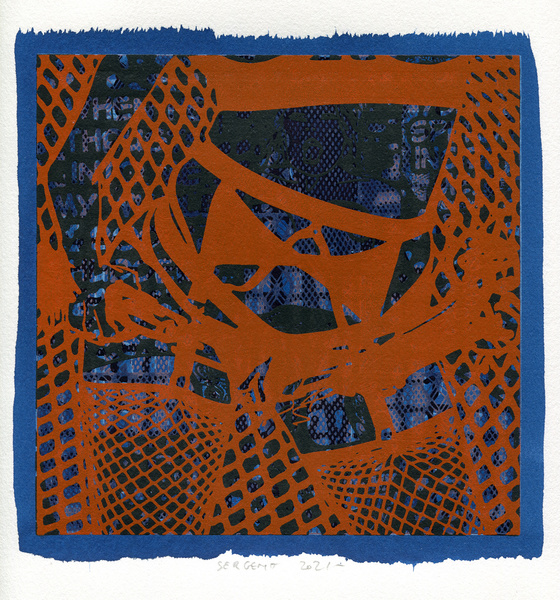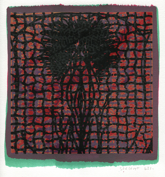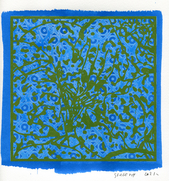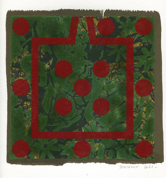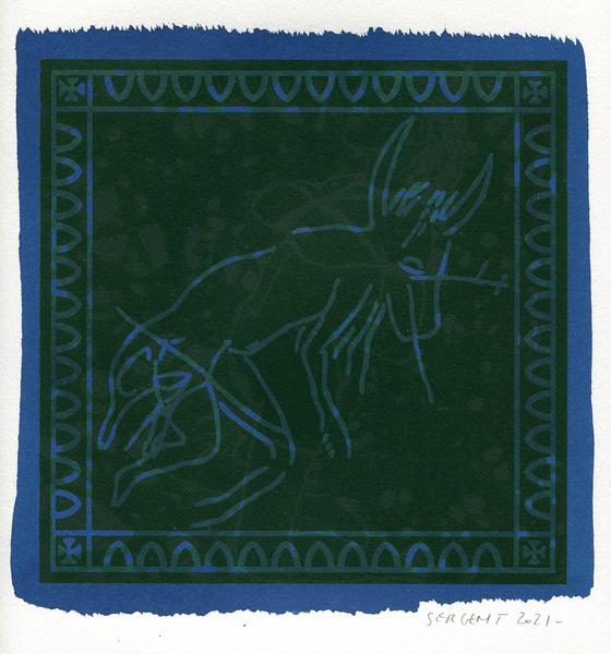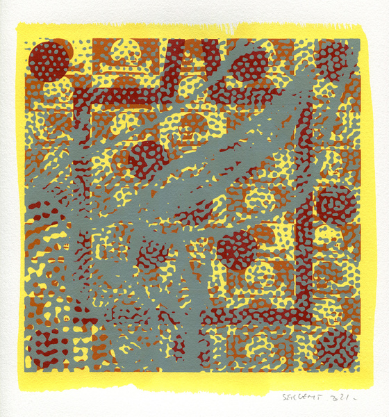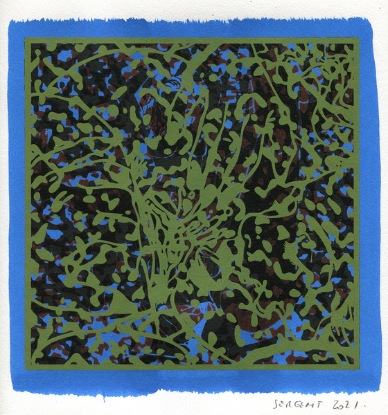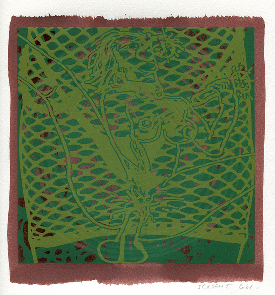 "Shakti-Yoni, Ecstatic Cosmic Dances", acrylic hand silk-screened and Indian ink on rives BFK paper 250g, unique print, 25,5 x 25,5 cm, 2021