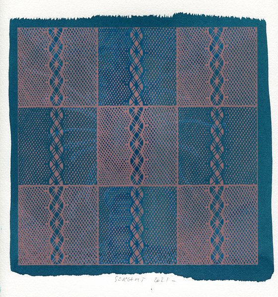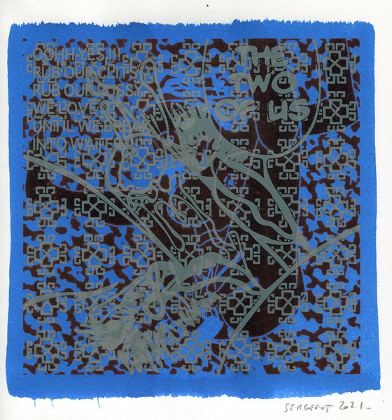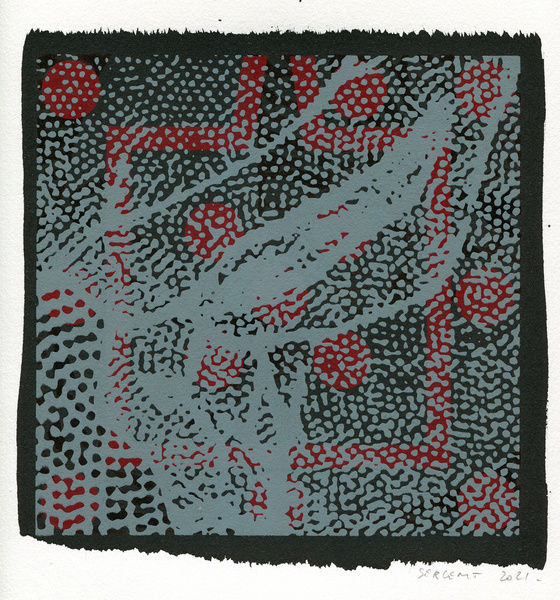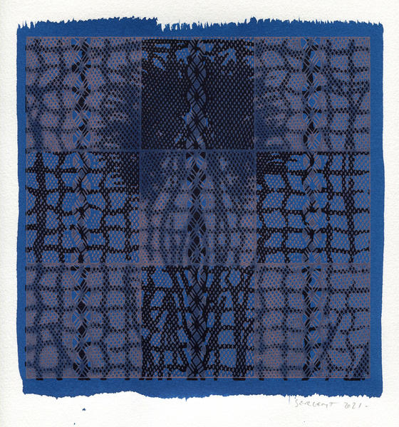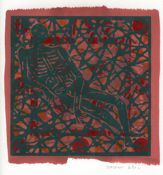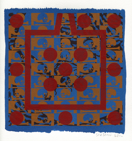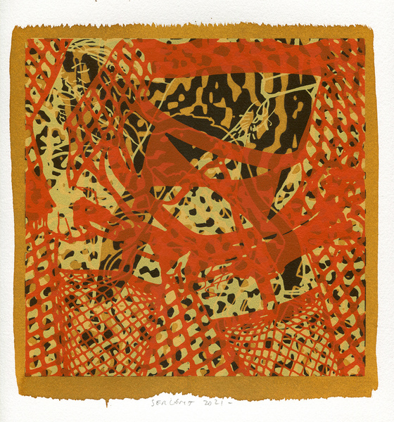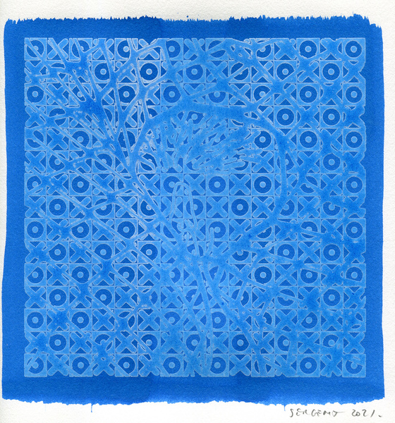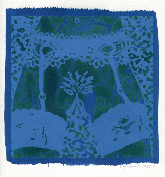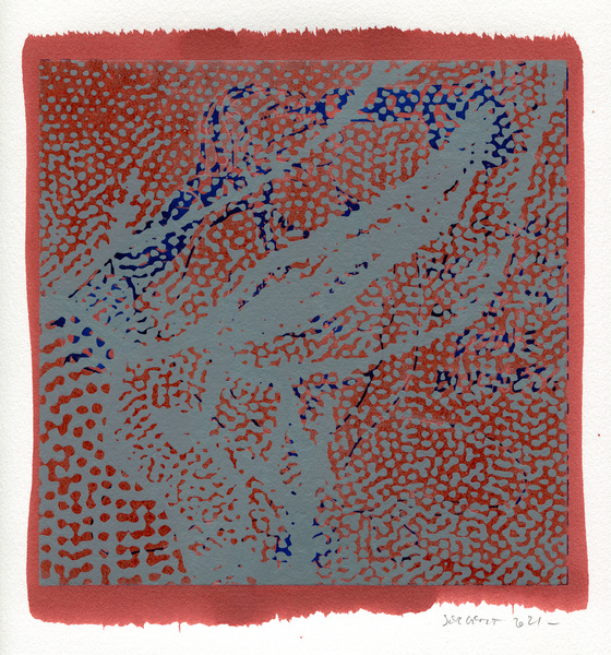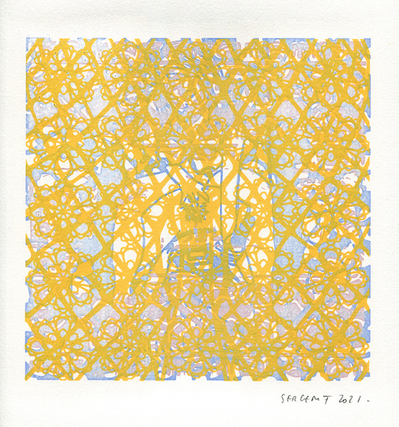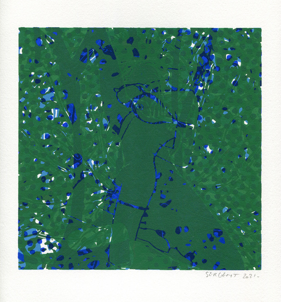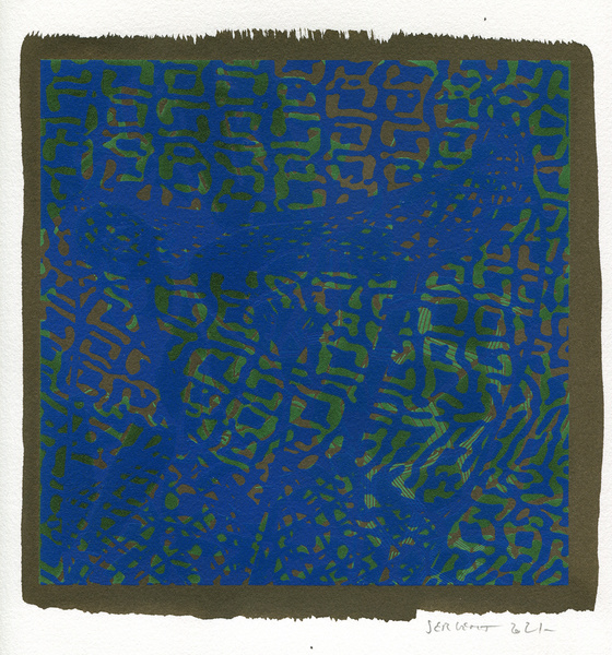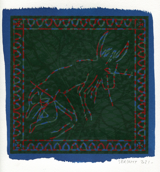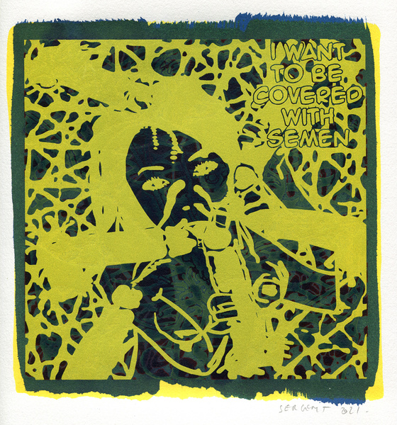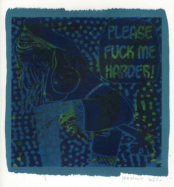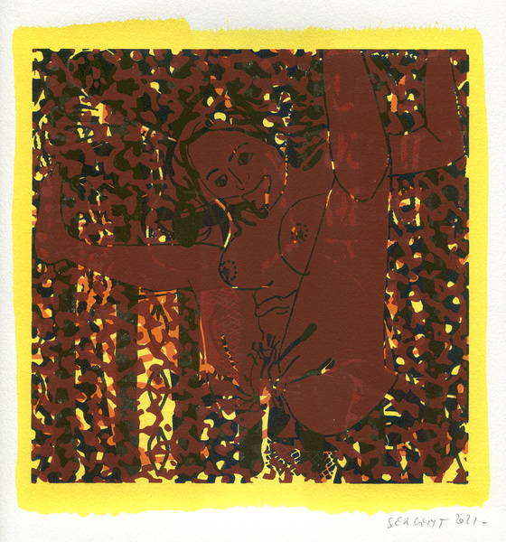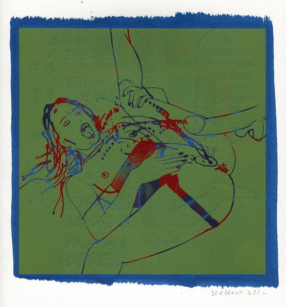 "Shakti-Yoni, Ecstatic Cosmic Dances", acrylic hand silk-screened and Indian ink on rives BFK paper 250g, unique print, 25,5 x 25,5 cm, 2021