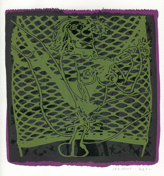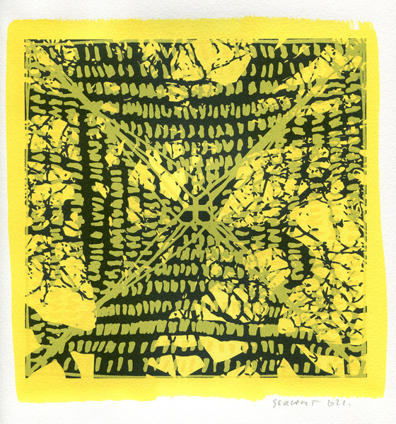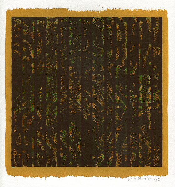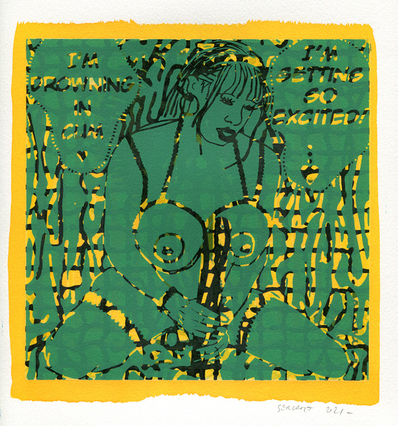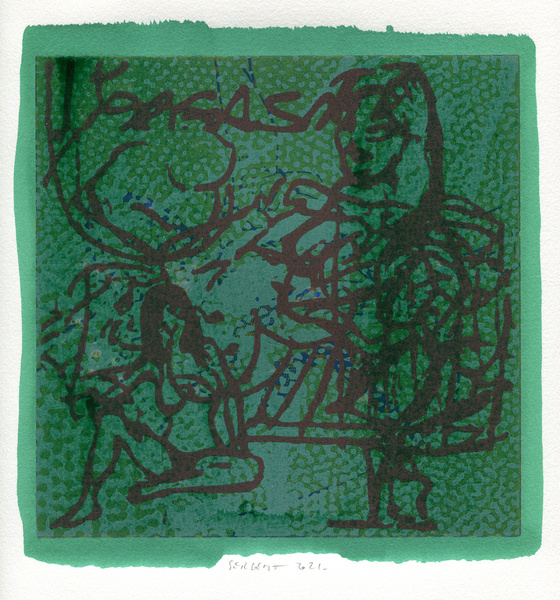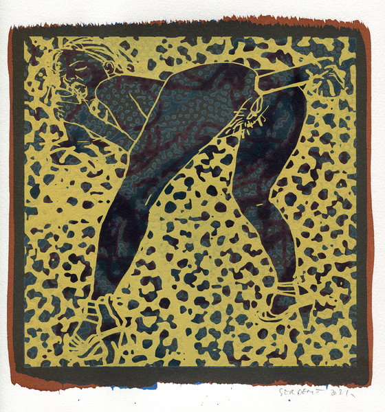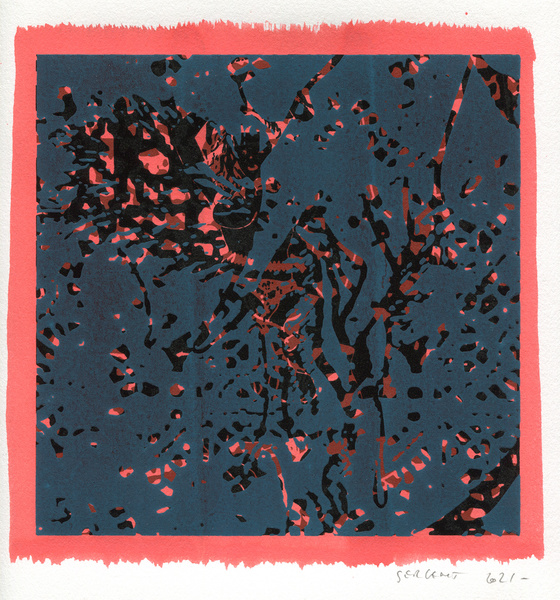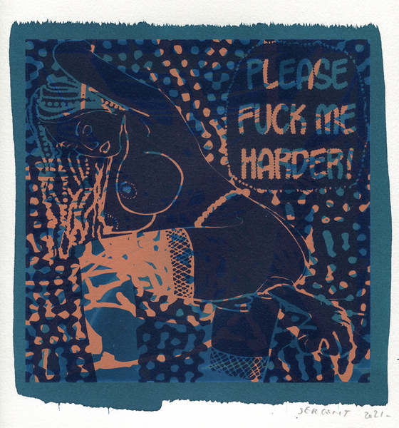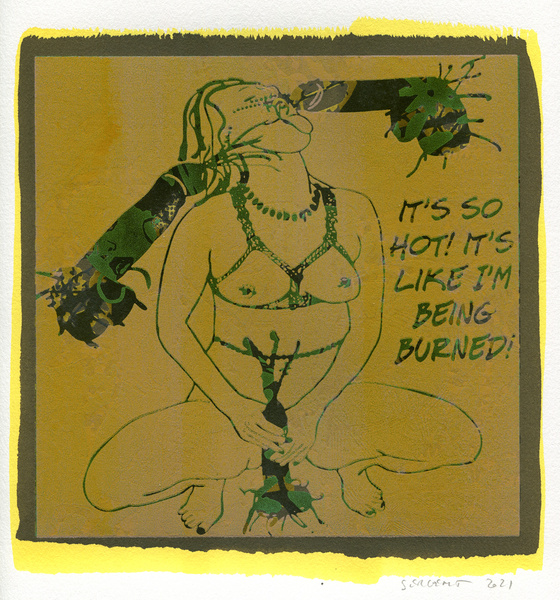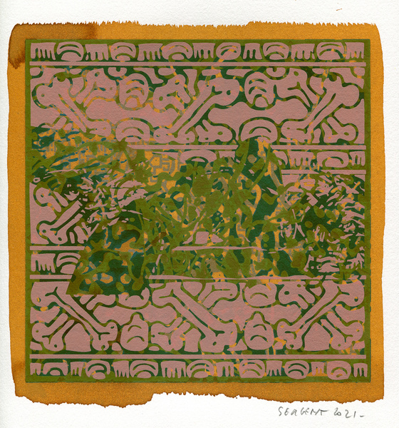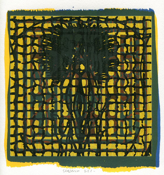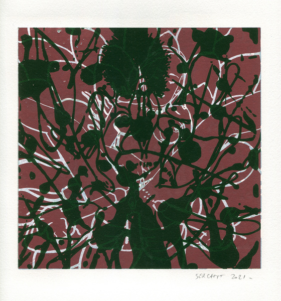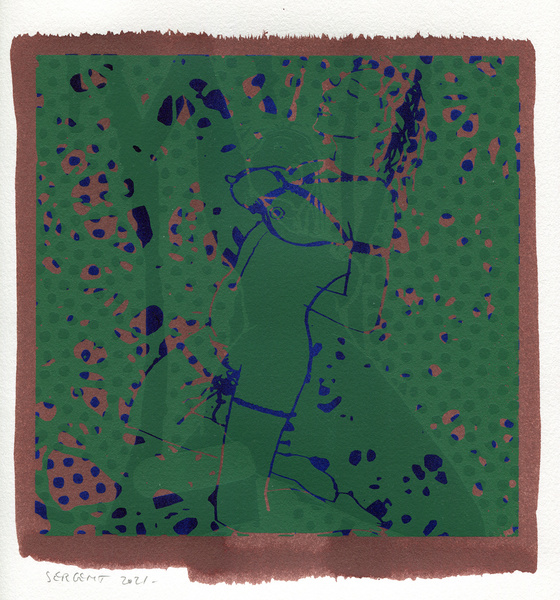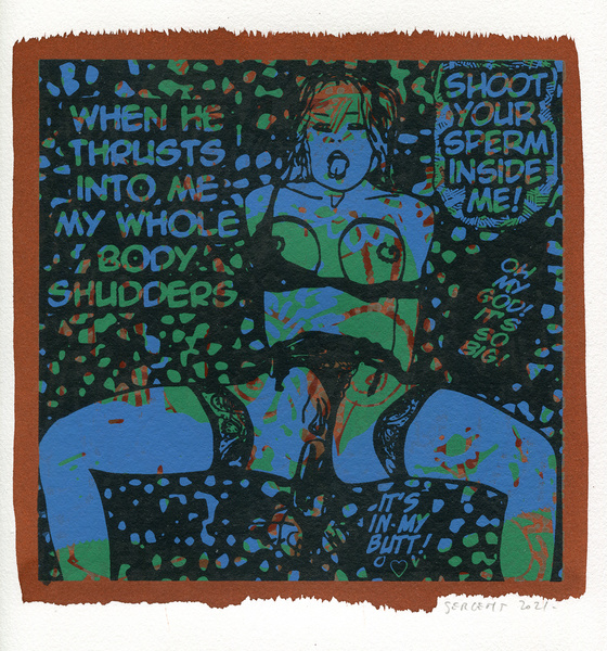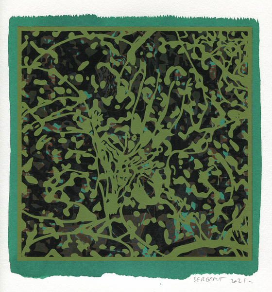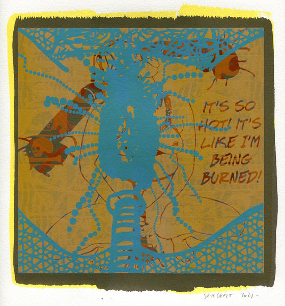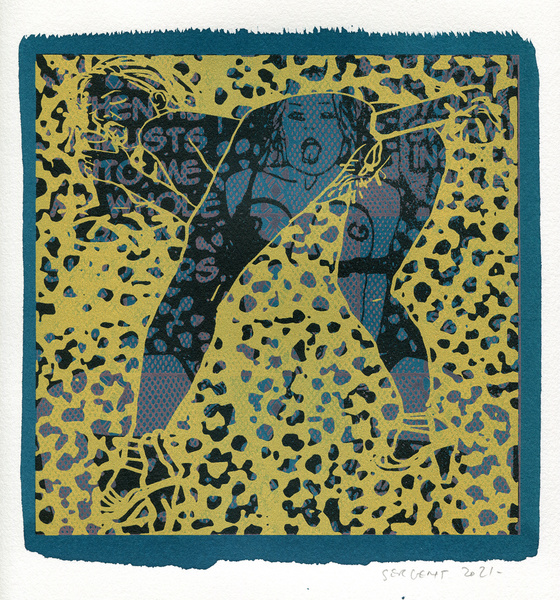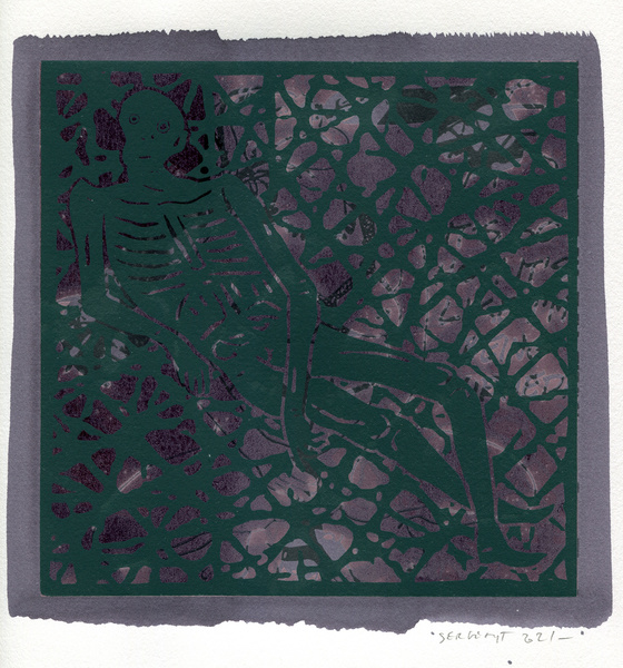 "Shakti-Yoni, Ecstatic Cosmic Dances", acrylic hand silk-screened and Indian ink on rives BFK paper 250g, unique print, 25,5 x 25,5 cm, 2021