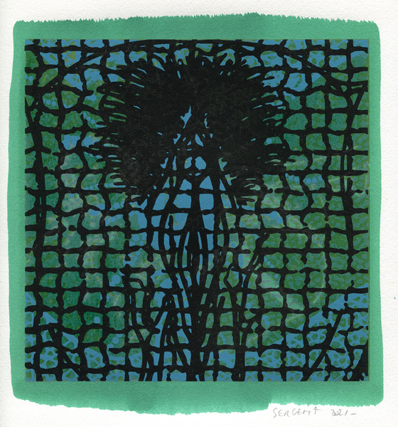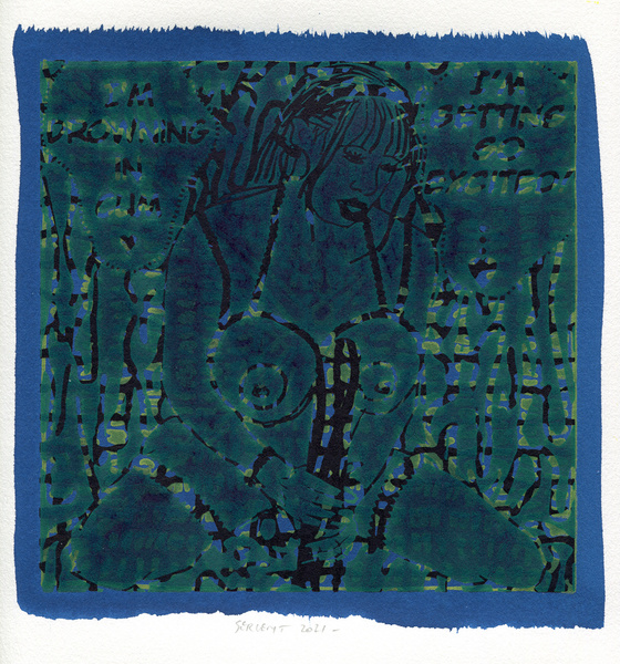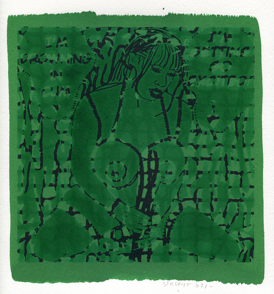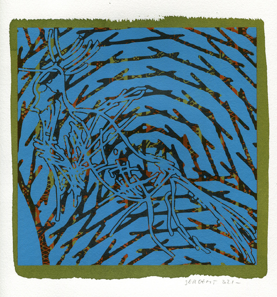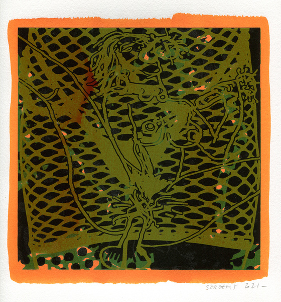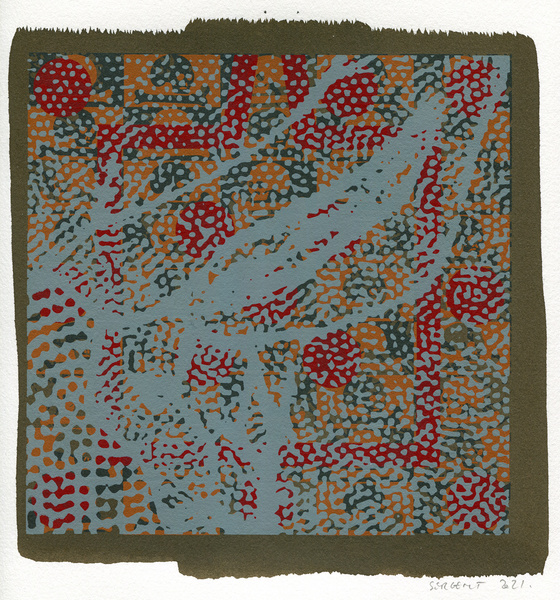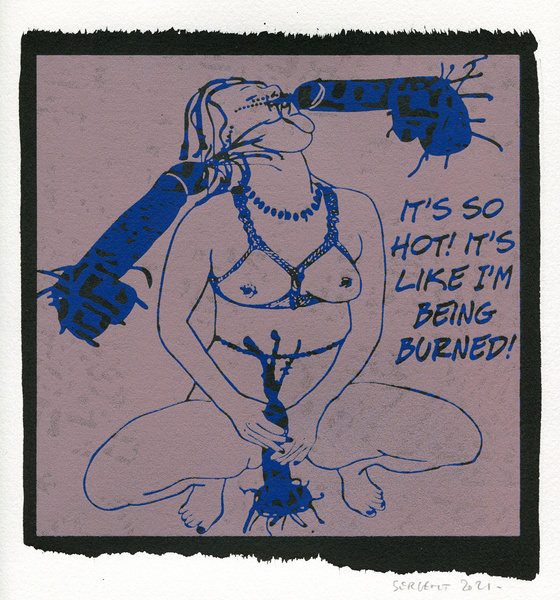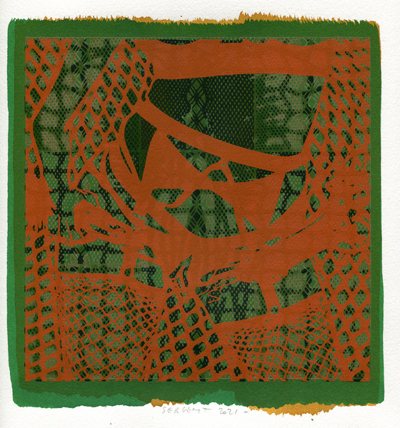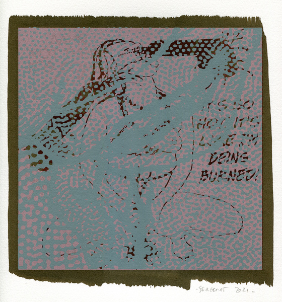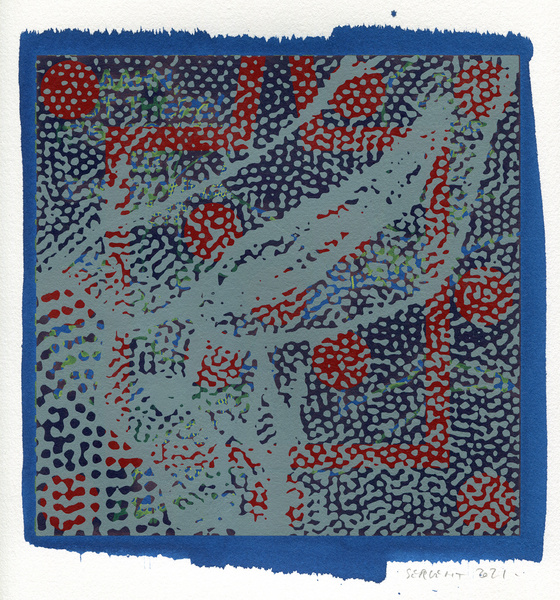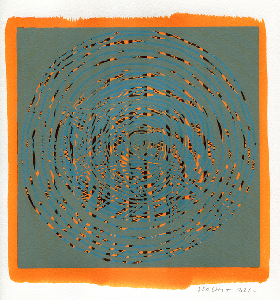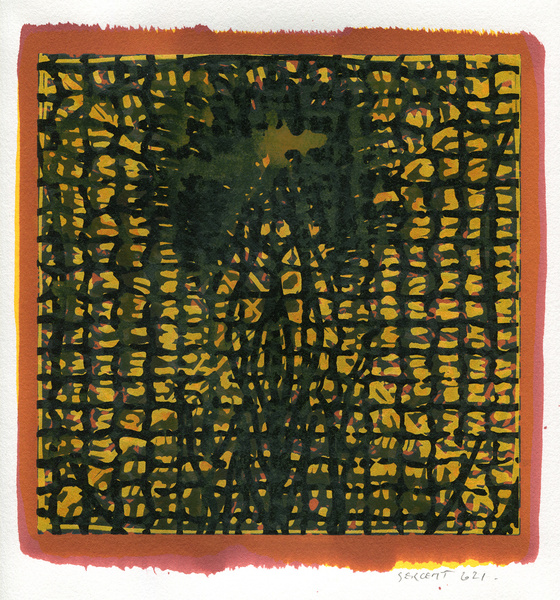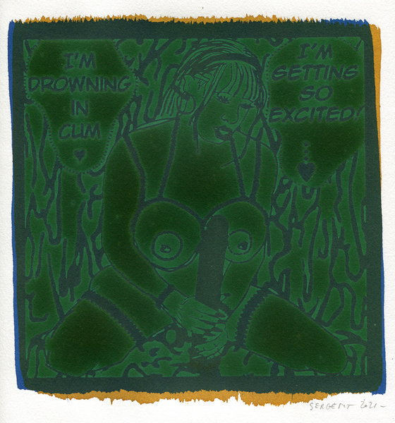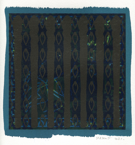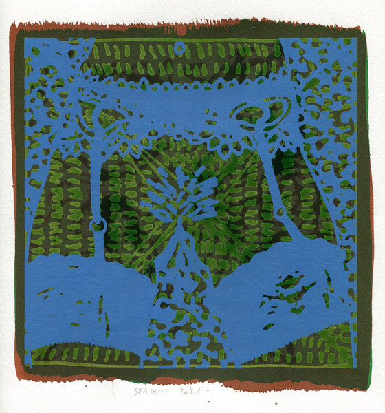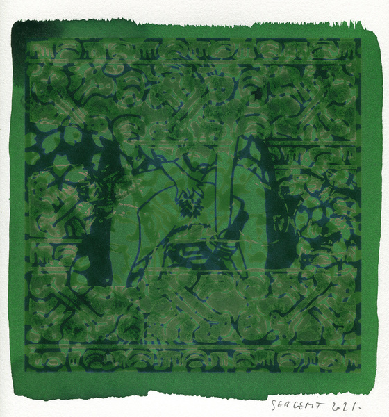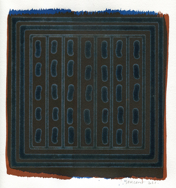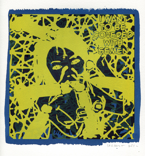 "Shakti-Yoni, Ecstatic Cosmic Dances", acrylic hand silk-screened and Indian ink on rives BFK paper 250g, unique print, 25,5 x 25,5 cm, 2021