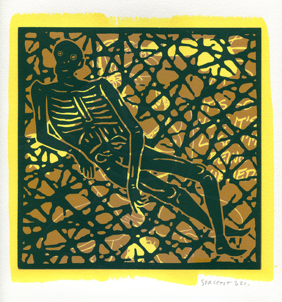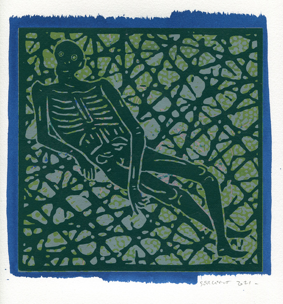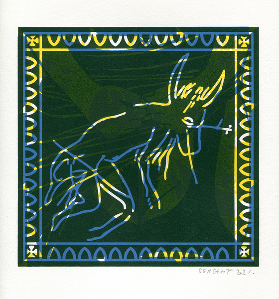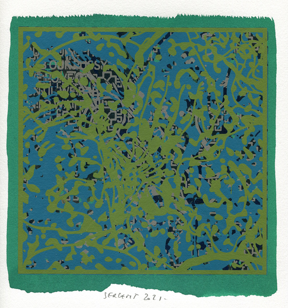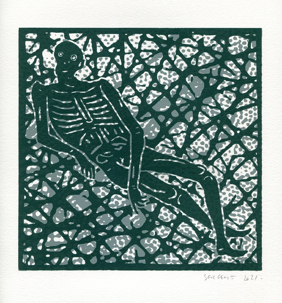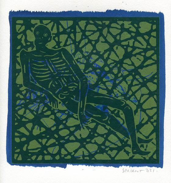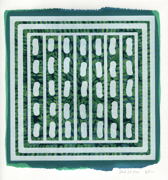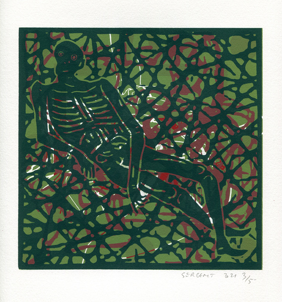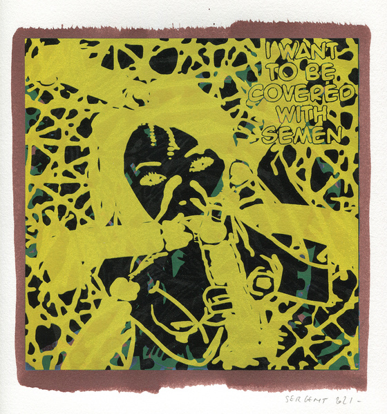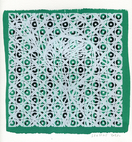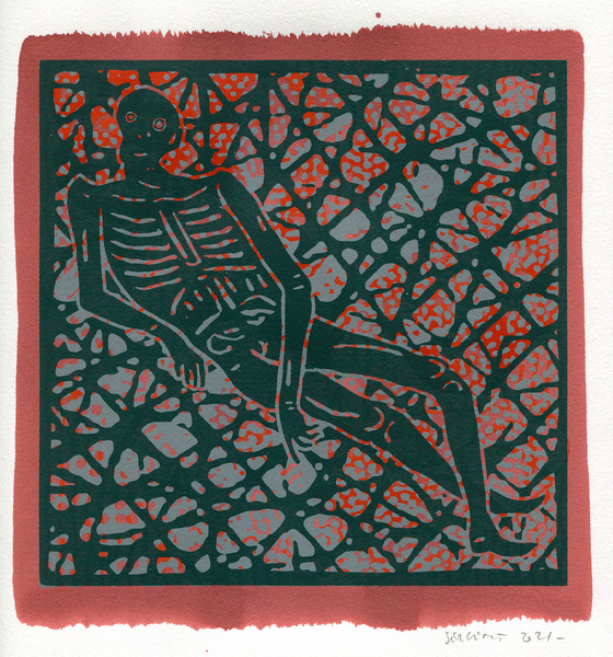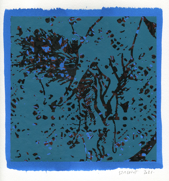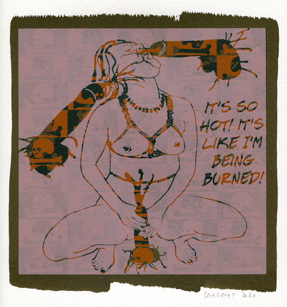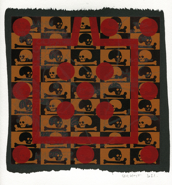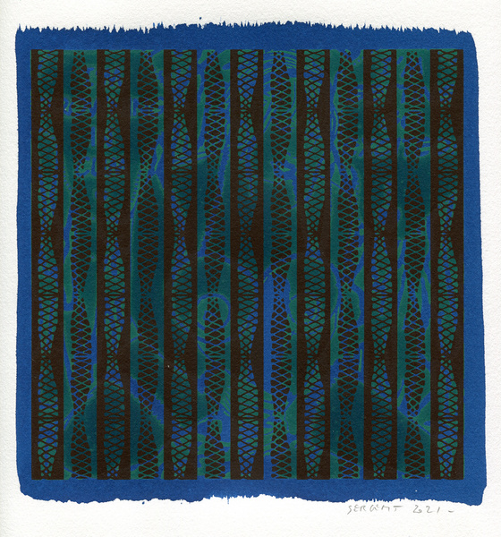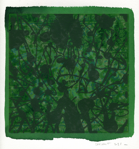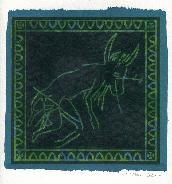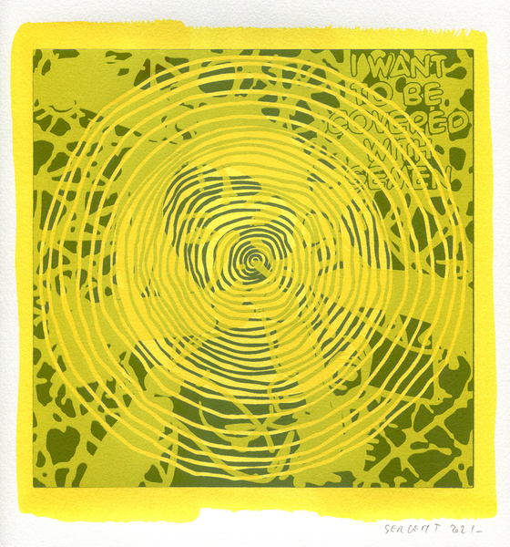 "Shakti-Yoni, Ecstatic Cosmic Dances", acrylic hand silk-screened and Indian ink on rives BFK paper 250g, unique print, 25,5 x 25,5 cm, 2021