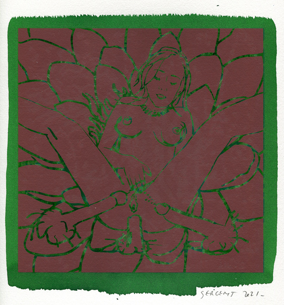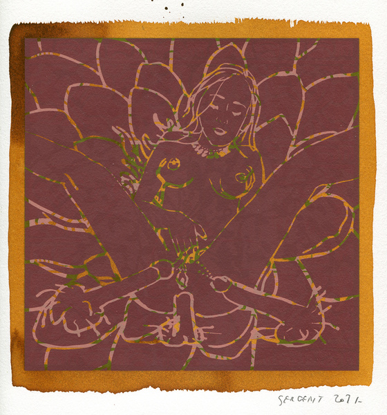 369 new art print of the Shakti-Yoni: Ecstatic Cosmic Dances series, begun in Autumn 2016 at the Besançon studio. It is printed mainly in unique prints and limited editions of 5, unframed size dimensions: 25,5 x 25,5 cm / 10''x10''.