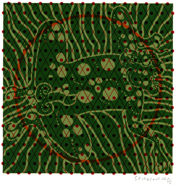 Silkscreen on B.F.K. white Rives BFK paper, 22"x15".