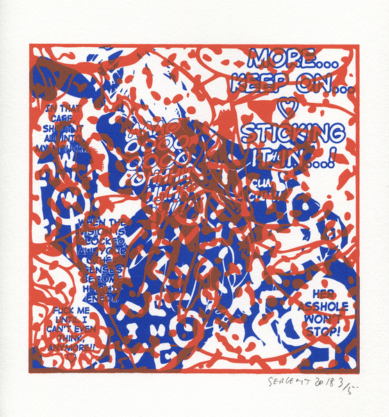 - #1 - #360: Unique prints, acrylic hand silk-screened and Indian ink on white B.F.K. Rives paper 250g - #361 - #483: Unique prints and limited editions of five, acrylic hand silk-screened on white B.F.K. Rives paper 250g.