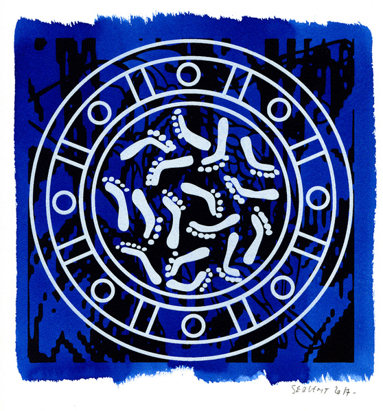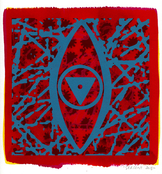 The série Shakti-Yoni: Ecstatic Cosmic Dances is a series begun in Autumn 2016 at the Besançon studio. It is printed mainly in unique prints and limited editions of 5, unframed size dimensions: 25,5 x 25,5 cm / 10''x10''.