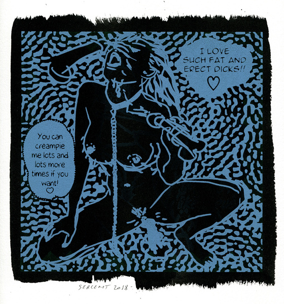 These bodies of women ecstatically dancing, like the exctatict dancing Dervishes Turners, are both fixed points here, and infinite there. They drag us with them in whirling and cosmic dimensions, creating in a true sense vortices of energies towards the possibilities of other lives, other pleasures, other experiences. Most of the pictures come from erotic videos of Oily Micro Bikini Dancing, in which young female Japanese strippers, with oil lubricated bodies, dance while masturbating to the rhythm of obsessive techno music (alienating, mindless, binary and repetitive), squirming sexually, in a primitive, barbaric, archaic, Dionysian ritual. They present to us, ostentatiously and spasmodically, their breasts with erect nipples, their genitals and all their orifices (mouths, anuses, and vaginas). Their Yonis, moist, gushing, obscene, and wet, with gaping lips ... symbols of the female sex, which in the same way in India are adorned, fed, and coated with butter, flowers, and various offerings and always pierced by the lingam*, Herculean cock rising towards the sky… Genitals open, offered, desiring… those female warriors are hoping for a man’s cock and his cum, in such an exciting and regenerating homage danced as in Stravinsky’s Sacre du printemps, but, in this never-ending and eternal dance, there is no need to wait for the Seasons to come back in order to revive their humongous desires…! Hoping all the same, transcendent, orgiastic, animalistic, and tantric sexual love. During these trance-dances, they develop a hyper-feminine and hyper-sexual excitement, such as that of the energizing, enveloping, destructive, extraterrestrial, super-powerful, and oversized energy of the Female Shakti’s energy of desires; vibrations of full-body orgasmic waves, like burning fires of gushing love. Breasts and Yonis offered, open like endless wells where one would lose oneself to extinguish one's ego and insatiable desire, in an alienating and liberating spiral, hoping for these spiritual journeys, entwined with the Divine light, the All, the One. The same ones that follow the soul of the dead in the Buddhist Bardos in different worlds of the afterlife... Jerky movements, pulsing rhythmically, or arhythmically, in a despairing contemporary pornographic solitude, which still bring us back sometimes to the origin of being, primary energy, the first cries of the child brought into the world or the first orgasm. In the same way that the Water, the Sea, the Ocean, and the Universe, encompass, submerge, and nourish us like the orphans we are all today, since the Spirits and the Gods are dead; killed by those other than us! But the artist remains optimistic and he tirelessly pays tribute to the dance ... to Nature ... to the color ... and to the feminine energy of the Shakti-Yoni force...!