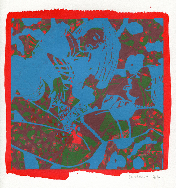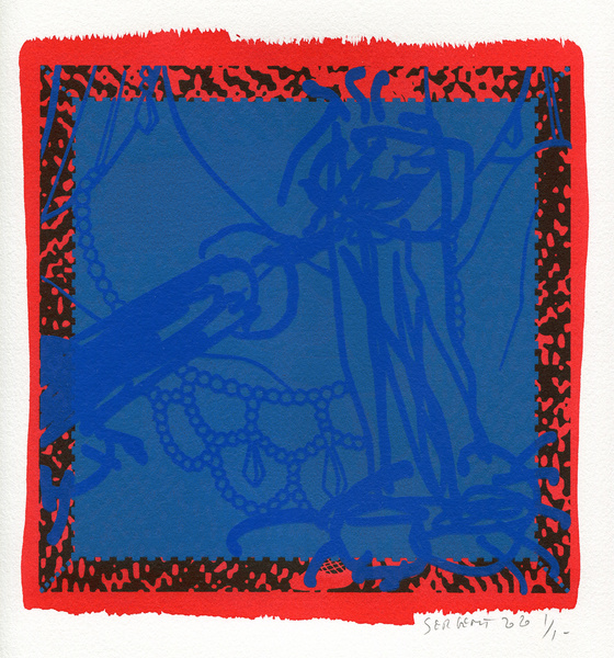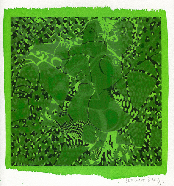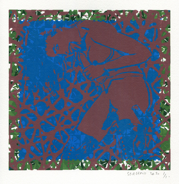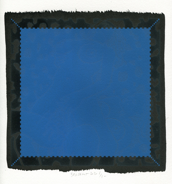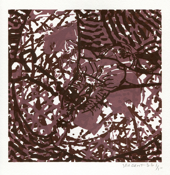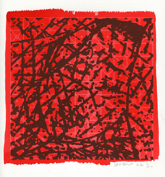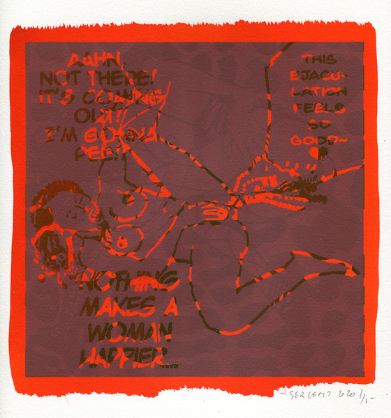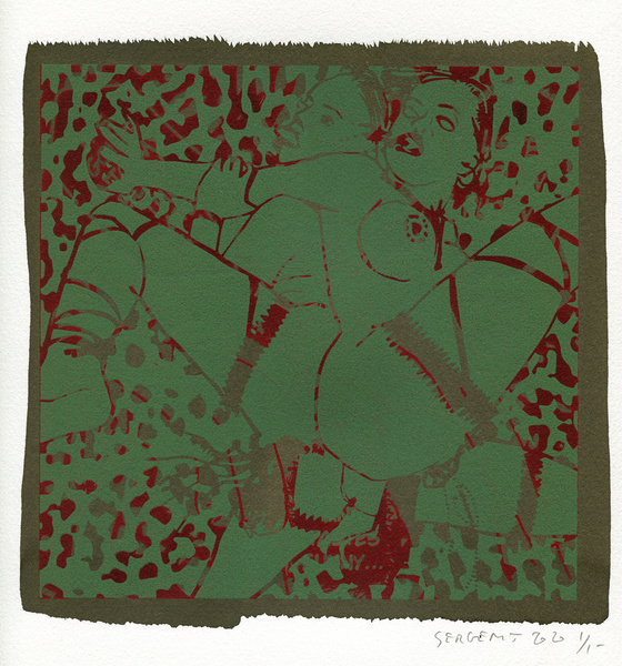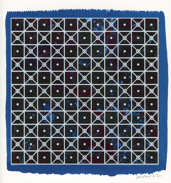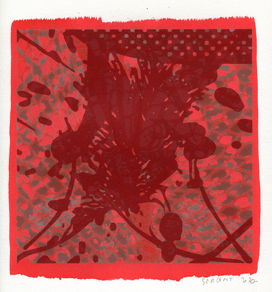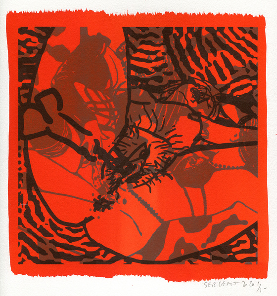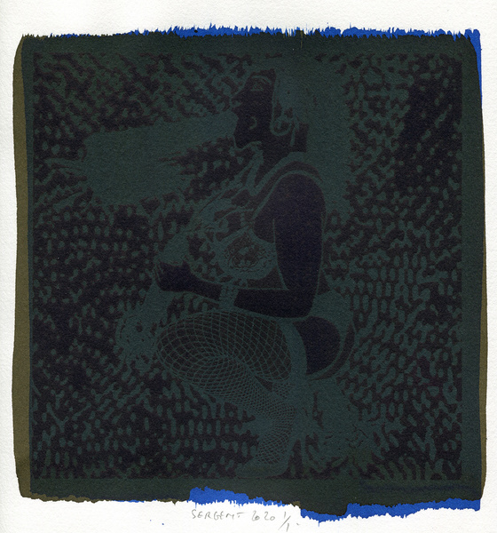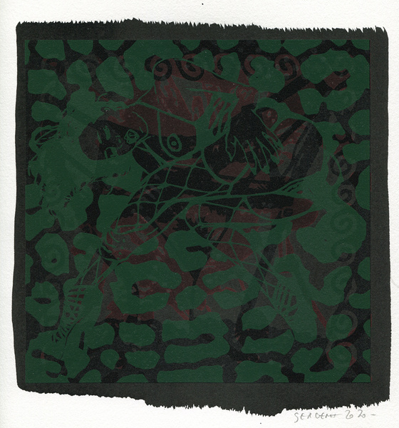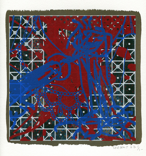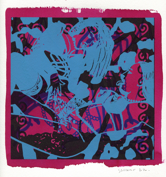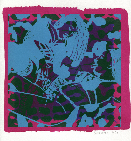 Jean-Pierre Sergent, Shakti-Yoni: Ecstatic Cosmic Dances | 2020 | acrylic hand silk-screened and Indian ink on white B.F.K. Rives paper 250g, unframed : 25,5 x 25,5 cm / 10''x10''.