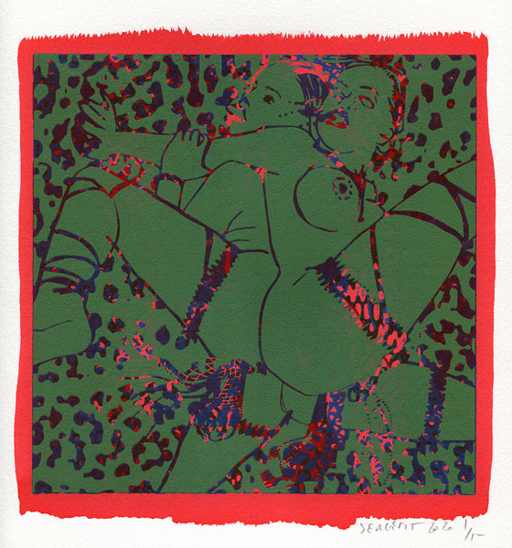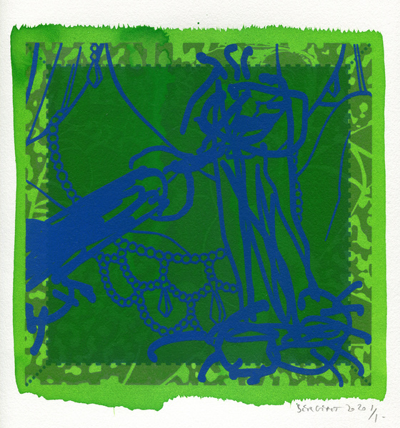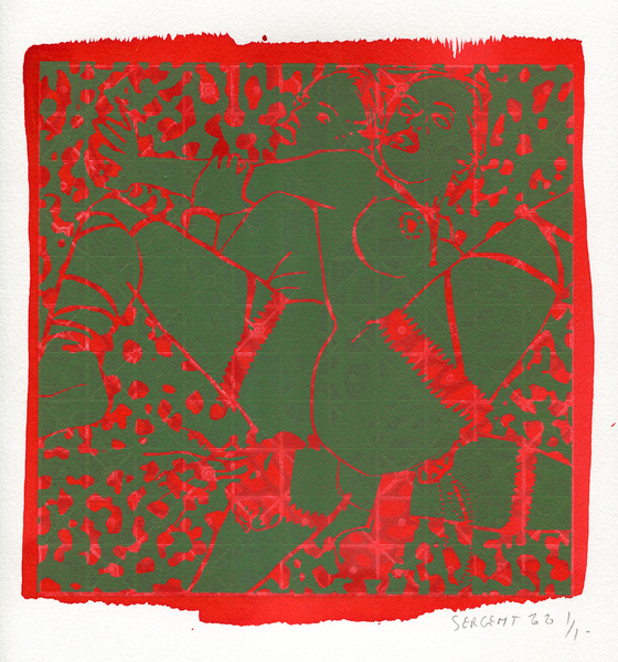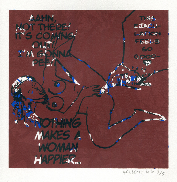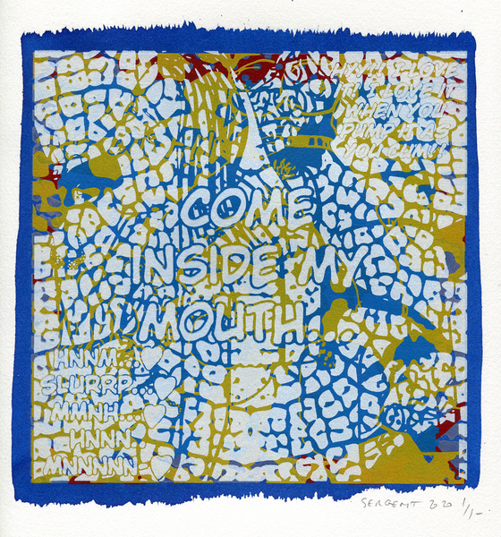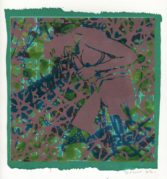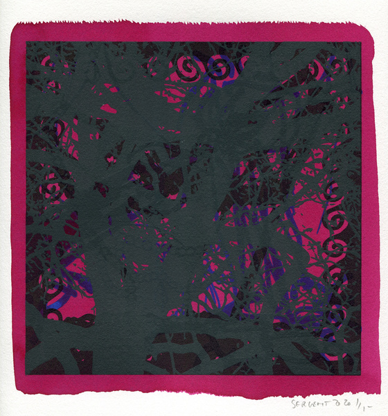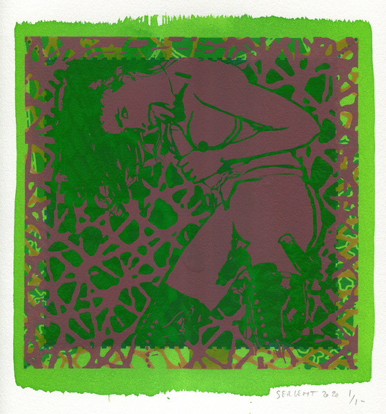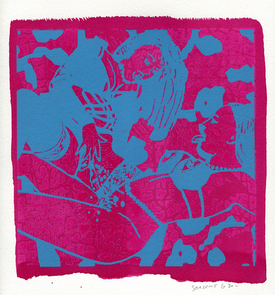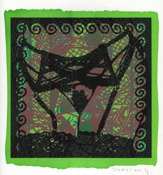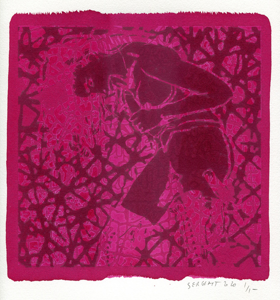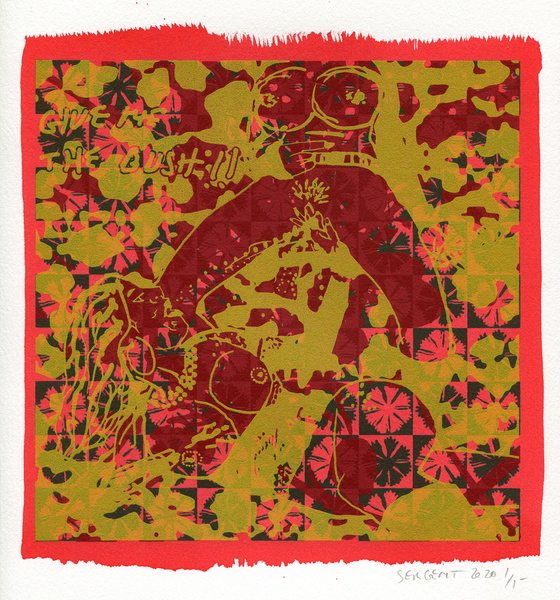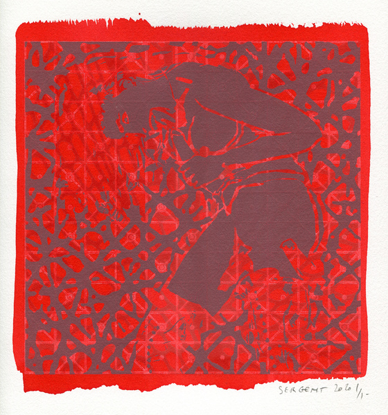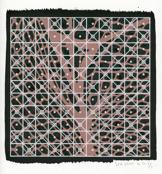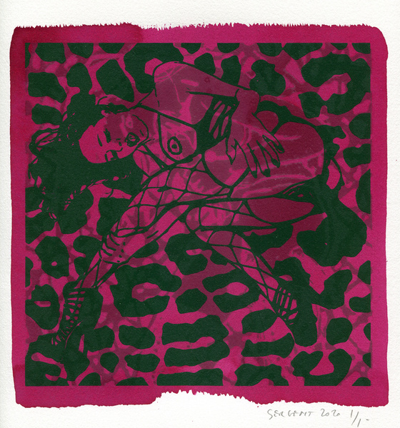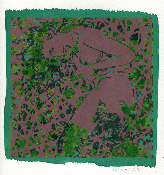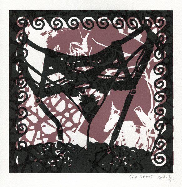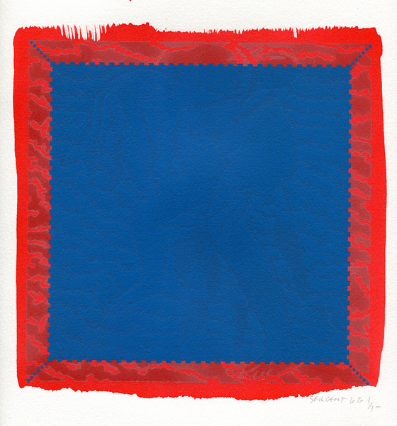Jean-Pierre Sergent, Shakti-Yoni: Ecstatic Cosmic Dances | 2020 | acrylic hand silk-screened and Indian ink on white B.F.K. Rives paper 250g, unframed : 25,5 x 25,5 cm / 10''x10''.