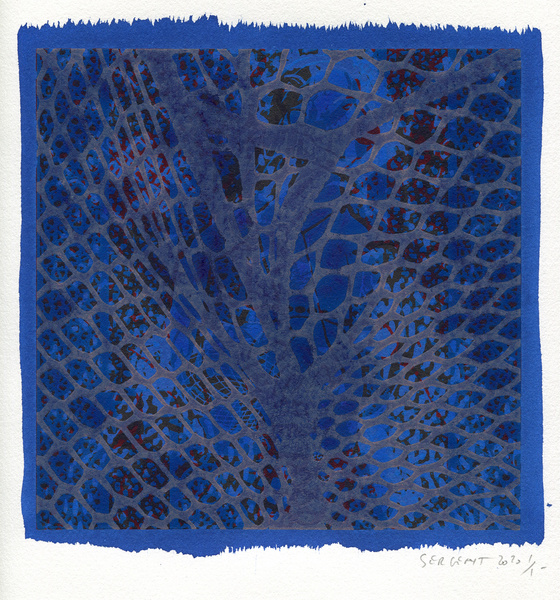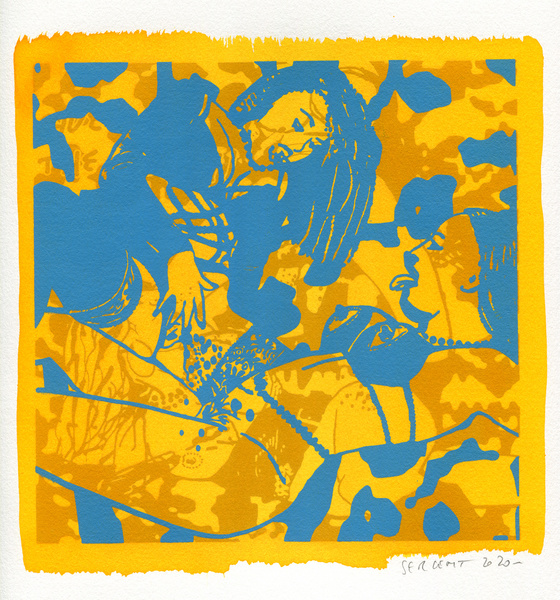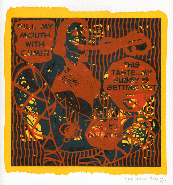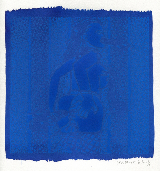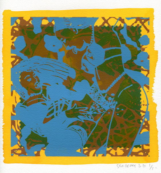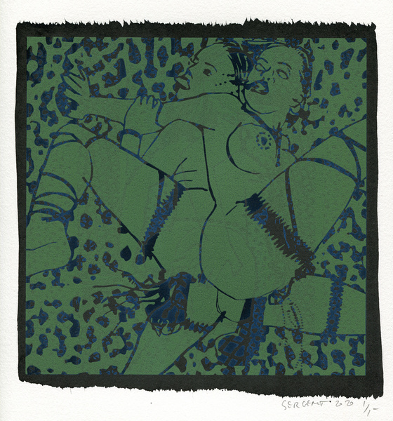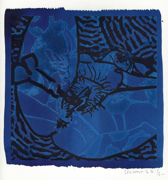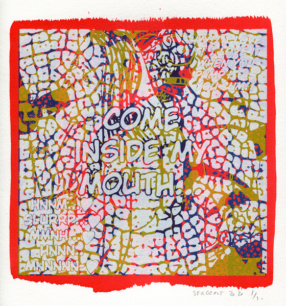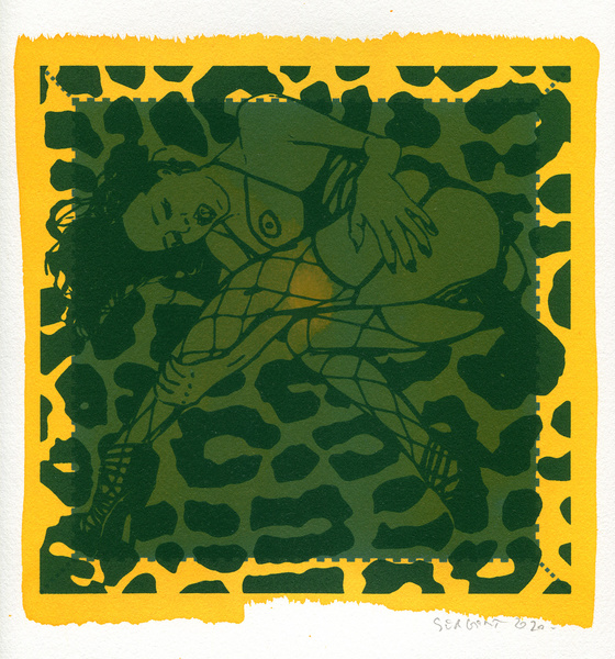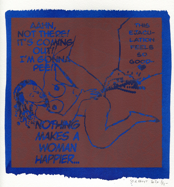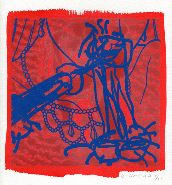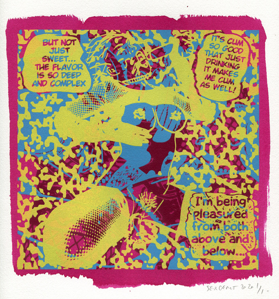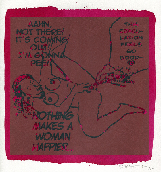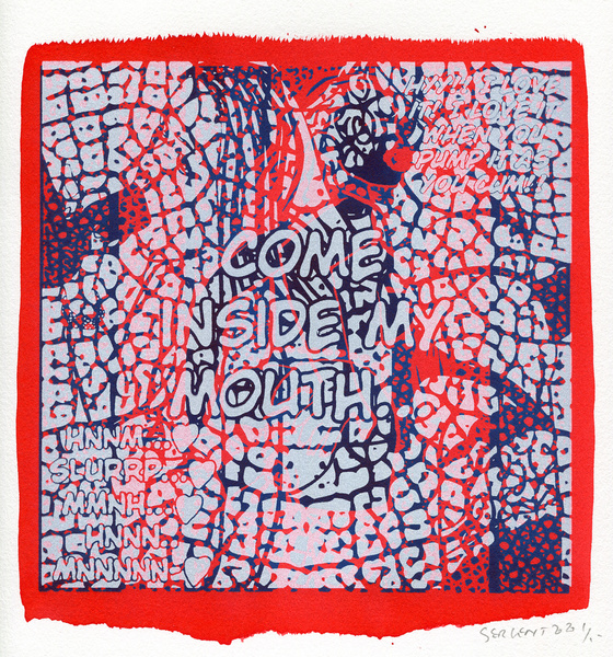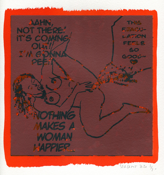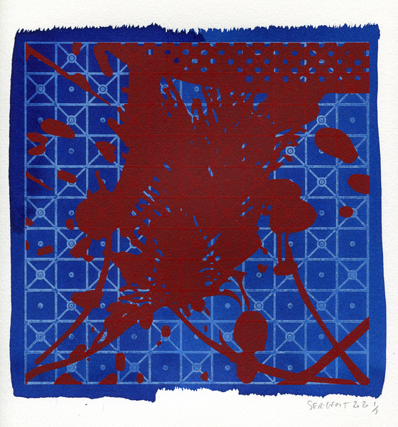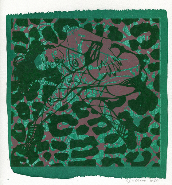 Jean-Pierre Sergent, Shakti-Yoni: Ecstatic Cosmic Dances | 2020 | acrylic hand silk-screened and Indian ink on white B.F.K. Rives paper 250g, unframed : 25,5 x 25,5 cm / 10''x10''.