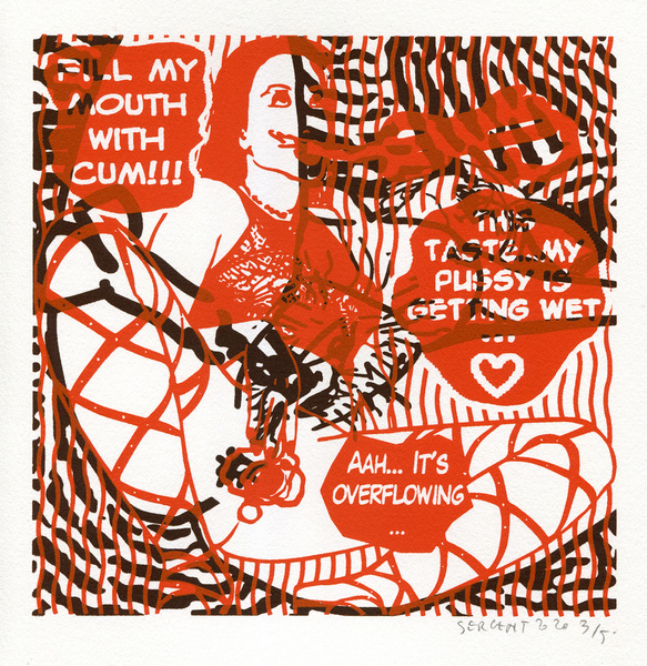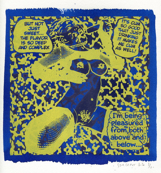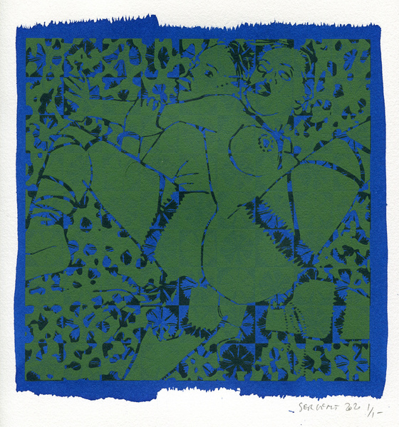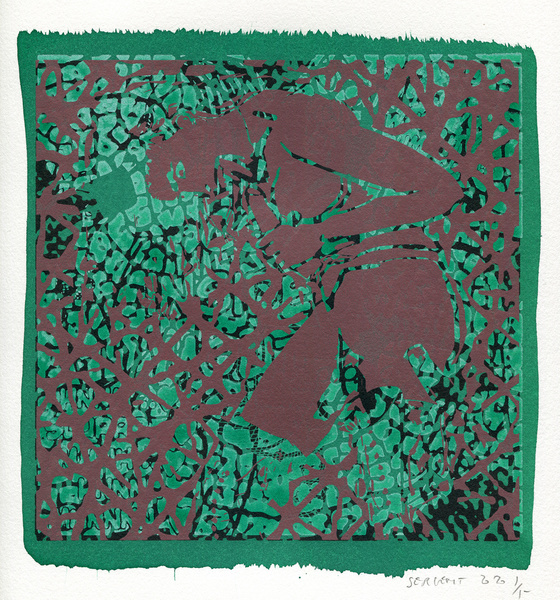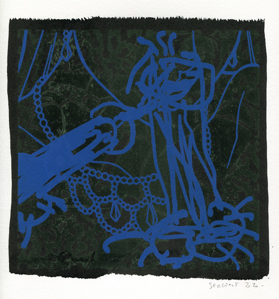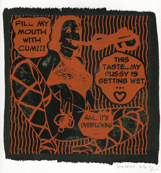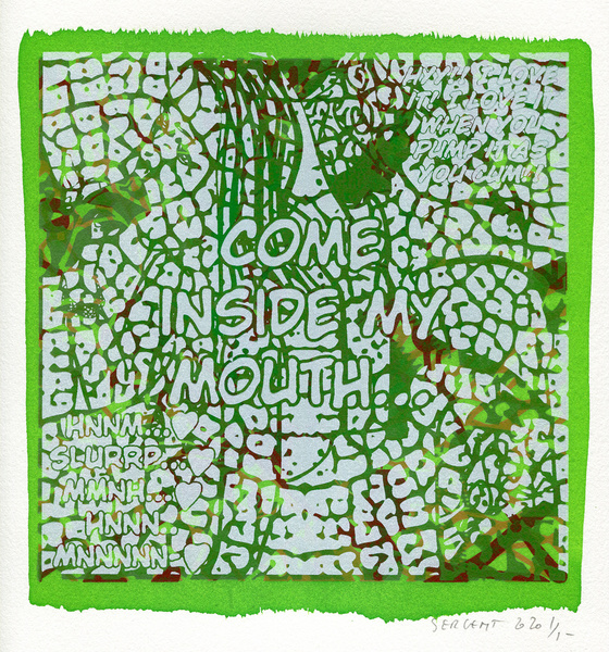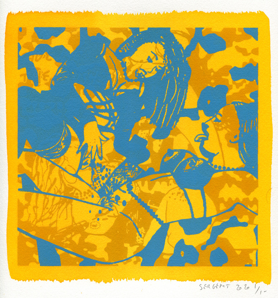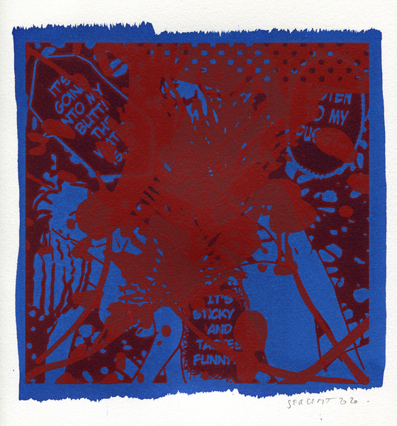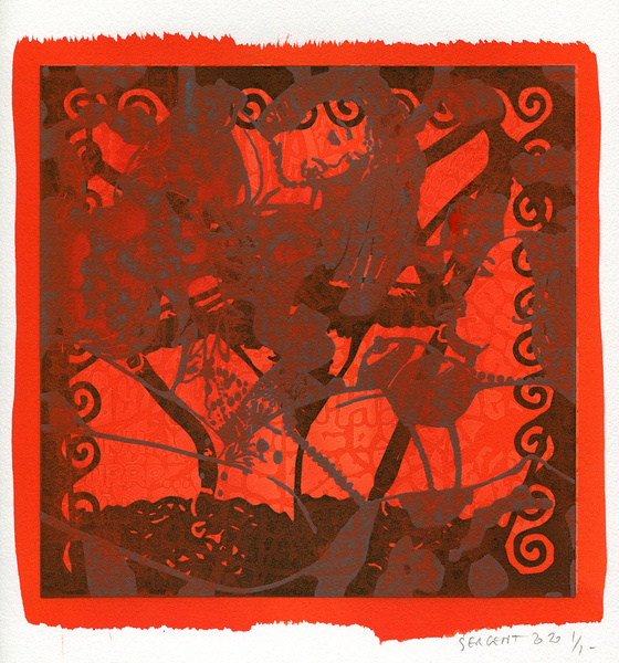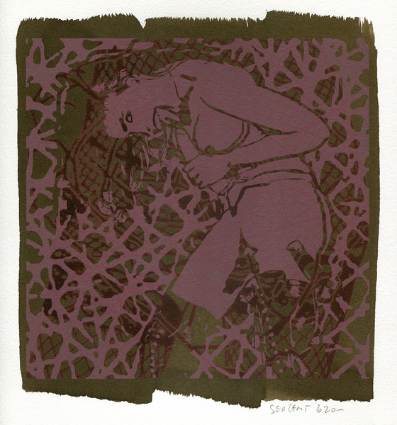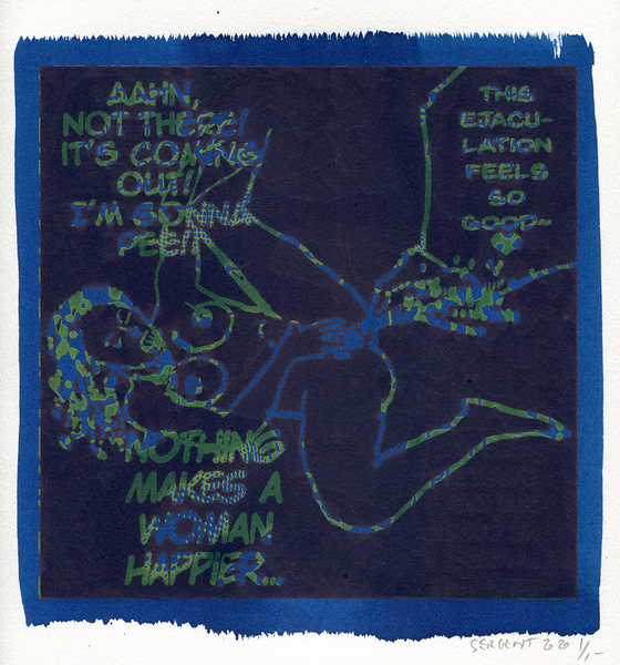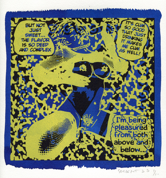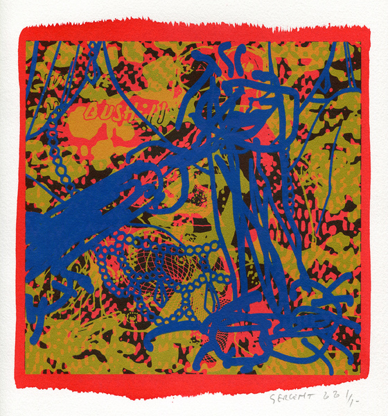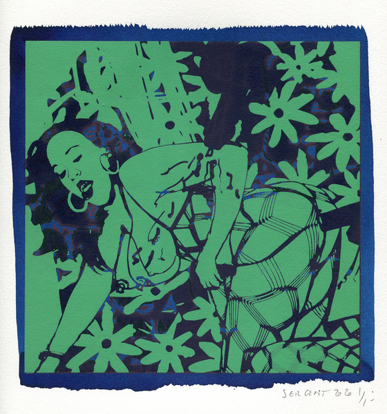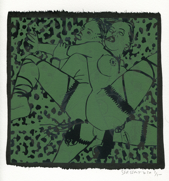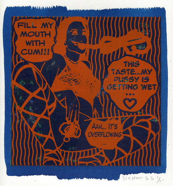 Jean-Pierre Sergent, Shakti-Yoni: Ecstatic Cosmic Dances | 2020 | acrylic hand silk-screened and Indian ink on white B.F.K. Rives paper 250g, unframed : 25,5 x 25,5 cm / 10''x10''.