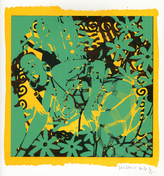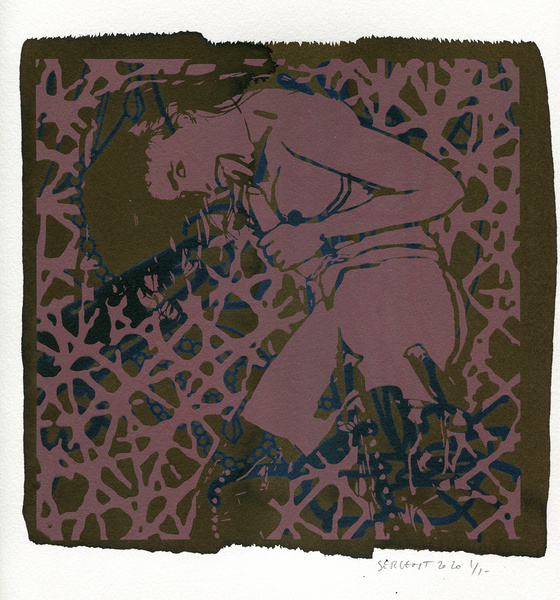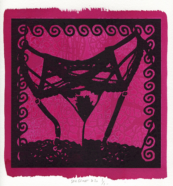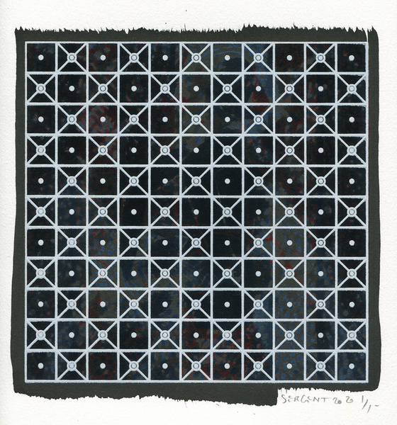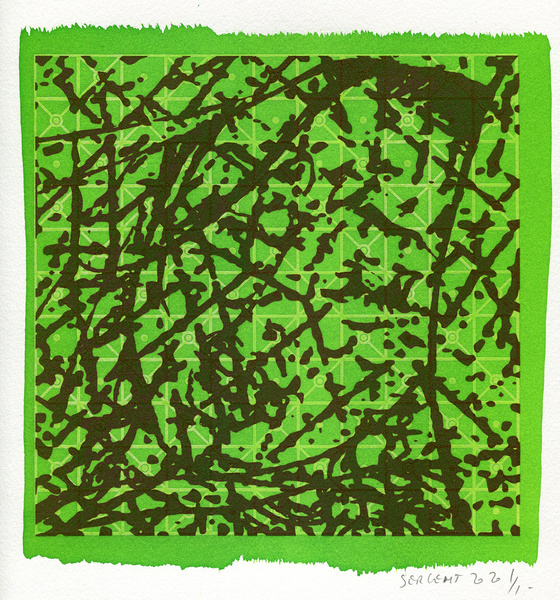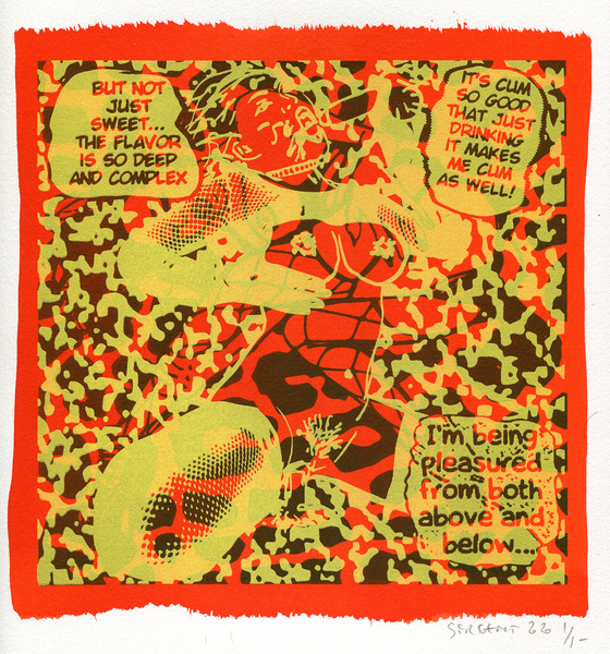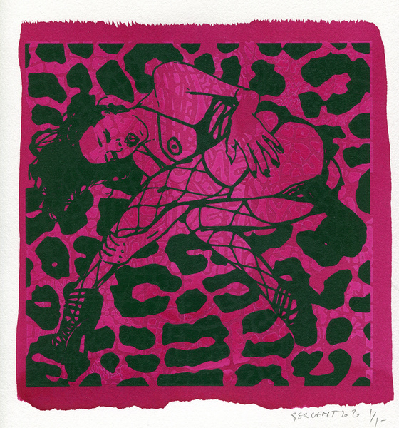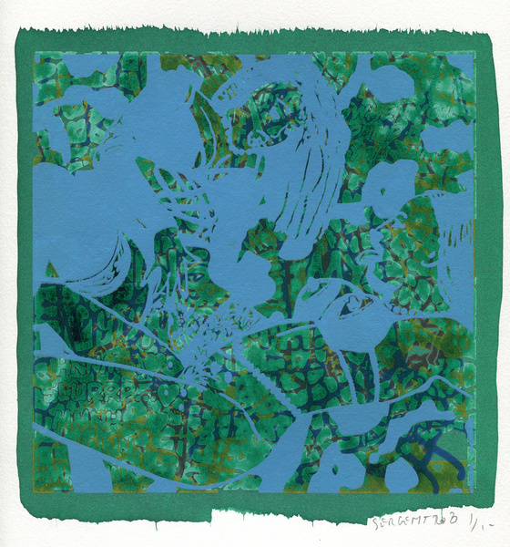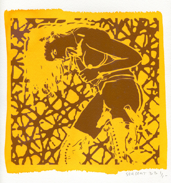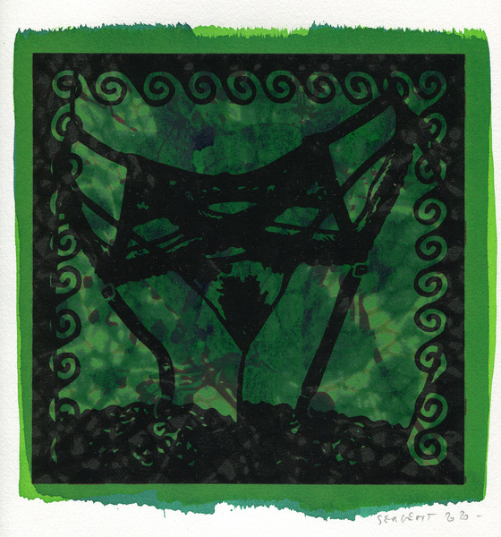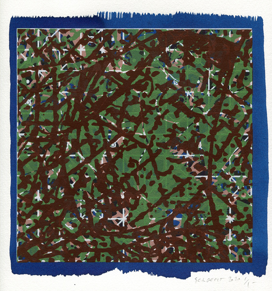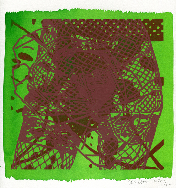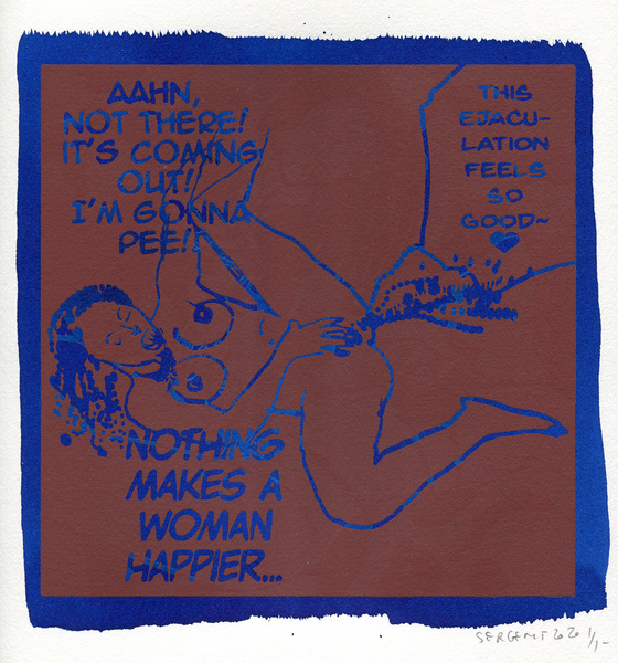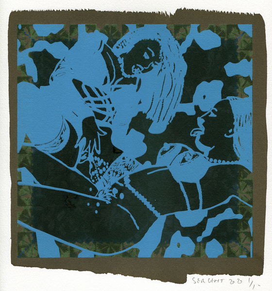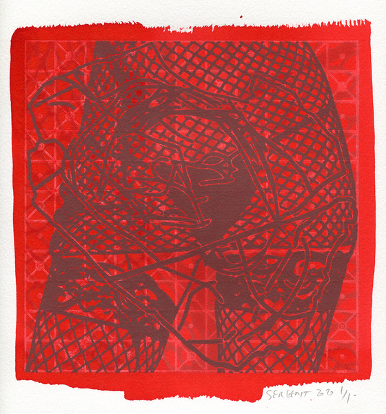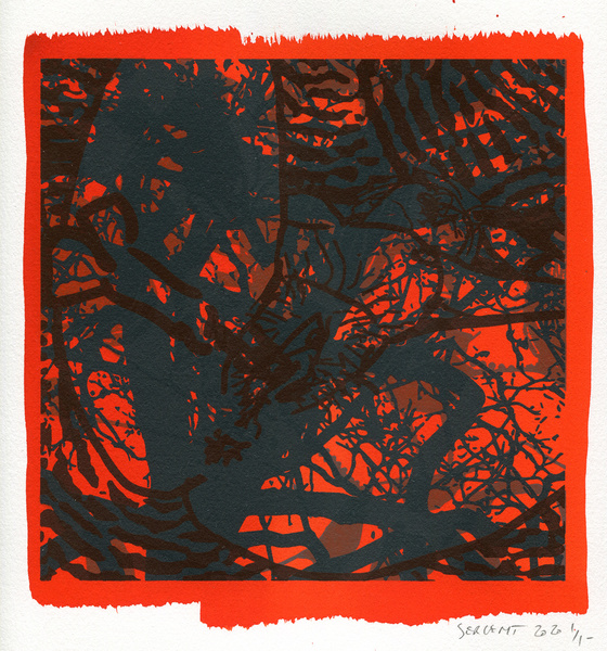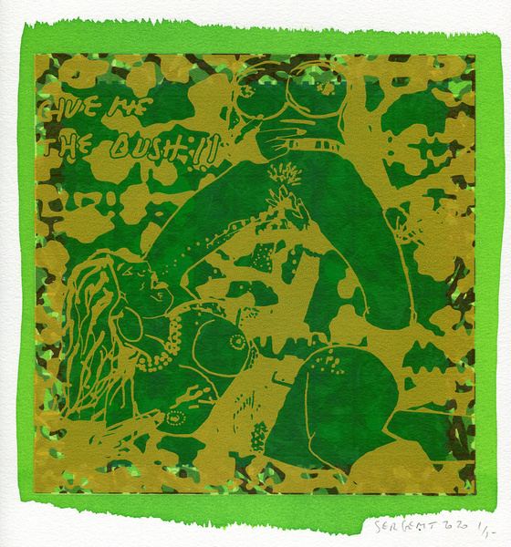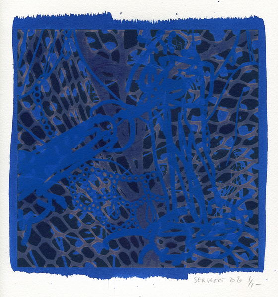 Jean-Pierre Sergent, Shakti-Yoni: Ecstatic Cosmic Dances | 2020 | acrylic hand silk-screened and Indian ink on white B.F.K. Rives paper 250g, unframed : 25,5 x 25,5 cm / 10''x10''.
