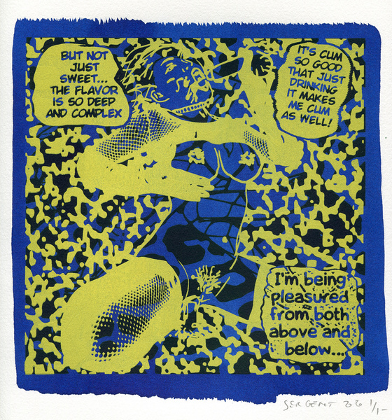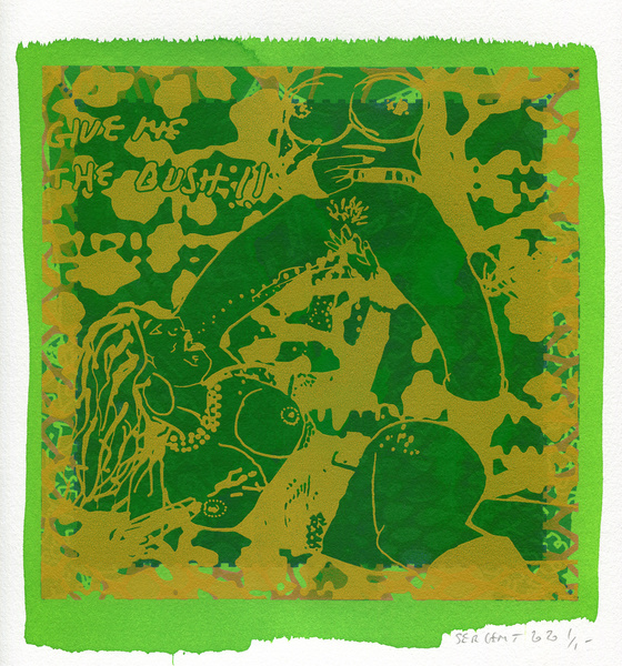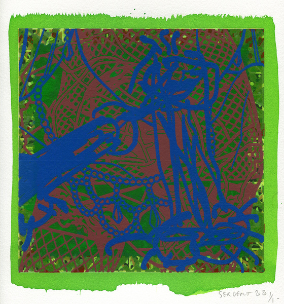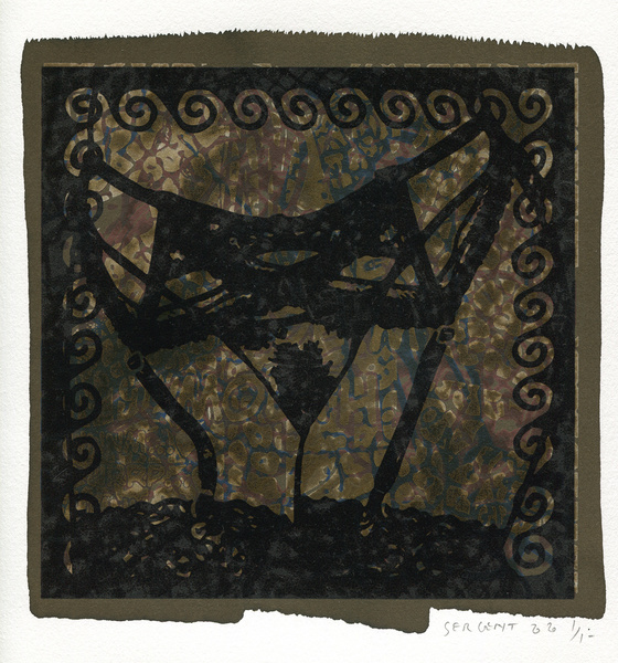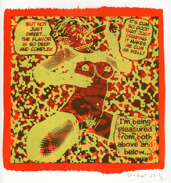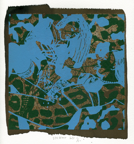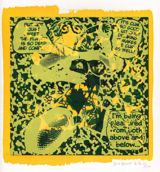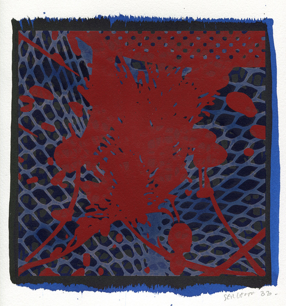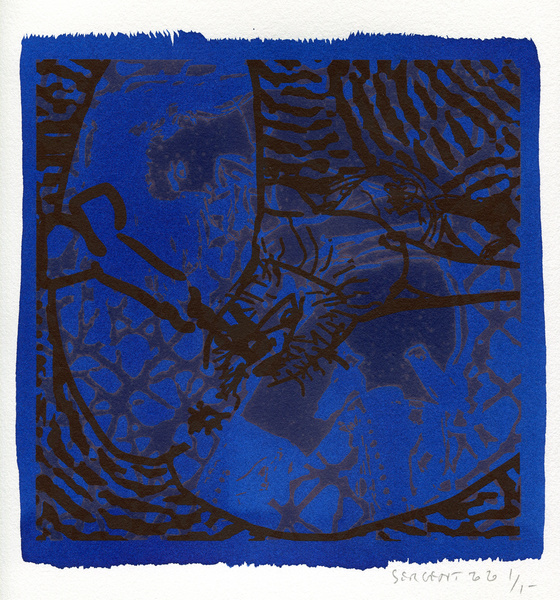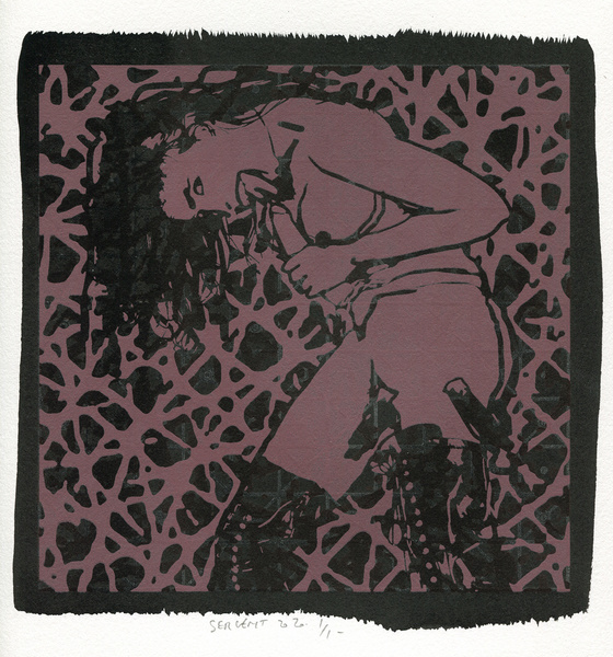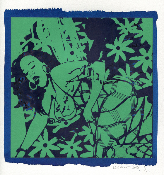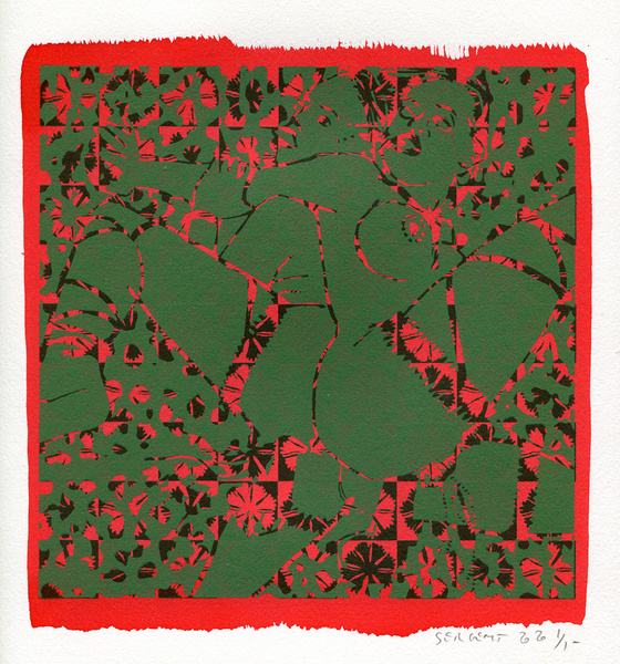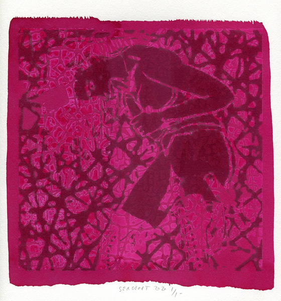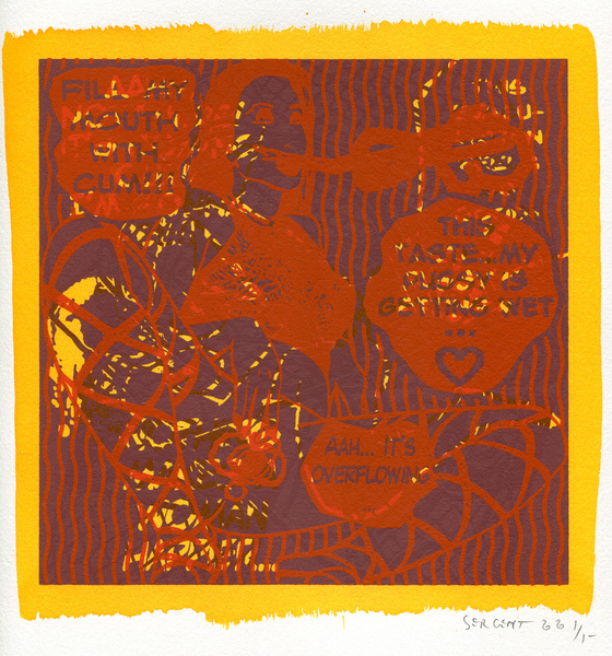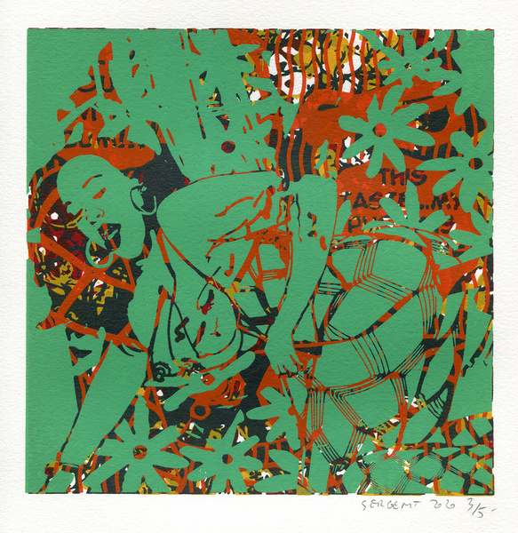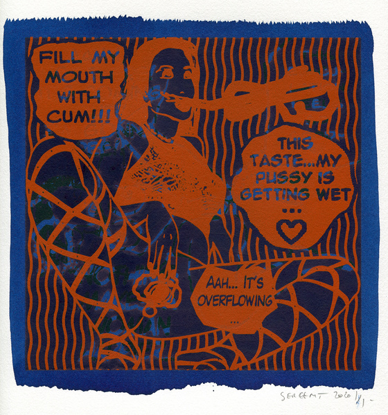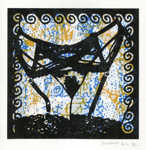 Jean-Pierre Sergent, Shakti-Yoni: Ecstatic Cosmic Dances | 2020 | acrylic hand silk-screened and Indian ink on white B.F.K. Rives paper 250g, unframed : 25,5 x 25,5 cm / 10''x10''.