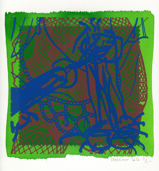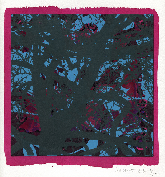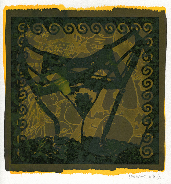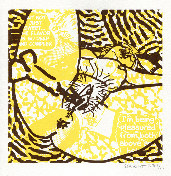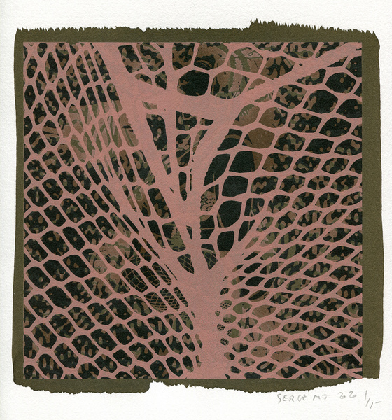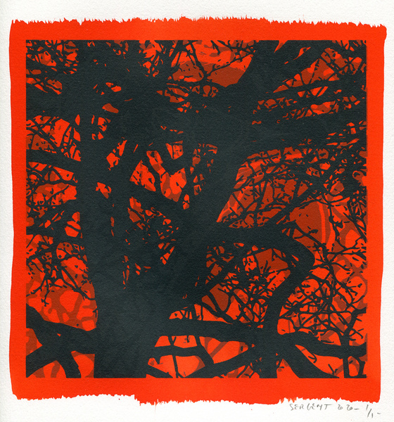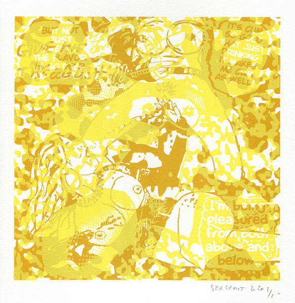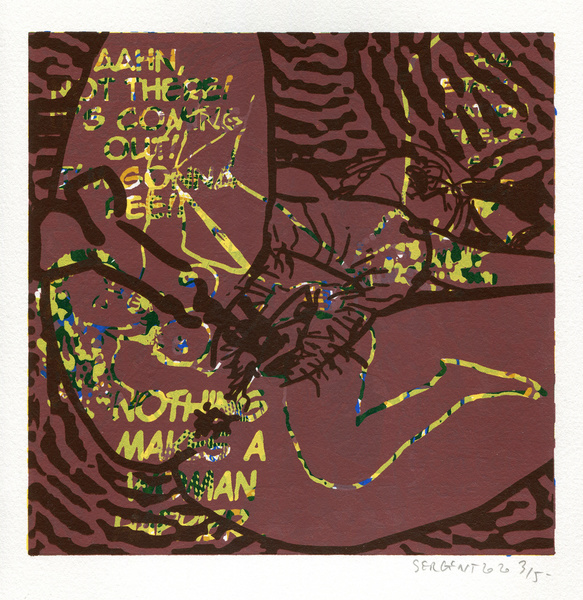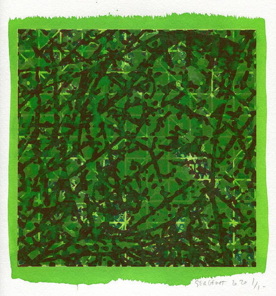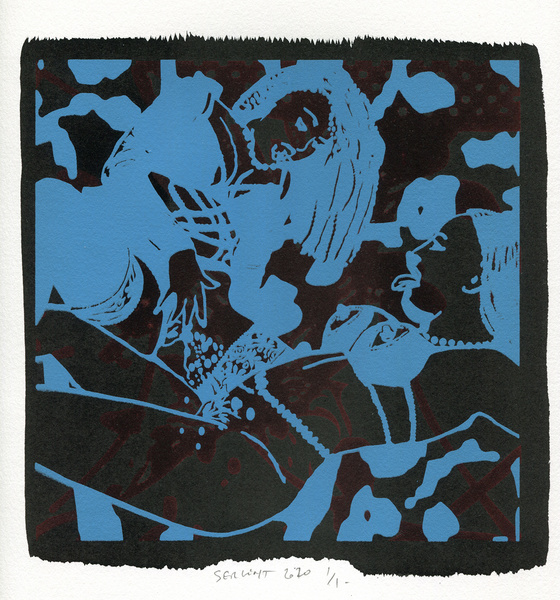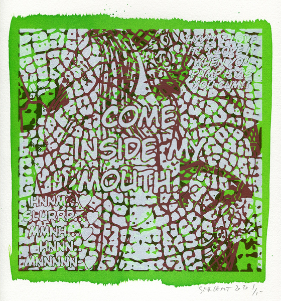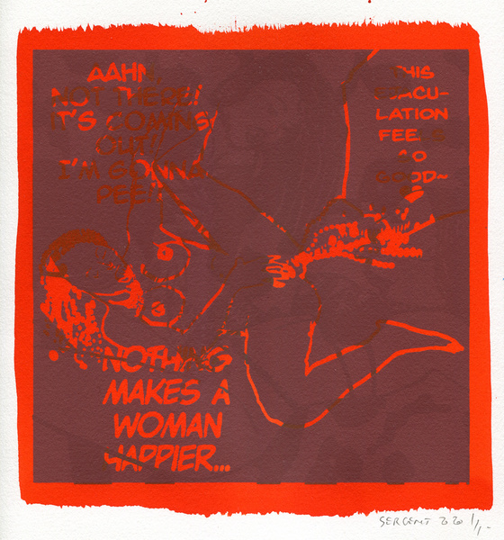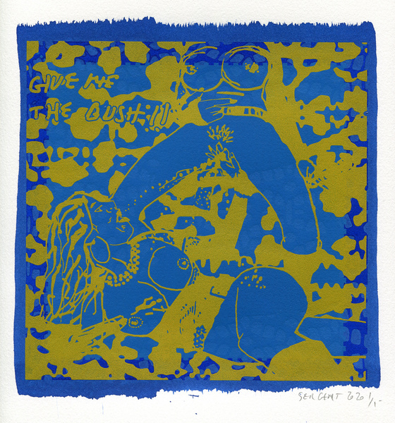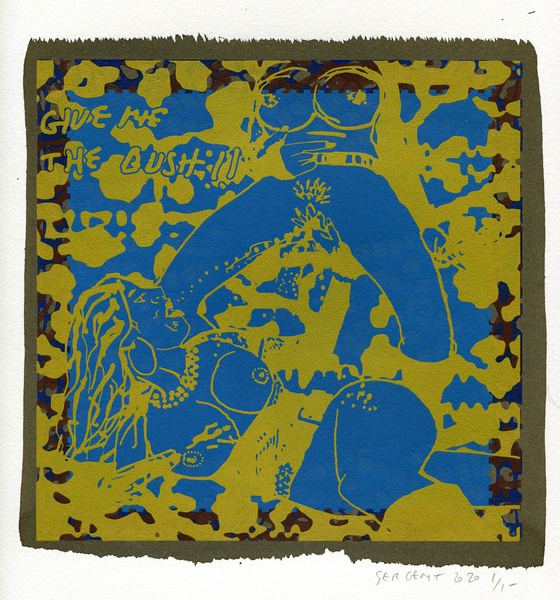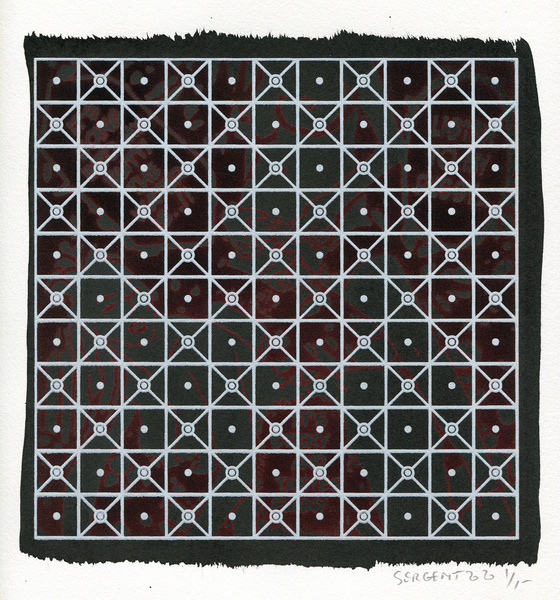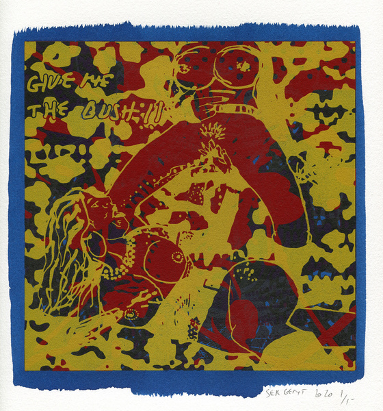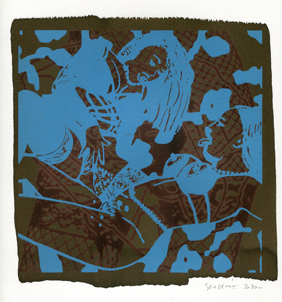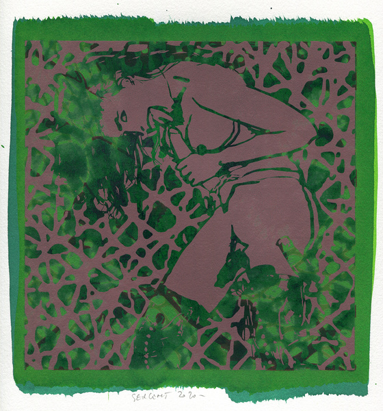 Jean-Pierre Sergent, Shakti-Yoni: Ecstatic Cosmic Dances | 2020 | acrylic hand silk-screened and Indian ink on white B.F.K. Rives paper 250g, unframed : 25,5 x 25,5 cm / 10''x10''.