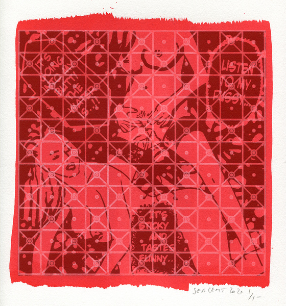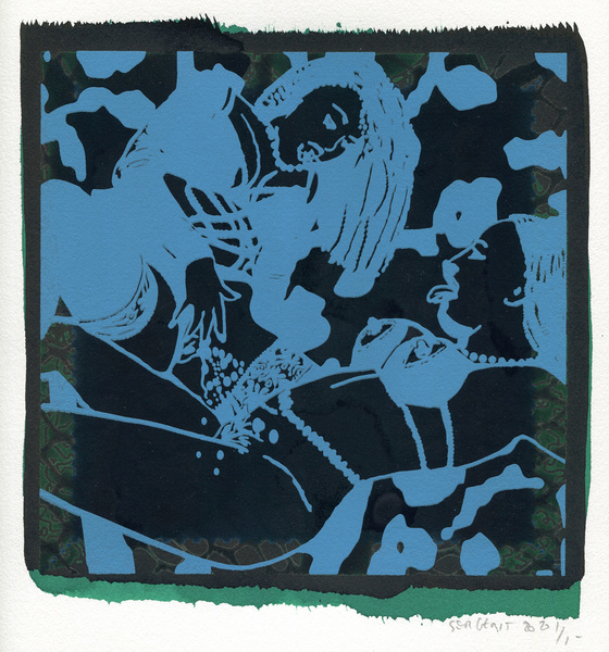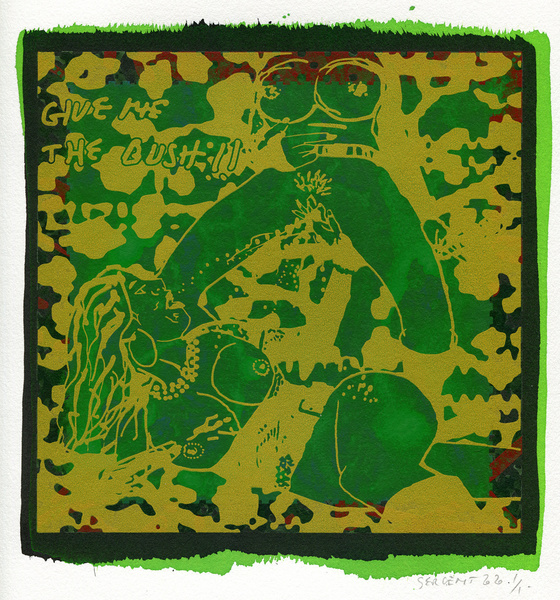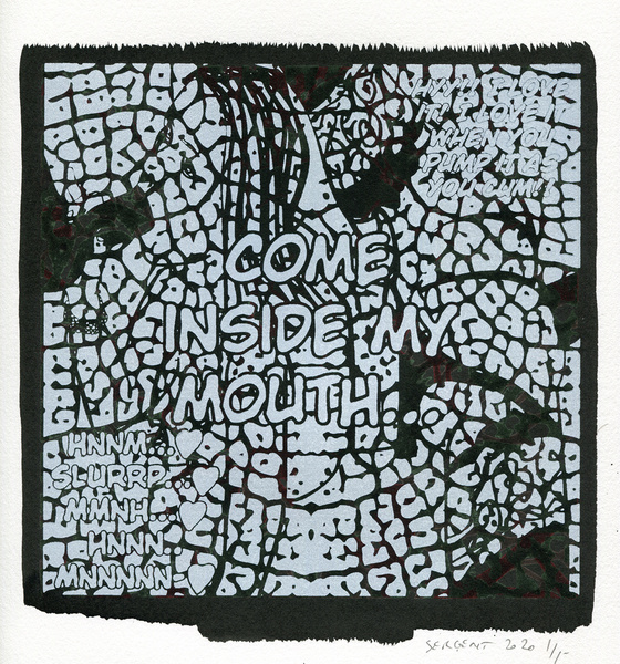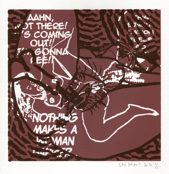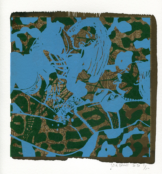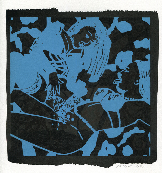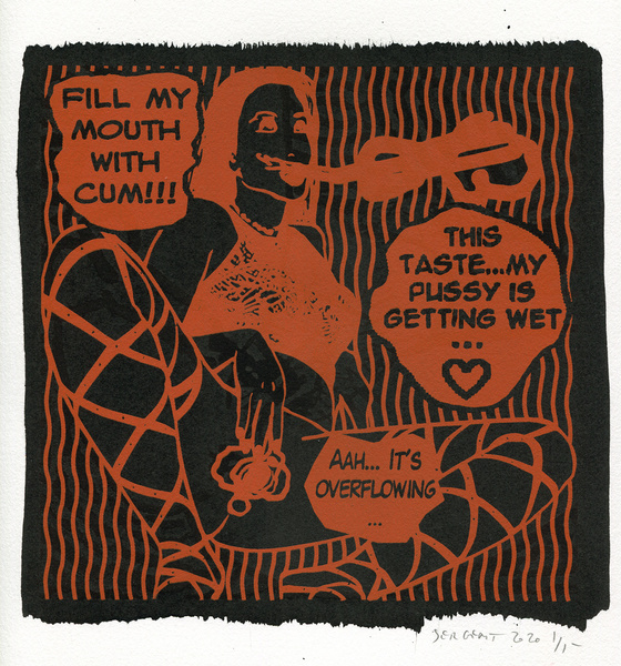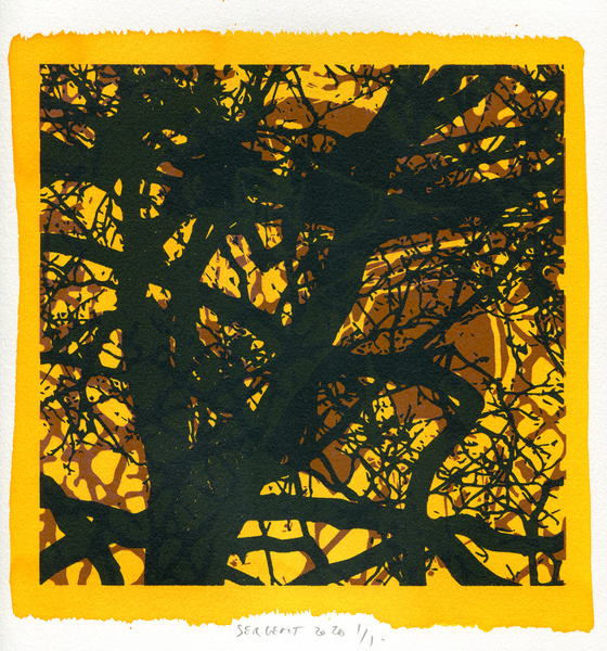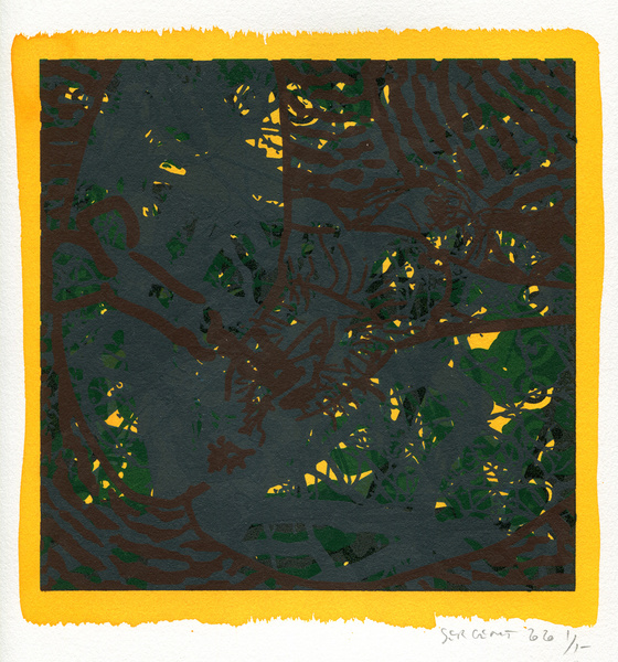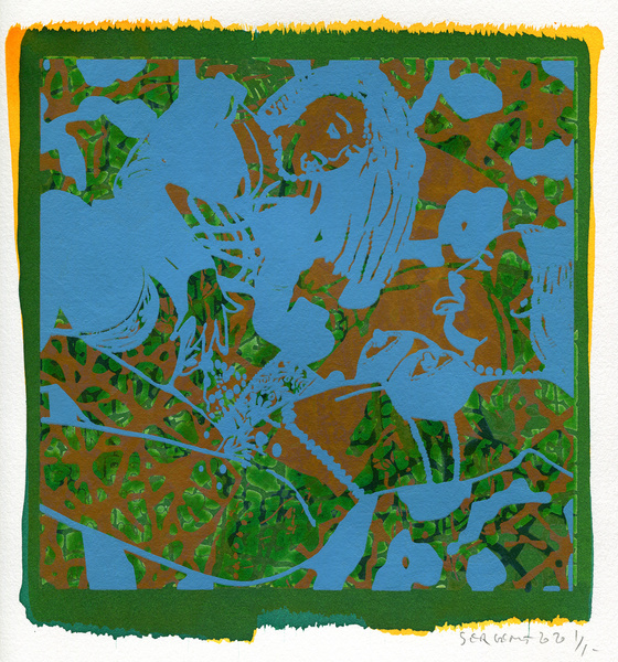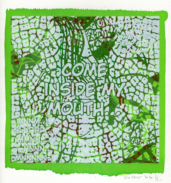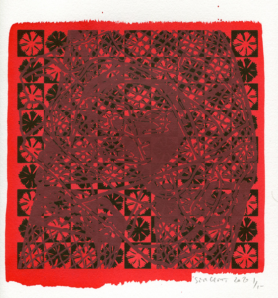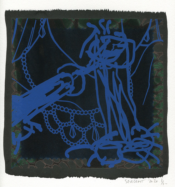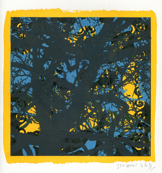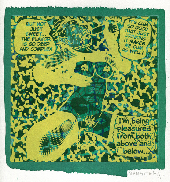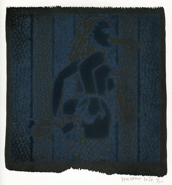 Jean-Pierre Sergent, Shakti-Yoni: Ecstatic Cosmic Dances | 2020 | acrylic hand silk-screened and Indian ink on white B.F.K. Rives paper 250g, unframed : 25,5 x 25,5 cm / 10''x10''.