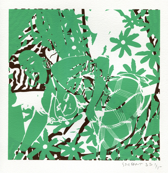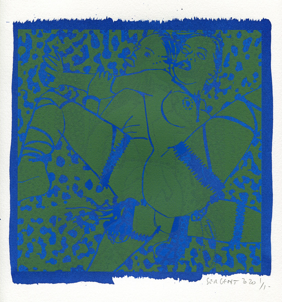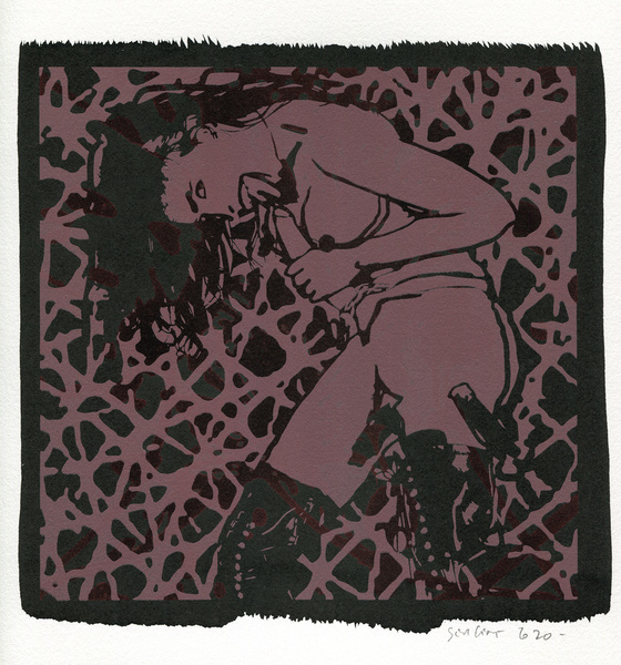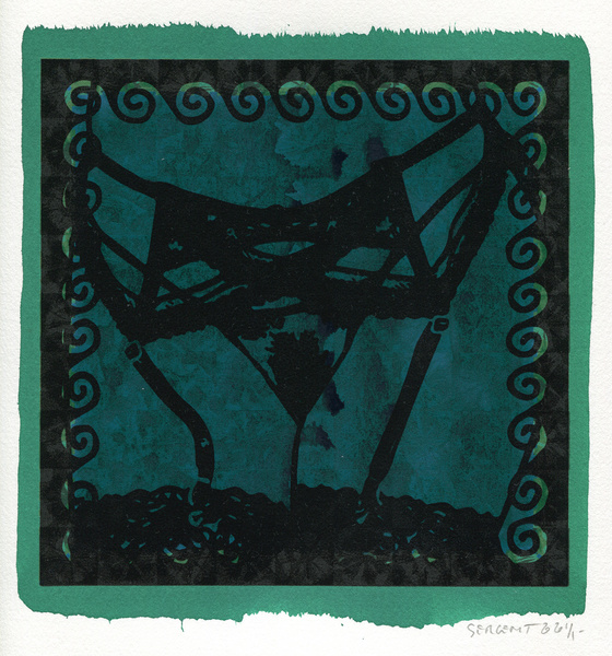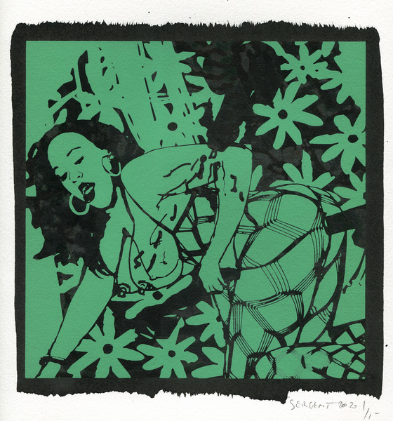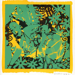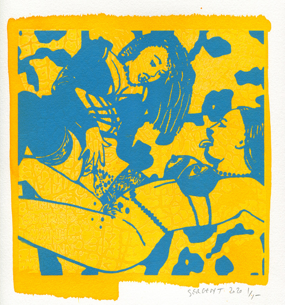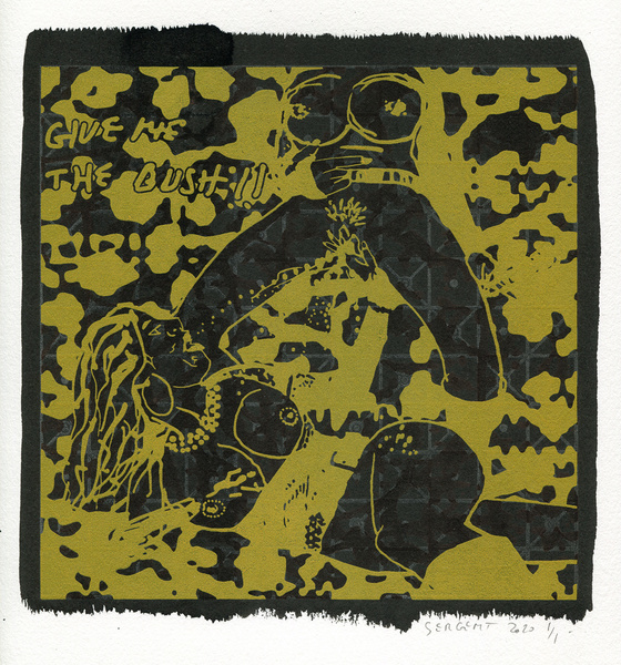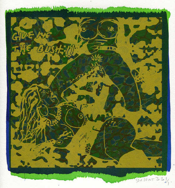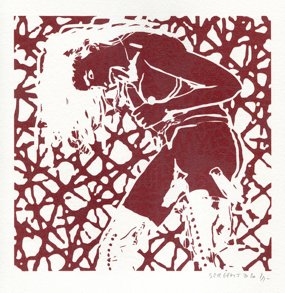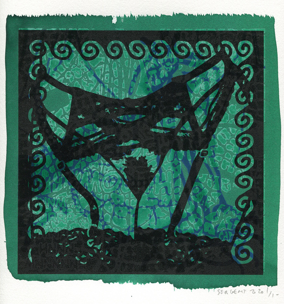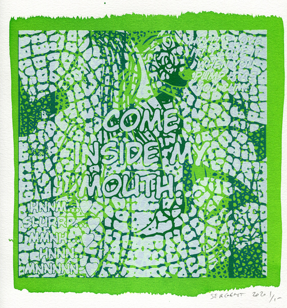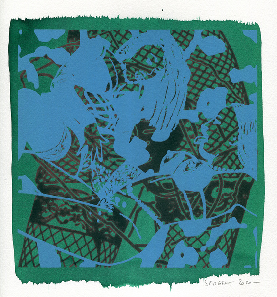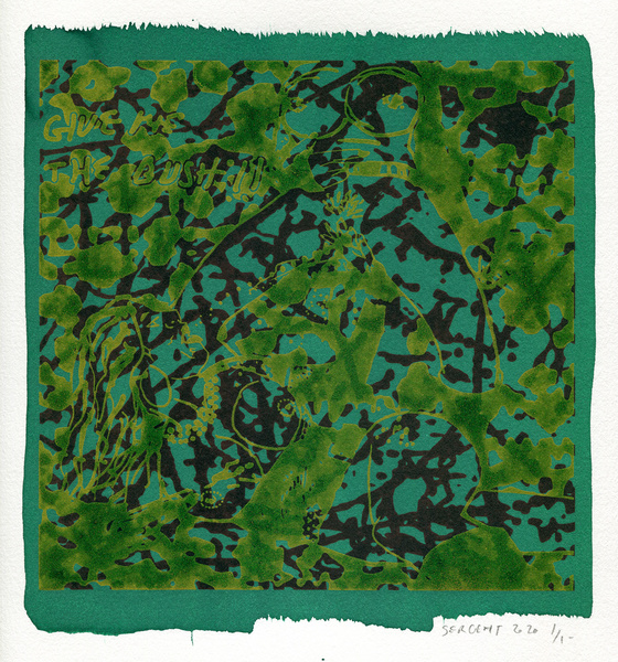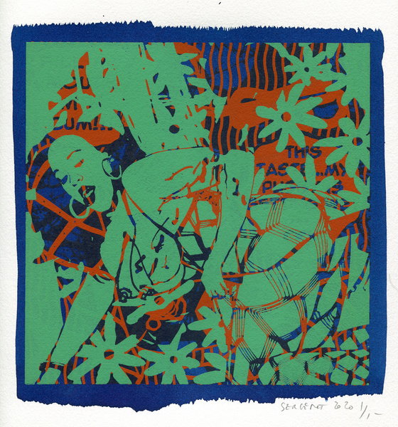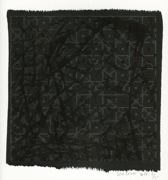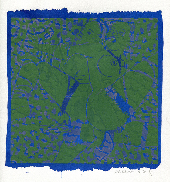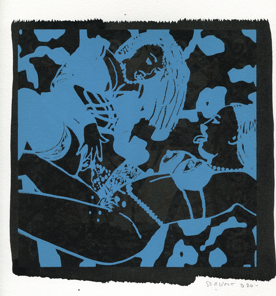 Jean-Pierre Sergent, Shakti-Yoni: Ecstatic Cosmic Dances | 2020 | acrylic hand silk-screened and Indian ink on white B.F.K. Rives paper 250g, unframed : 25,5 x 25,5 cm / 10''x10''.