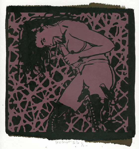 230 new art print of the Shakti-Yoni: Ecstatic Cosmic Dances series, begun in Autumn 2016 at the Besançon studio. It is printed mainly in unique prints and limited editions of 5, unframed size dimensions: 25,5 x 25,5 cm / 10''x10''.