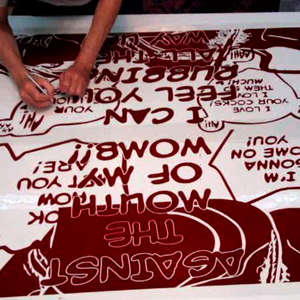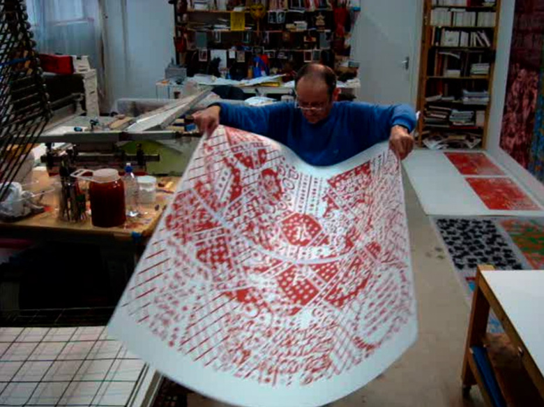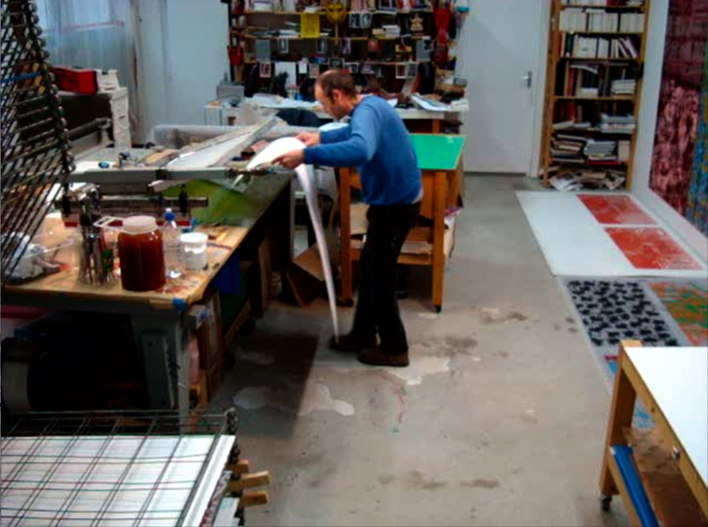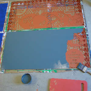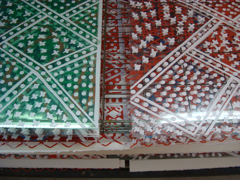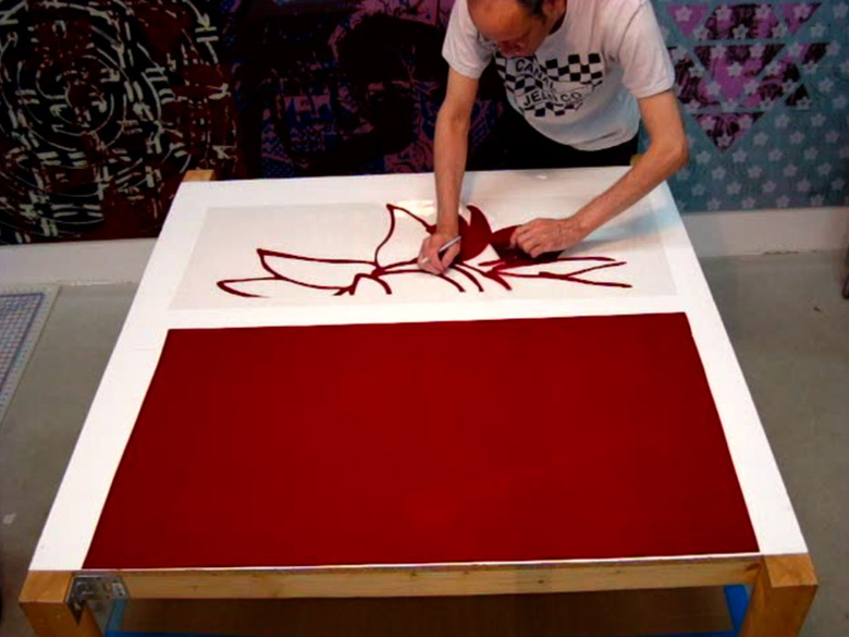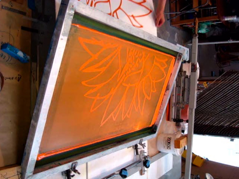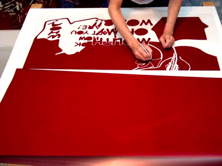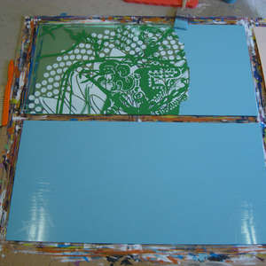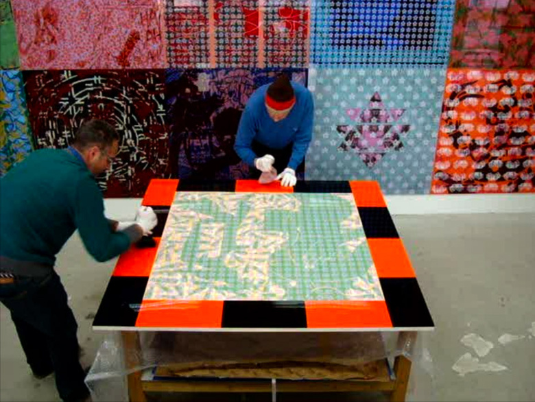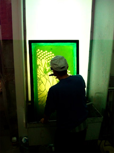 - 85 > 118, Hand silkscreening the images on Plexiglas panels with a squeegee.