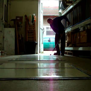 - 182 > 195, Adjusting, mounting, polishing and packing the new Plexiglas paintings, with a check pattern of black and colored Plexiglas rectangles, with Jean-François Delamain.