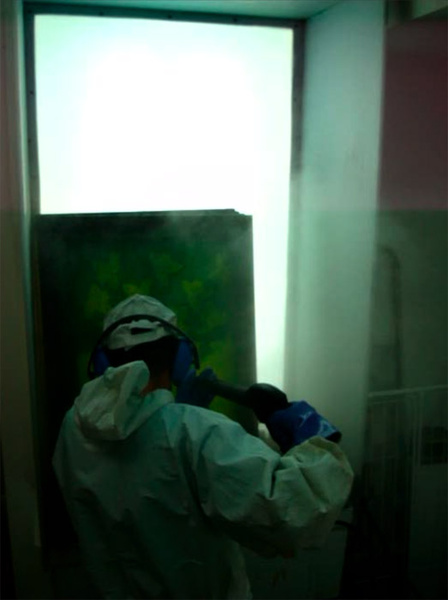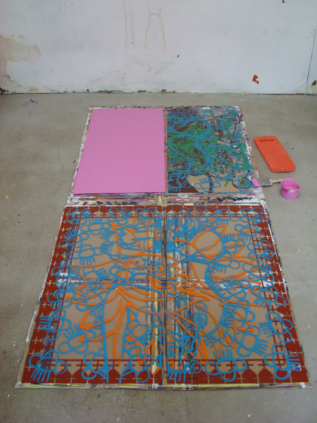 - 37 > 46, Reclaiming old silkscreen frames with the Karcher gun.