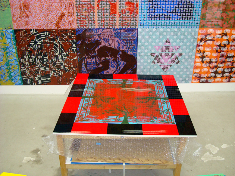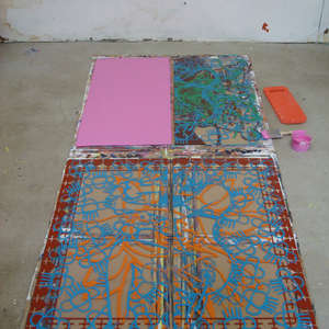 Jean-Pierre Sergent work in progress at the Besançon studio's for his new series of paintings on Plexiglas: The Entropic Suites, Summer-Fall 2014