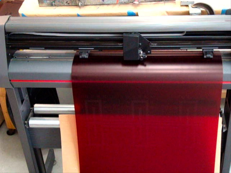 - 8 > 36, Cutting in the films with the plotter machine and peeling off the opaque ruby part not to be exposed.