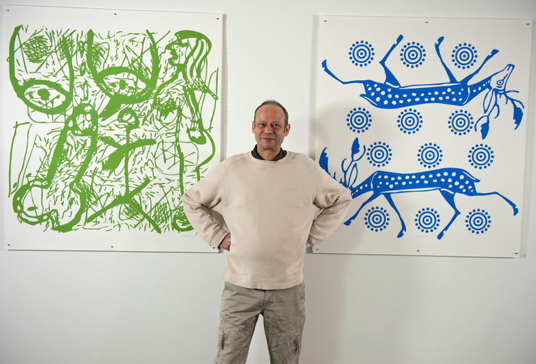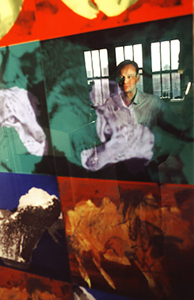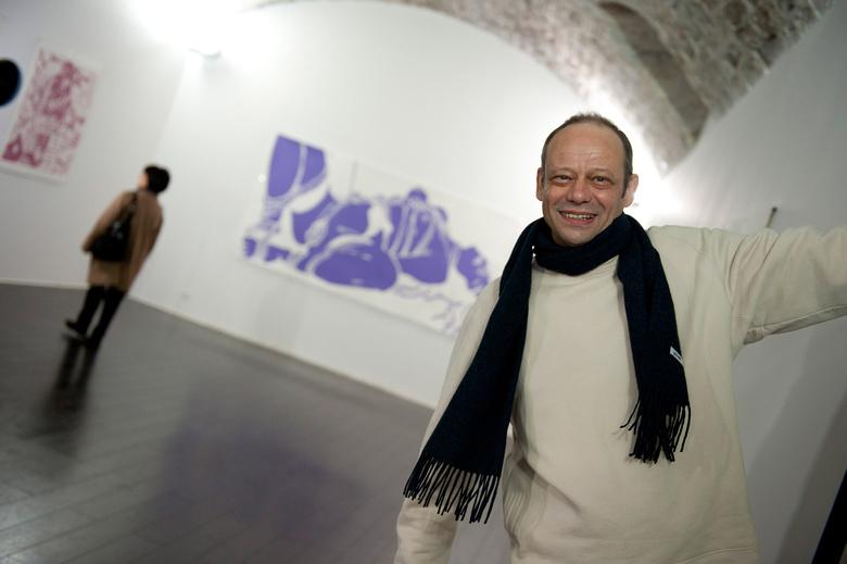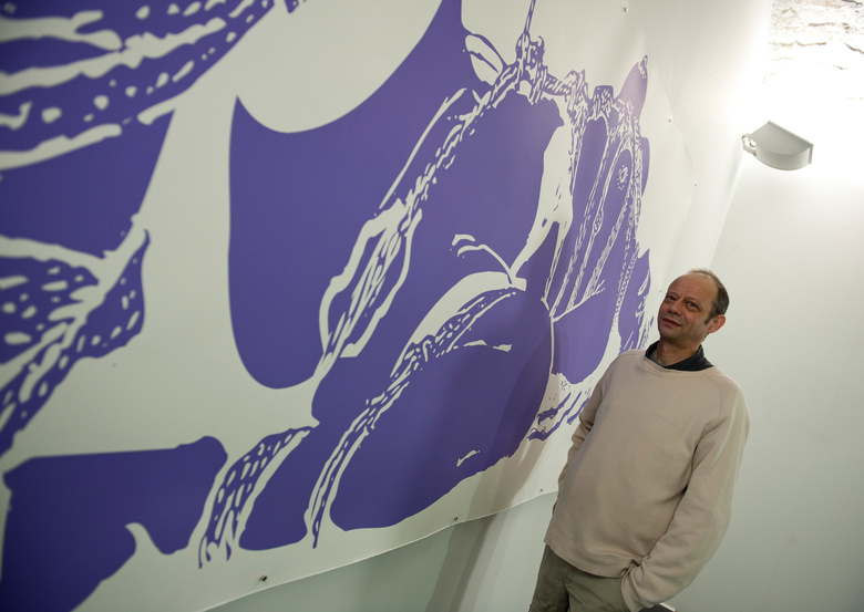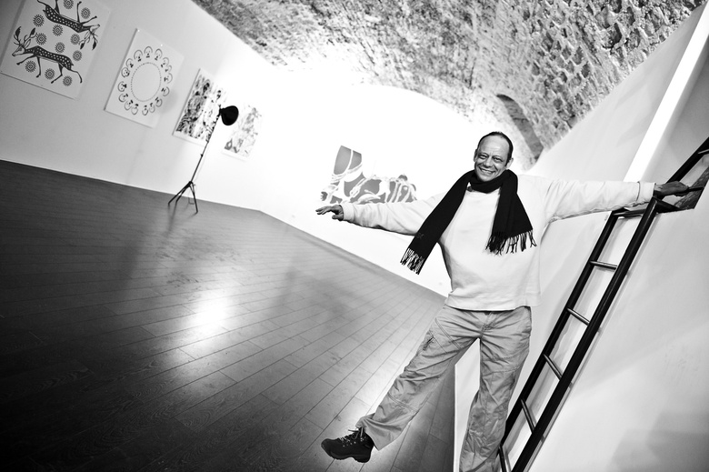 Jean-Pierre Sergent in front of the painting installation at the Grand-Cachot Foundation, Switzerland, May 14 2016. Photo by Jean-Luc Gantner