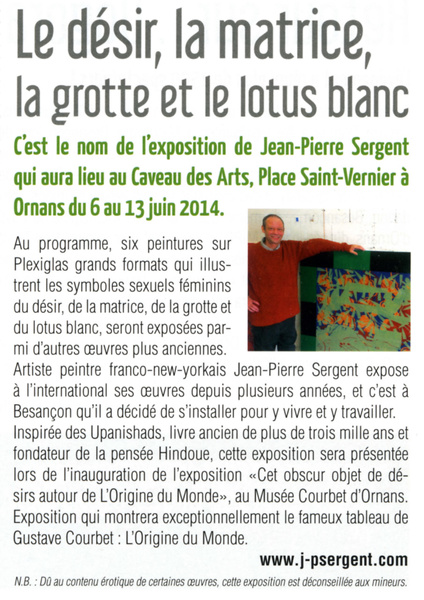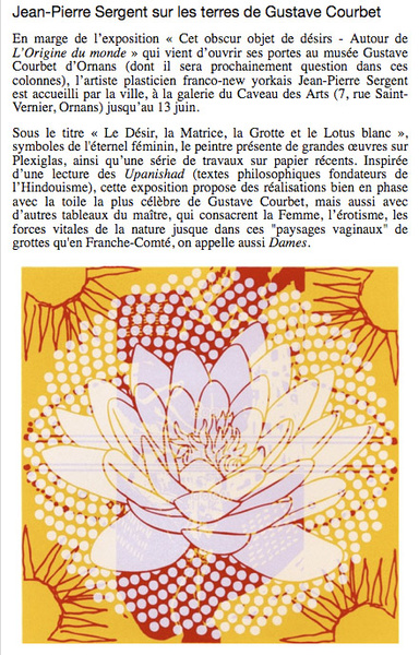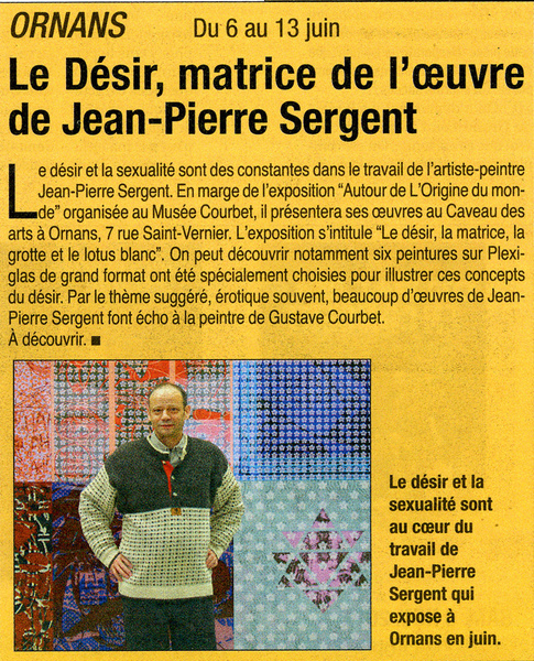 "I think what makes it a unique work and when it is inhabited by a presence, a soul, that challenges the viewer and takes him to another place." Interview artist Jean-Pierre Sergent.