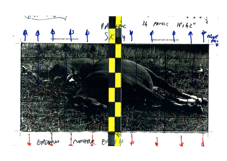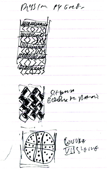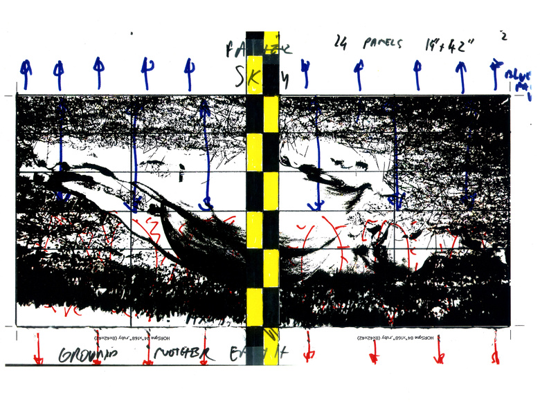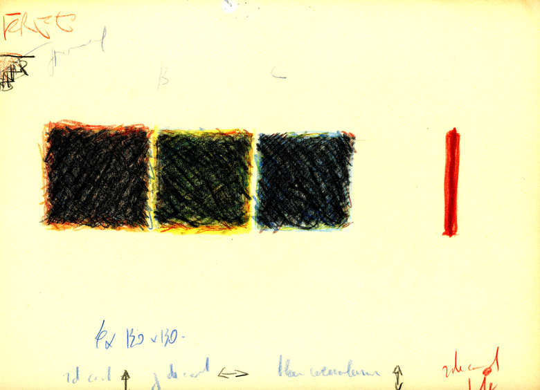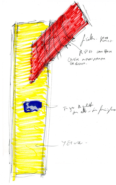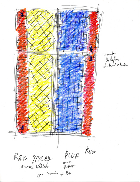 Les Sketches sont des notes et croquis de travail pour organiser la couleur des peintures et leurs dimensions dans l'espace d'exposition; des dessins d'œuvres d'arts découvertes dans les musées ainsi que des idées et concepts de travail. Les croquis servent également a planifier l'organisation des différentes étapes de la réalisation des sérigraphies : découper les rouleaux de papier, découper les film positifs, nettoyer les écrans au Karcher et les exposer, choisir les images et les couleurs à imprimer, prendre les peintures en photo etc...