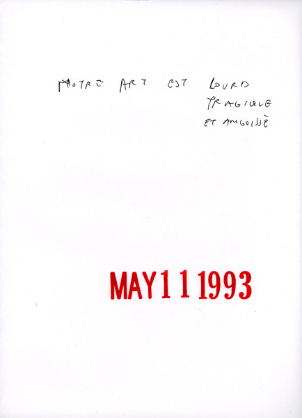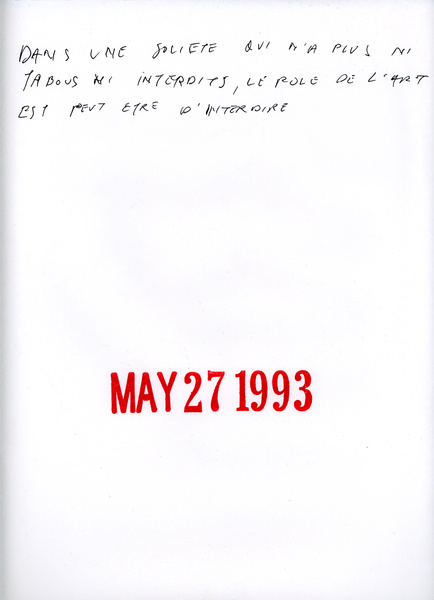 Sketch on Canson paper, pencil, color pen, felt-tip, 29,7 x 21 cm 1995/2011Sketch on Canson paper, pencil, color pen, felt-tip, 29,7 x 21 cm 1995/2011Sketch on Canson paper, pencil, color pen, felt-tip, 29,7 x 21 cm 1995/2011Sketch on Canson paper, pencil, color pen, felt-tip, 29,7 x 21 cm 1995/2011Sketch on Canson paper, pencil, color pen, felt-tip, 29,7 x 21 cm 1995/2011Sketch on Canson paper, pencil, color pen, felt-tip, 29,7 x 21 cm 1995/2011Sketch on Canson paper, pencil, color pen, felt-tip, 29,7 x 21 cm 1995/2011Sketch on Canson paper, pencil, color pen, felt-tip, 29,7 x 21 cm 1995/2011Sketch on Canson paper, pencil, color pen, felt-tip, 29,7 x 21 cm 1995/2011Sketch on Canson paper, pencil, color pen, felt-tip, 29,7 x 21 cm 1995/2011Sketch on Canson paper, pencil, color pen, felt-tip, 29,7 x 21 cm 1995/2011Sketch on Canson paper, pencil, color pen, felt-tip, 29,7 x 21 cm 1995/2011Sketch on Canson paper, pencil, color pen, felt-tip, 29,7 x 21 cm 1995/2011Sketch on Canson paper, pencil, color pen, felt-tip, 29,7 x 21 cm 1995/2011Sketch, Montreal, 1991-1993, pencil, color pen, felt-tip on paper, 36x28 cm.Sketch, Montreal, 1991-1993, pencil, color pen, felt-tip on paper, 36x28 cm.Sketch, Montreal, 1991-1993, pencil, color pen, felt-tip on paper, 36x28 cm.Sketch, Montreal, 1991-1993, pencil, color pen, felt-tip on paper, 36x28 cm.Sketches, 1995/2011, Canson paper, 0,21 x 0,29 mSketch, Montreal, 1991-1993, pencil, color pen, felt-tip on paper, 36x28 cm.Sketch, Montreal, 1991-1993, pencil, color pen, felt-tip on paper, 36x28 cm.Sketch, Montreal, 1991-1993, pencil, color pen, felt-tip on paper, 36x28 cm.Sketch, Montreal, 1991-1993, pencil, color pen, felt-tip on paper, 36x28 cm.Sketch, Montreal, 1991-1993, pencil, color pen, felt-tip on paper, 36x28 cm.Sketch, Montreal, 1991-1993, pencil, color pen, felt-tip on paper, 36x28 cm.Sketch, Montreal, 1991-1993, pencil, color pen, felt-tip on paper, 36x28 cm.Sketch, Montreal, 1991-1993, pencil, color pen, felt-tip on paper, 36x28 cm.Sketch, Montreal, 1991-1993, pencil, color pen, felt-tip on paper, 36x28 cm.Sketch, Montreal, 1991-1993, pencil, color pen, felt-tip on paper, 36x28 cm.Sketch, Montreal, 1991-1993, pencil, color pen, felt-tip on paper, 36x28 cm.Sketch, Montreal, 1991-1993, pencil, color pen, felt-tip on paper, 36x28 cm.Sketch, Montreal, 1991-1993, pencil, color pen, felt-tip on paper, 36x28 cm.Sketch, Montreal, 1991-1993, pencil, color pen, felt-tip on paper, 36x28 cm.Sketch, Montreal, 1991-1993, pencil, color pen, felt-tip on paper, 36x28 cm.Pencil, felt-tip on notebook, exhibited at 8th floor Gallery, NYC, 1995, 27,5 x 20 cm. Pencil, felt-tip on notebook, exhibited at 8th floor Gallery, NYC, 1995, 27,5 x 20 cm. Pencil, felt-tip on notebook, exhibited at 8th floor Gallery, NYC, 1995, 27,5 x 20 cm. Pencil, felt-tip on notebook, exhibited at 8th floor Gallery, NYC, 1995, 27,5 x 20 cm. Pencil, felt-tip on notebook, exhibited at 8th floor Gallery, NYC, 1995, 27,5 x 20 cm. Pencil, felt-tip on notebook, exhibited at 8th floor Gallery, NYC, 1995, 27,5 x 20 cm. Pencil, felt-tip on notebook, exhibited at 8th floor Gallery, NYC, 1995, 27,5 x 20 cm. Pencil, felt-tip on notebook, exhibited at 8th floor Gallery, NYC, 1995, 27,5 x 20 cm. Pencil, felt-tip on notebook, exhibited at 8th floor Gallery, NYC, 1995, 27,5 x 20 cm. Pencil, felt-tip on notebook, exhibited at 8th floor Gallery, NYC, 1995, 27,5 x 20 cm. Pencil, felt-tip on notebook, exhibited at 8th floor Gallery, NYC, 1995, 27,5 x 20 cm. Pencil, felt-tip on notebook, exhibited at 8th floor Gallery, NYC, 1995, 27,5 x 20 cm. Pencil, felt-tip on notebook, exhibited at 8th floor Gallery, NYC, 1995, 27,5 x 20 cm. Pencil, felt-tip on notebook, exhibited at 8th floor Gallery, NYC, 1995, 27,5 x 20 cm. Pencil, felt-tip on notebook, exhibited at 8th floor Gallery, NYC, 1995, 27,5 x 20 cm. Pencil, felt-tip on notebook, exhibited at 8th floor Gallery, NYC, 1995, 27,5 x 20 cm. Pencil, felt-tip on notebook, exhibited at 8th floor Gallery, NYC, 1995, 27,5 x 20 cm. Pencil, felt-tip on notebook, exhibited at 8th floor Gallery, NYC, 1995, 27,5 x 20 cm. Pencil, felt-tip on notebook, exhibited at 8th floor Gallery, NYC, 1995, 27,5 x 20 cm. Pencil, felt-tip on notebook, exhibited at 8th floor Gallery, NYC, 1995, 27,5 x 20 cm. Pencil, felt-tip on notebook, exhibited at 8th floor Gallery, NYC, 1995, 27,5 x 20 cm. Pencil, felt-tip on notebook, exhibited at 8th floor Gallery, NYC, 1995, 27,5 x 20 cm. Pencil, felt-tip on notebook, exhibited at 8th floor Gallery, NYC, 1995, 27,5 x 20 cm. Pencil, felt-tip on notebook, exhibited at 8th floor Gallery, NYC, 1995, 27,5 x 20 cm. Pencil, felt-tip on notebook, exhibited at 8th floor Gallery, NYC, 1995, 27,5 x 20 cm. Pencil, felt-tip on notebook, exhibited at 8th floor Gallery, NYC, 1995, 27,5 x 20 cm. Pencil, felt-tip on notebook, exhibited at 8th floor Gallery, NYC, 1995, 27,5 x 20 cm. ine notebook, New York, pencil, color pen, felt-tip, exhibited for "Conceptual Documents for Impossible Art", Eighth floor Gallery, NYC,1995, 9x14 Pencil, felt-tip on notebook, exhibited at 8th floor Gallery, NYC, 1995, 27,5 x 20 cm. ch on Clairefontaine notebook, New York, pencil, color pen, felt-tip, exhibited for "Conceptual Documents for Impossible Art", Eighth floor Gallery, NYC,1995, 9x14 Pencil, felt-tip on notebook, exhibited at 8th floor Gallery, NYC, 1995, 27,5 x 20 cm. Pencil, felt-tip on notebook, exhibited at 8th floor Gallery, NYC, 1995, 27,5 x 20 cm. Pencil, felt-tip on notebook, exhibited at 8th floor Gallery, NYC, 1995, 27,5 x 20 cm. Pencil, felt-tip on notebook, exhibited at 8th floor Gallery, NYC, 1995, 27,5 x 20 cm. Pencil, felt-tip on notebook, exhibited at 8th floor Gallery, NYC, 1995, 27,5 x 20 cm. Pencil, felt-tip on notebook, exhibited at 8th floor Gallery, NYC, 1995, 27,5 x 20 cm. Pencil, felt-tip on notebook, exhibited at 8th floor Gallery, NYC, 1995, 27,5 x 20 cm. Pencil, felt-tip on notebook, exhibited at 8th floor Gallery, NYC, 1995, 27,5 x 20 cm. Pencil, felt-ti