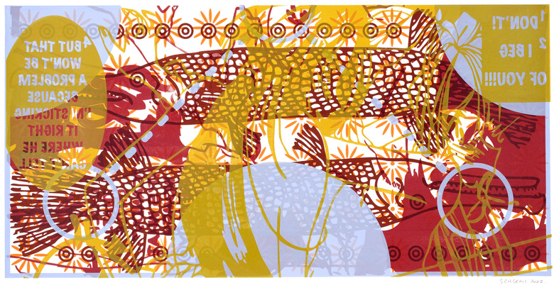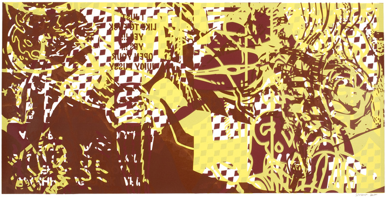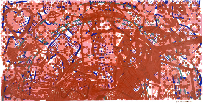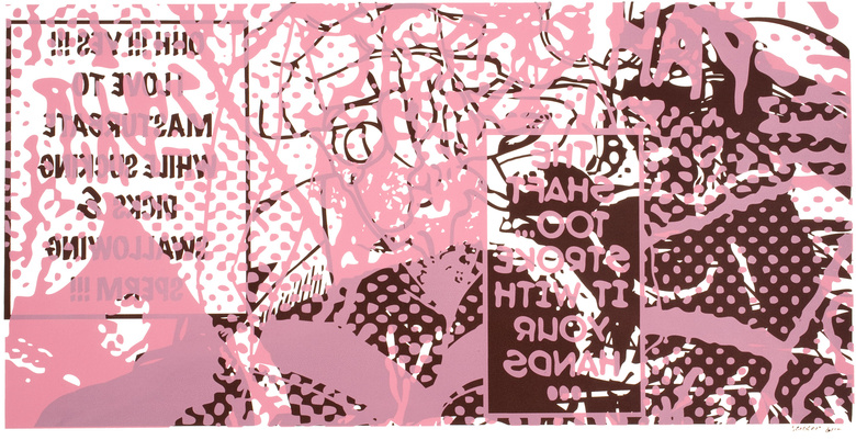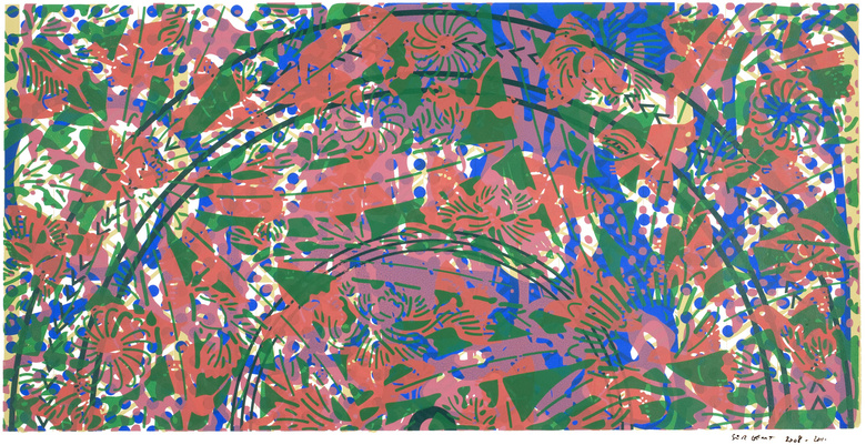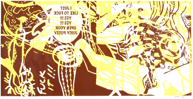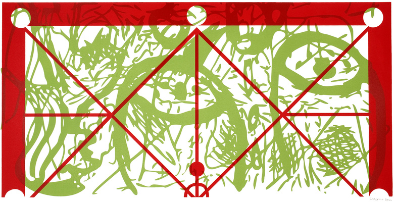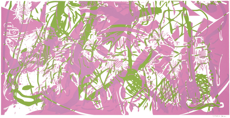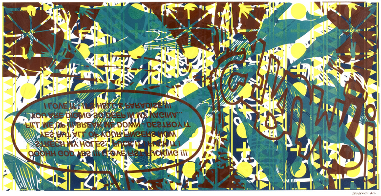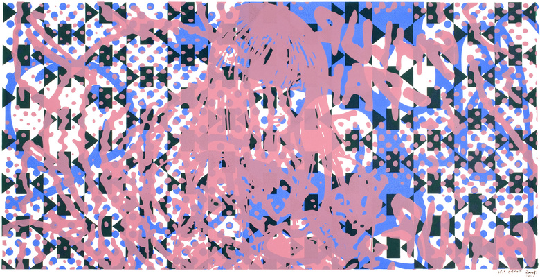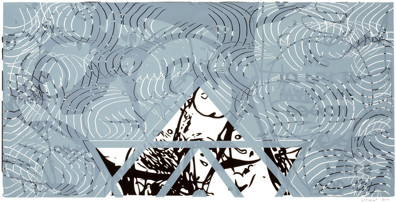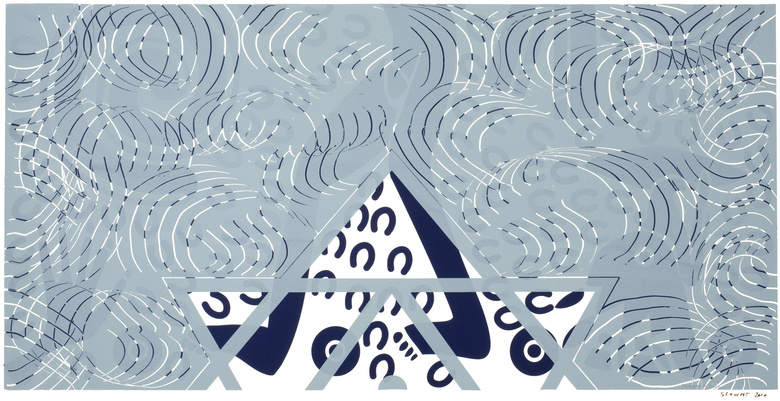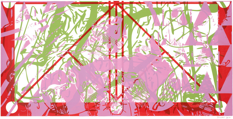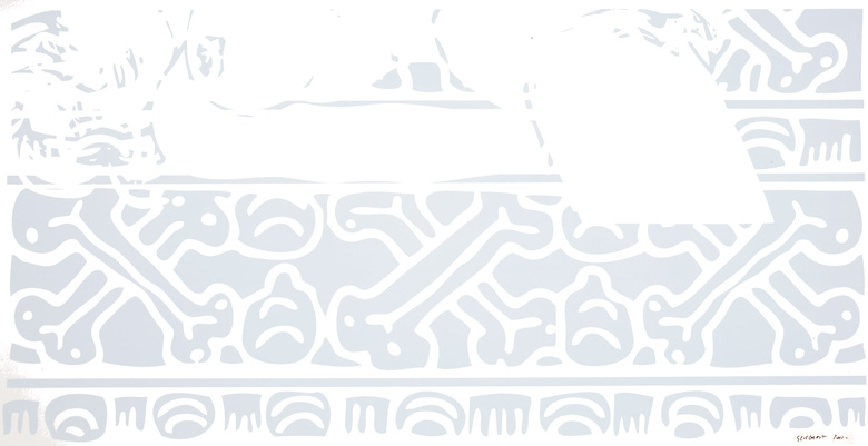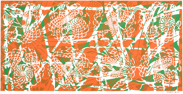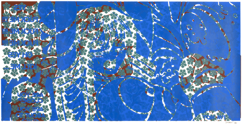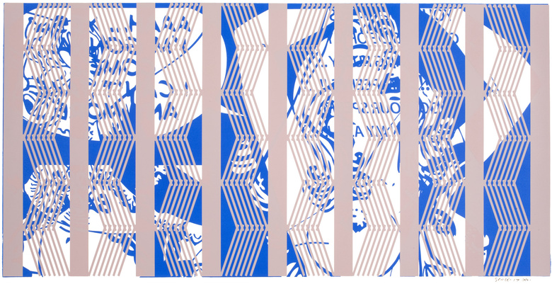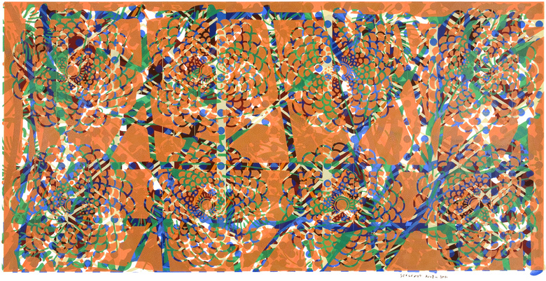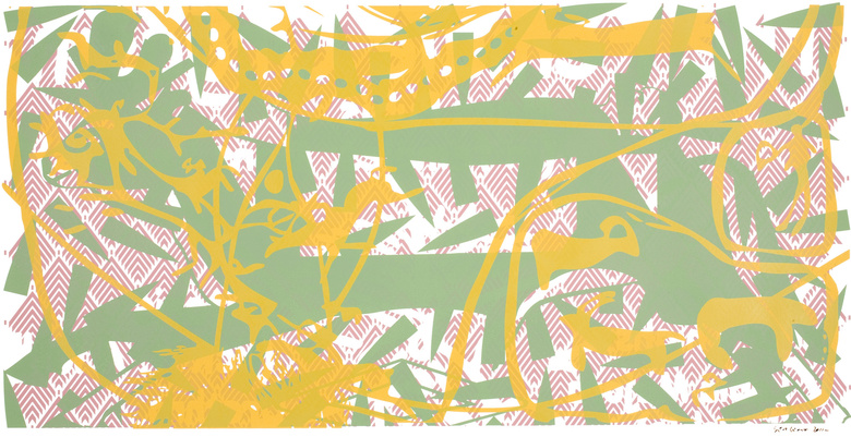 Monoprint, acrylique sérigraphiée sur papier Rives B.F.K blanc, 61 x 107 cm