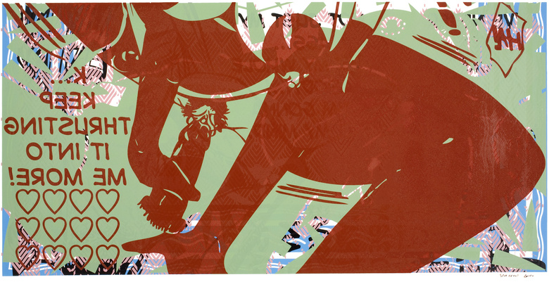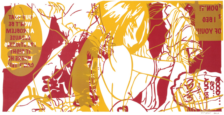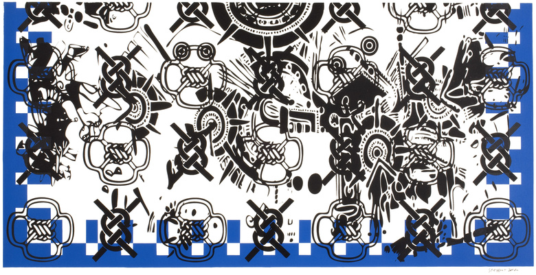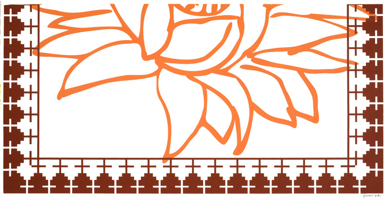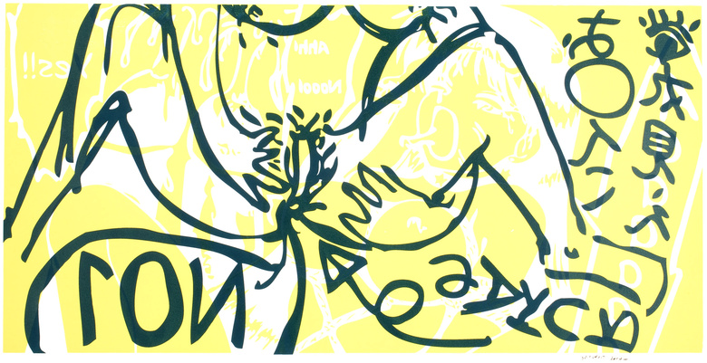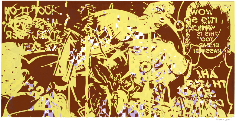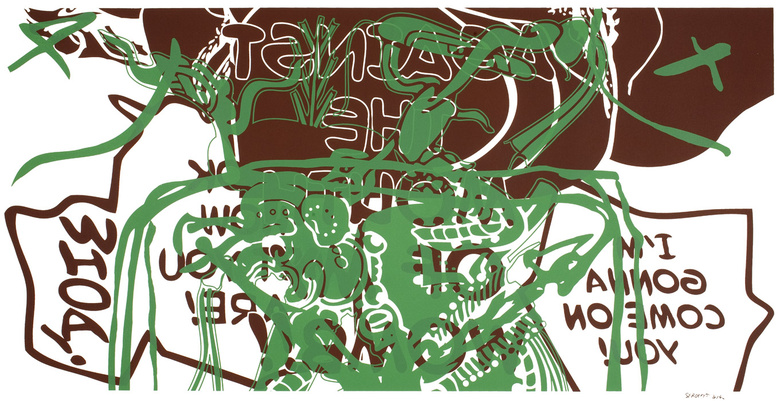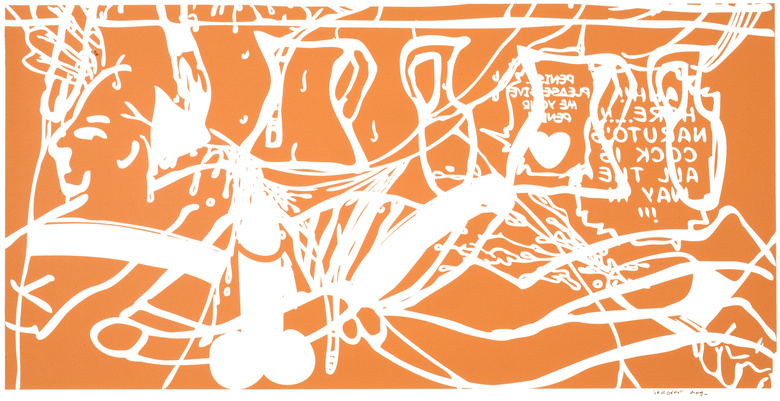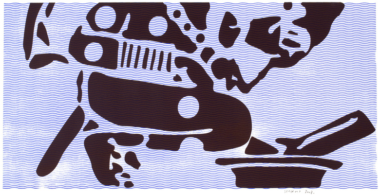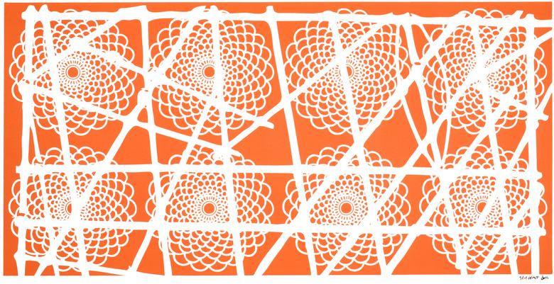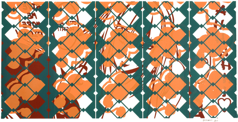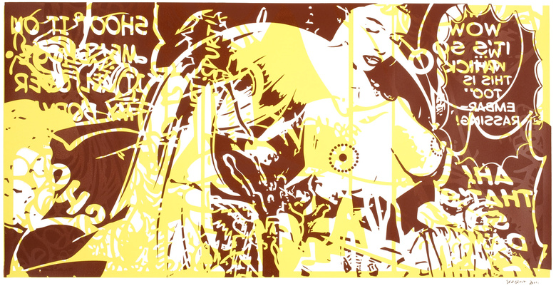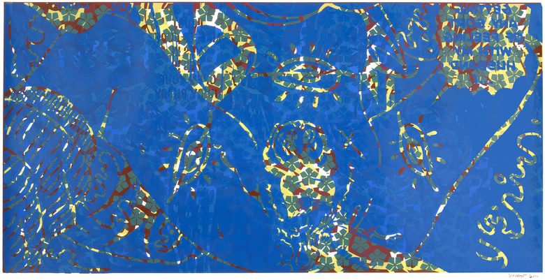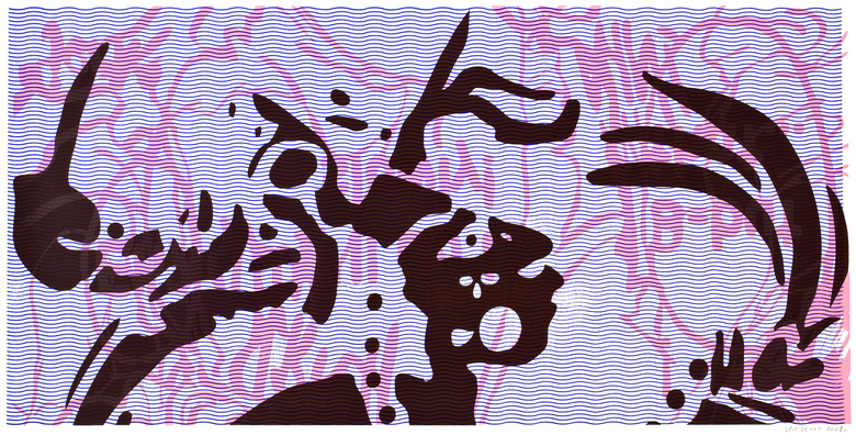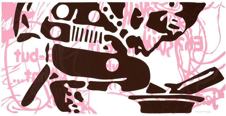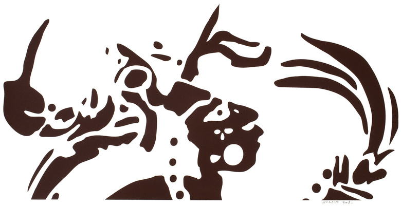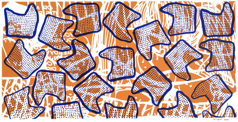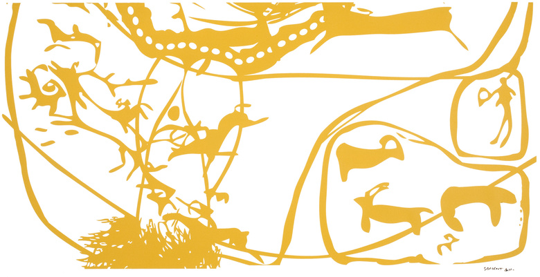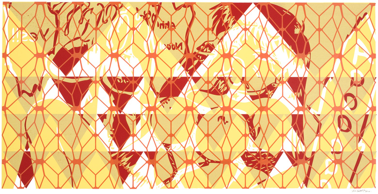 Monoprint, acrylique sérigraphiée sur papier Rives B.F.K blanc, 61 x 107 cm